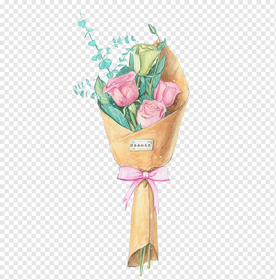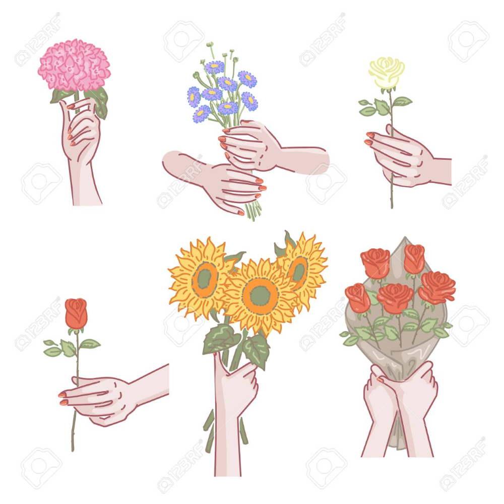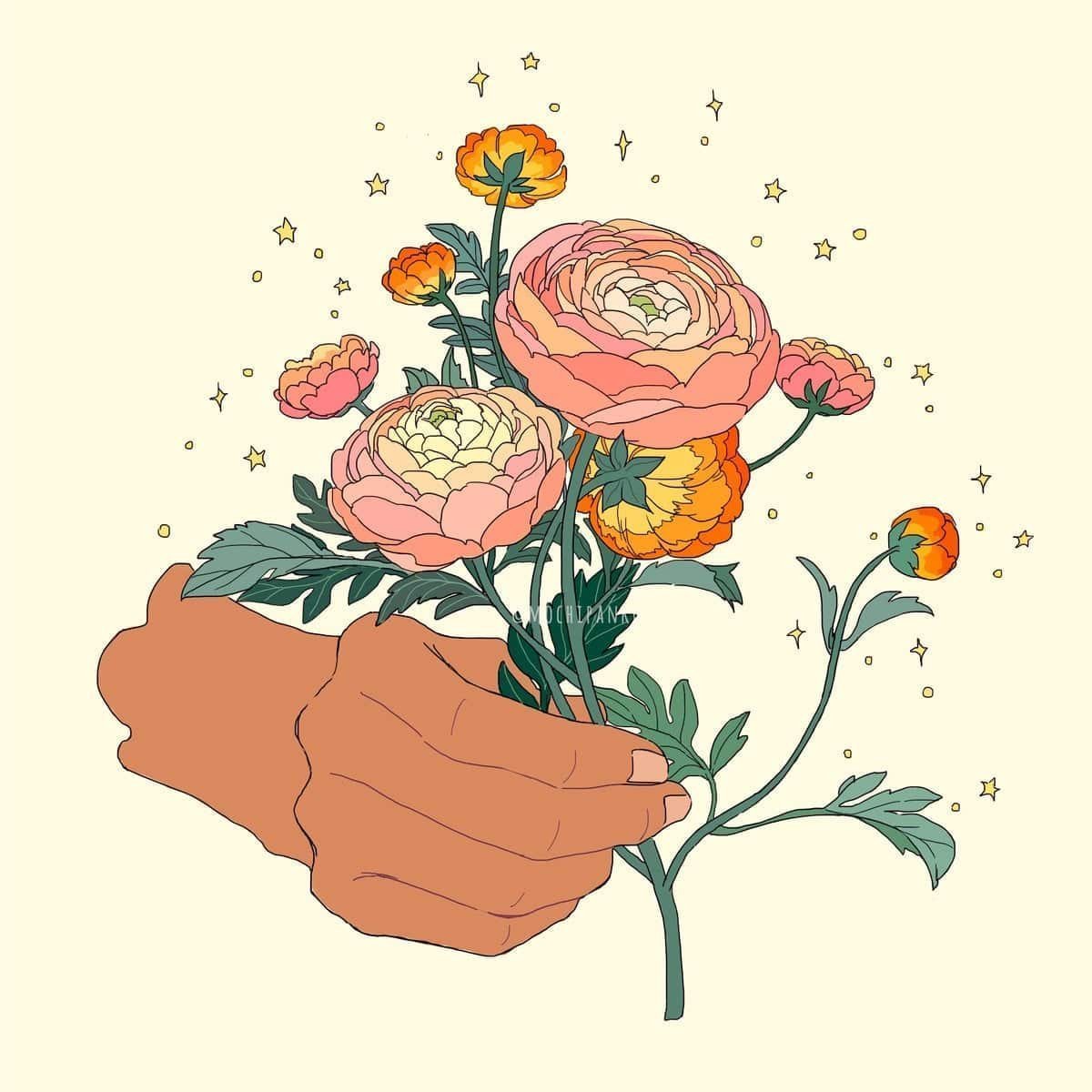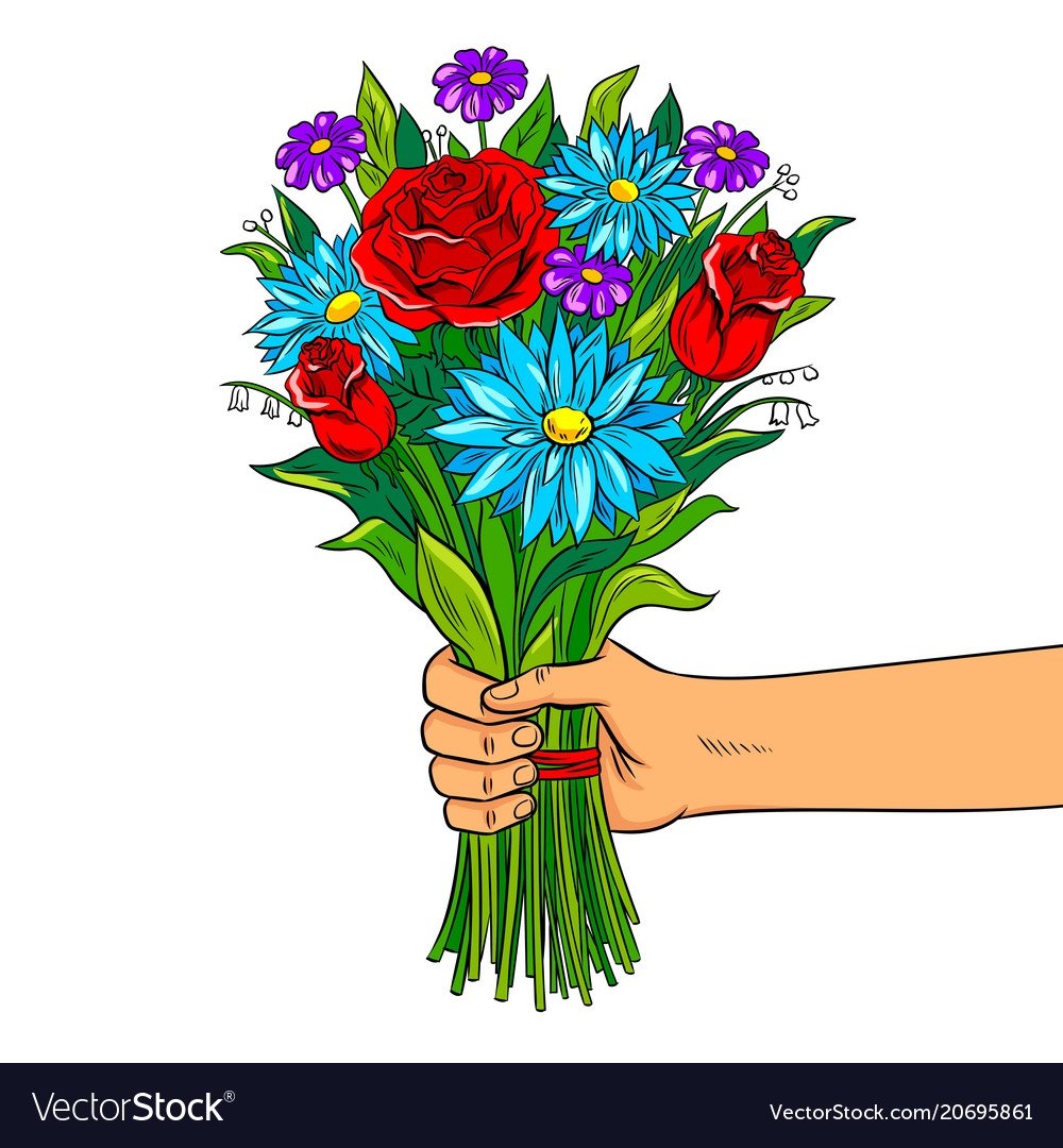 Нарисованный букет цветов в руках