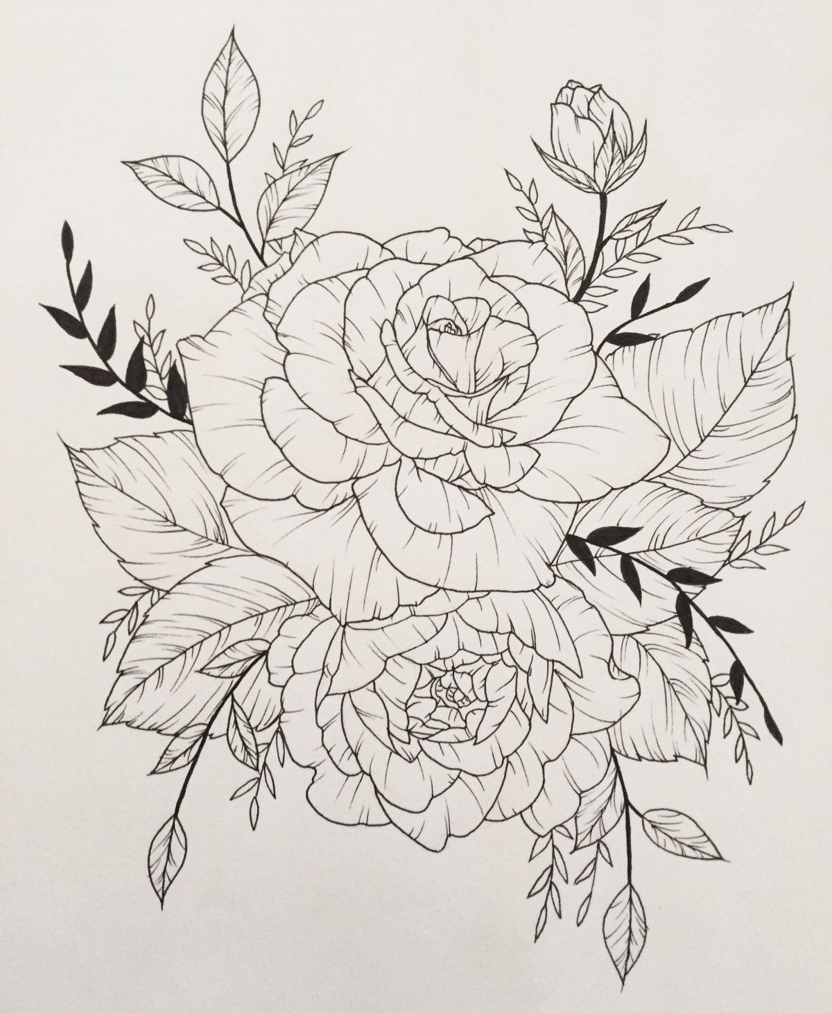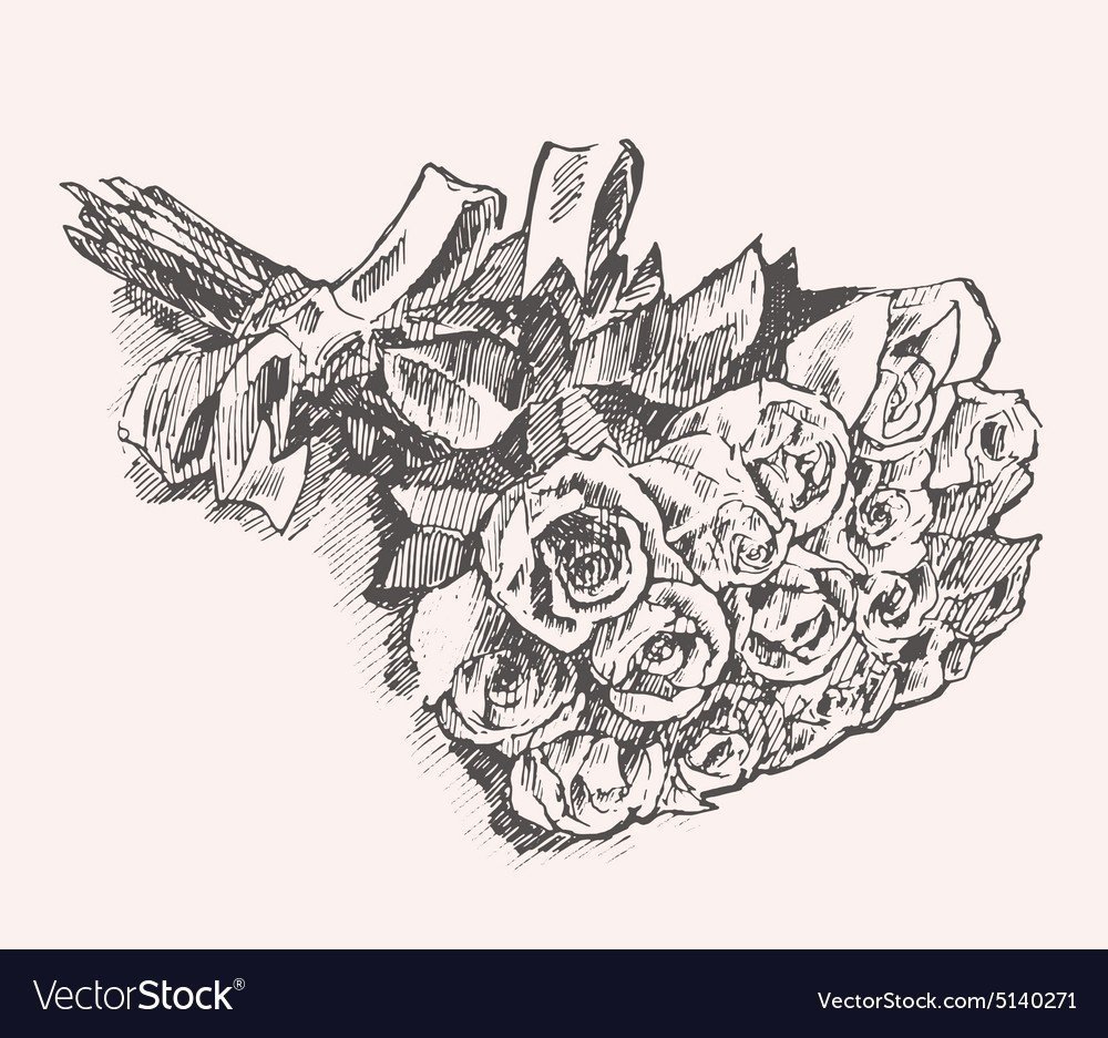 Карандашный эскиз букета роз