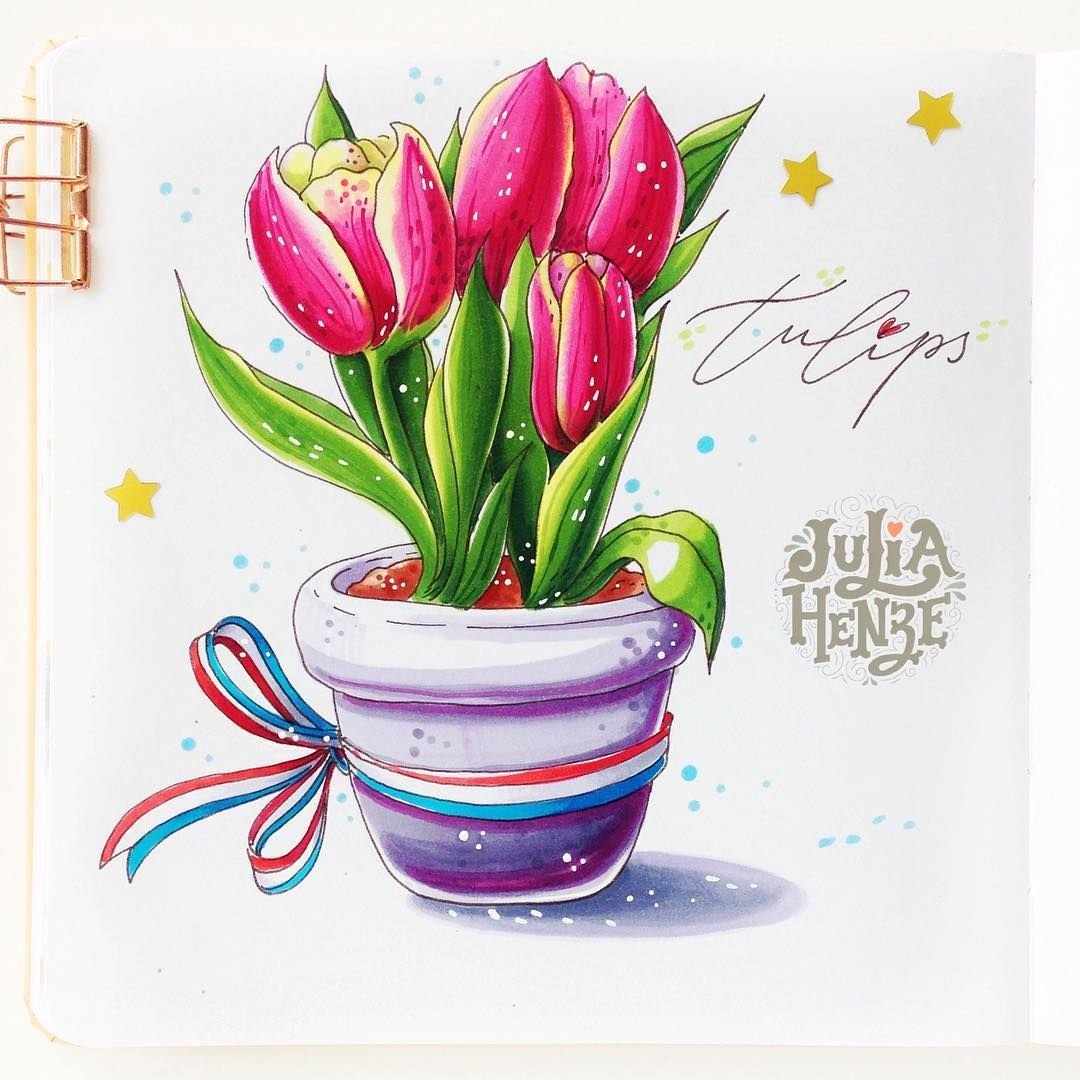 Тюльпаны маркерами