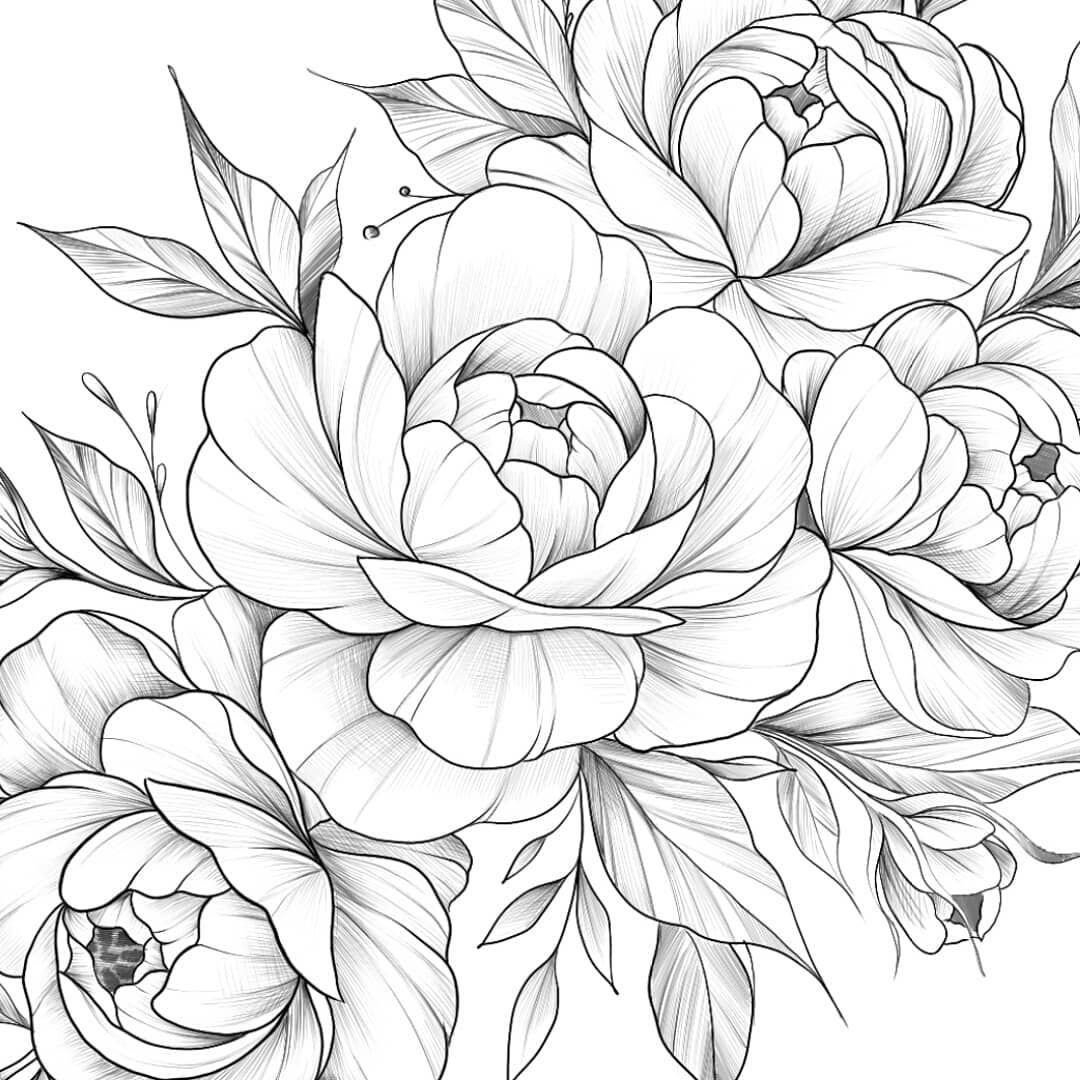 Пионы карандашом