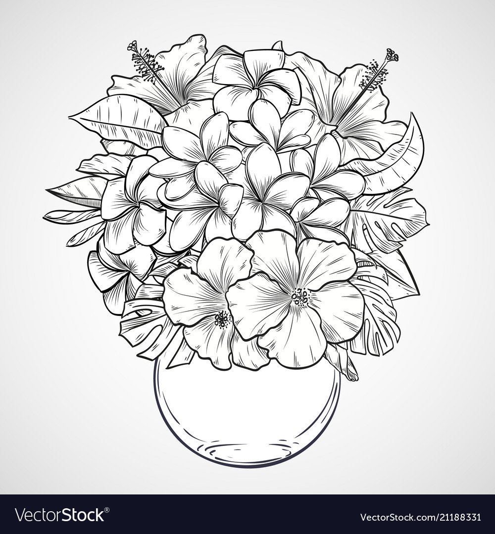 Ваза с цветами для срисовки