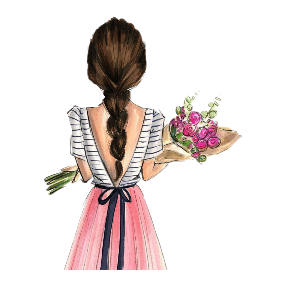 Девушка с цветами мультяшная