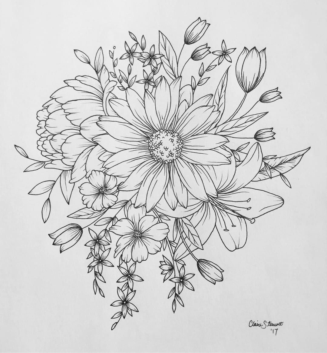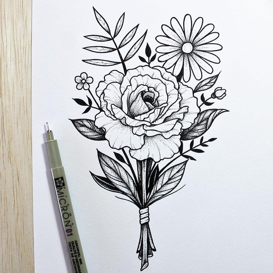 Скетчинг букет цветов