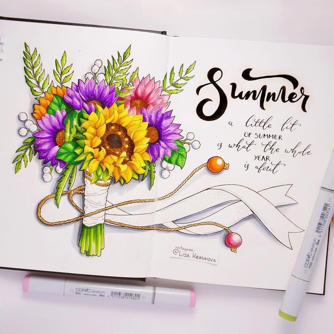Цветы скетч маркерами