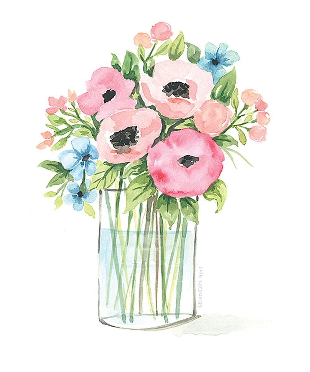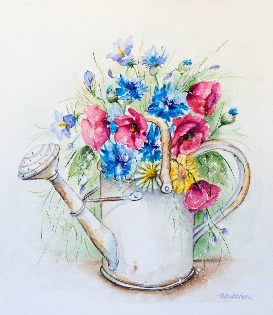 Банка с цветами акварелью