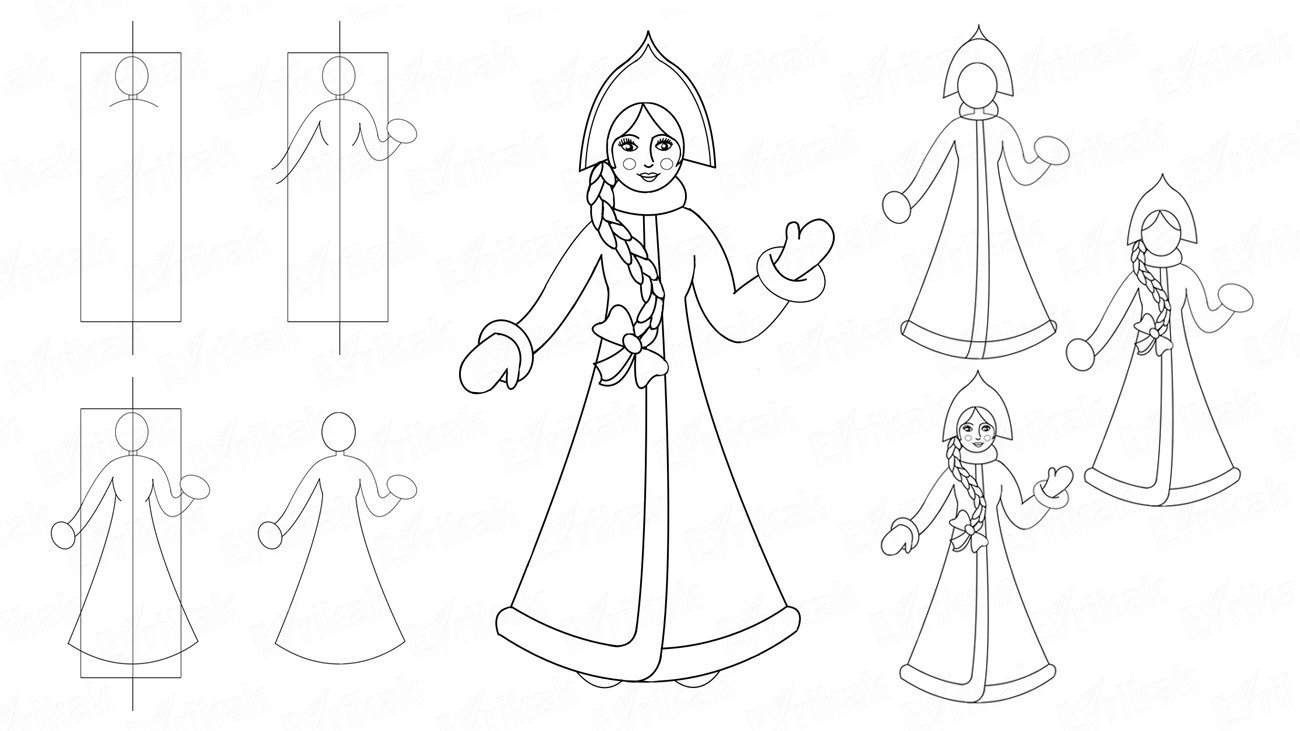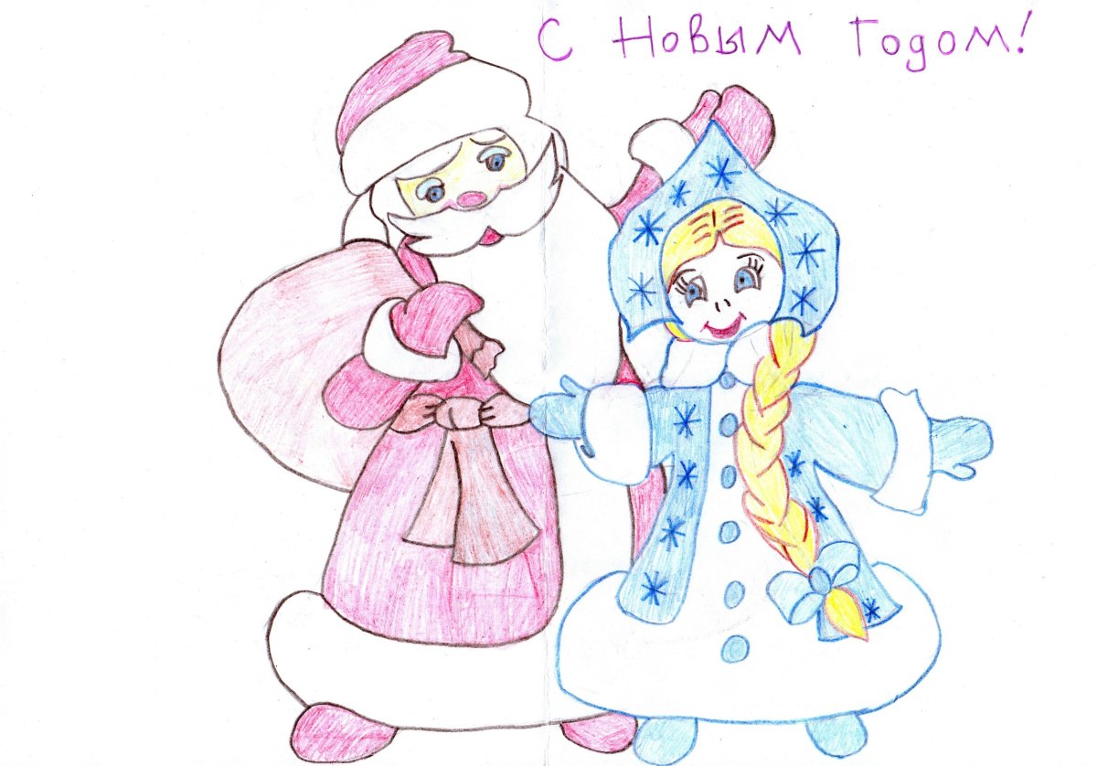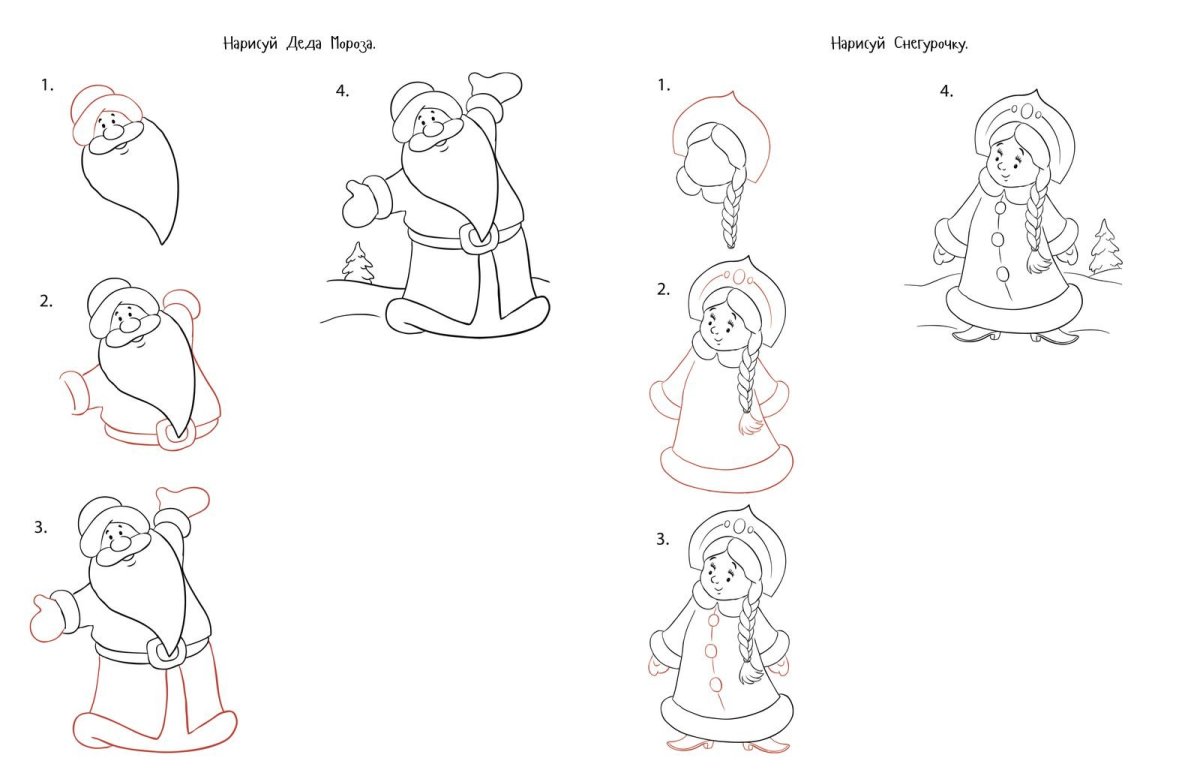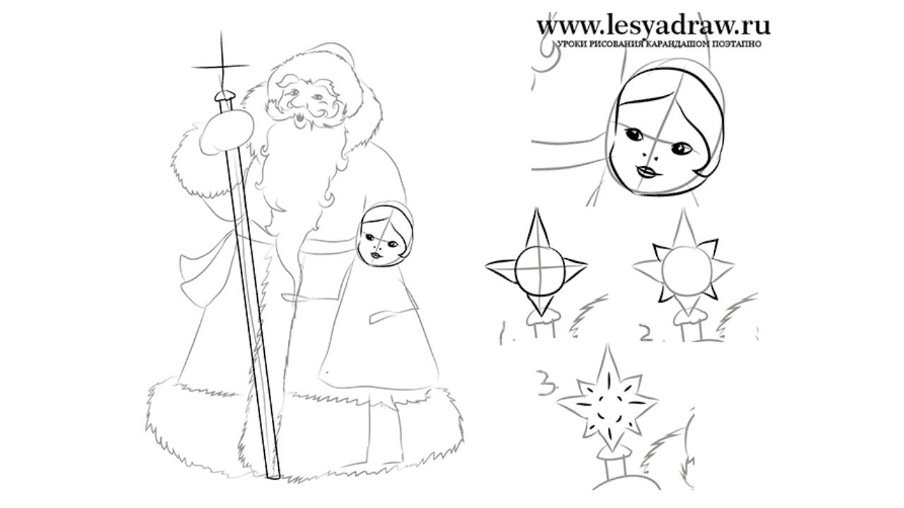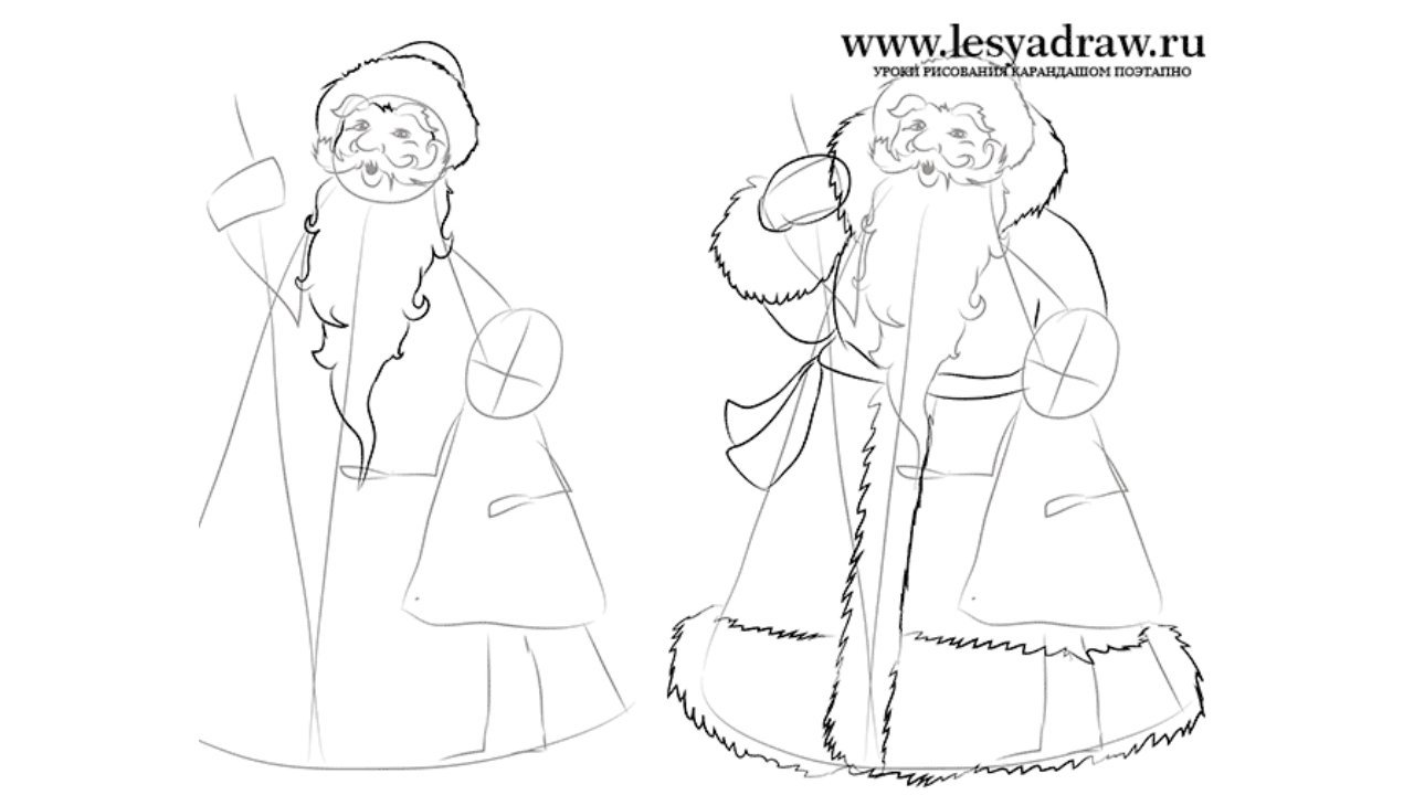 Рисунок Деда Мороза и Снегурочки для срисовки