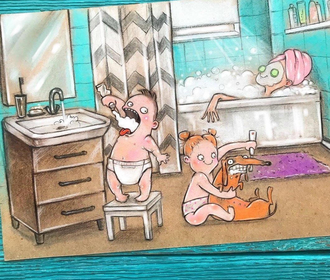 Карикатура мама в декрете