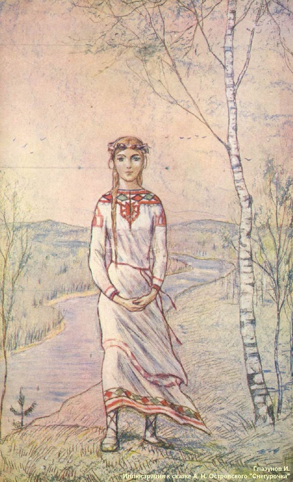 Эскиз сценического костюма к сказке Снегурочка Островского