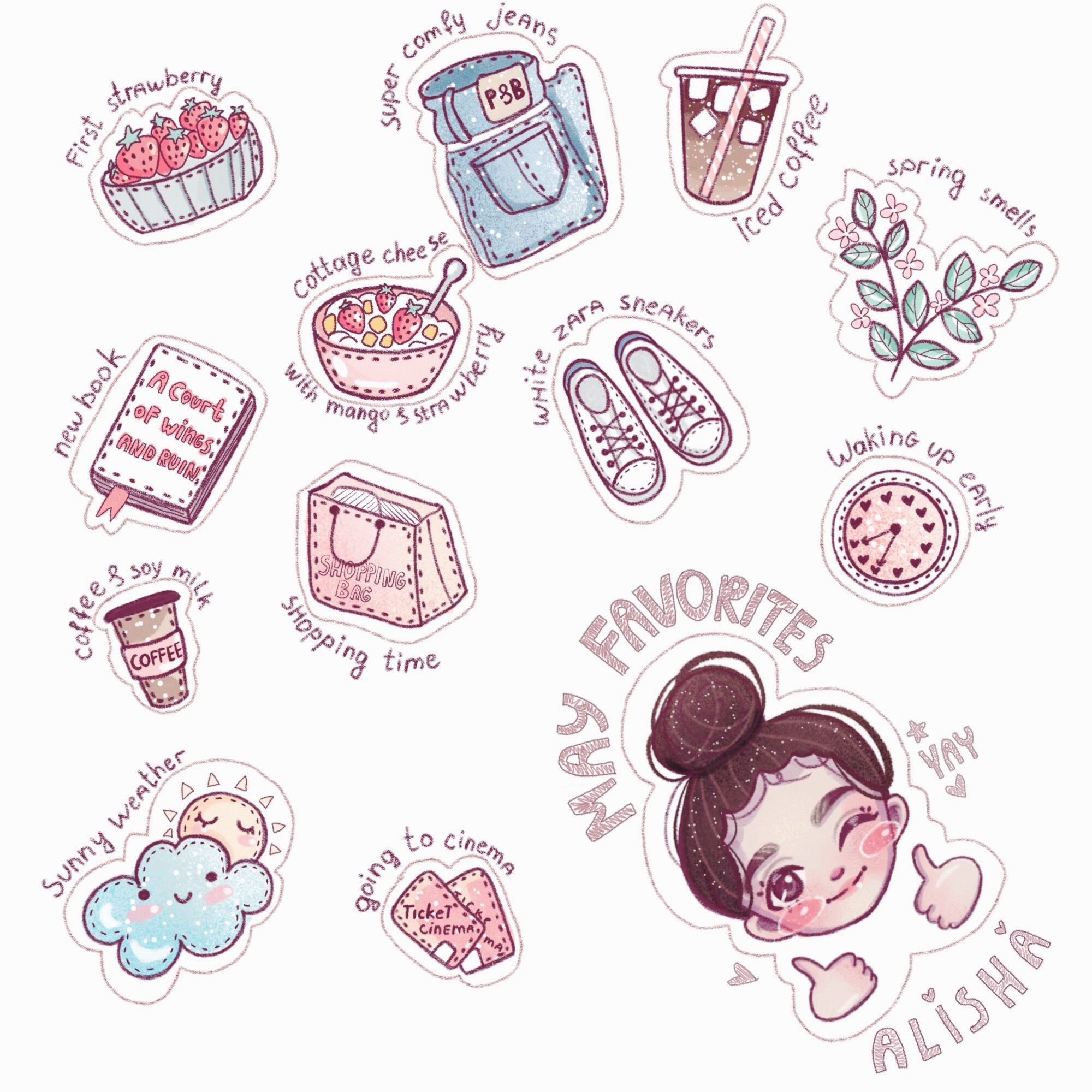 Эстетичные наклейки для срисовки