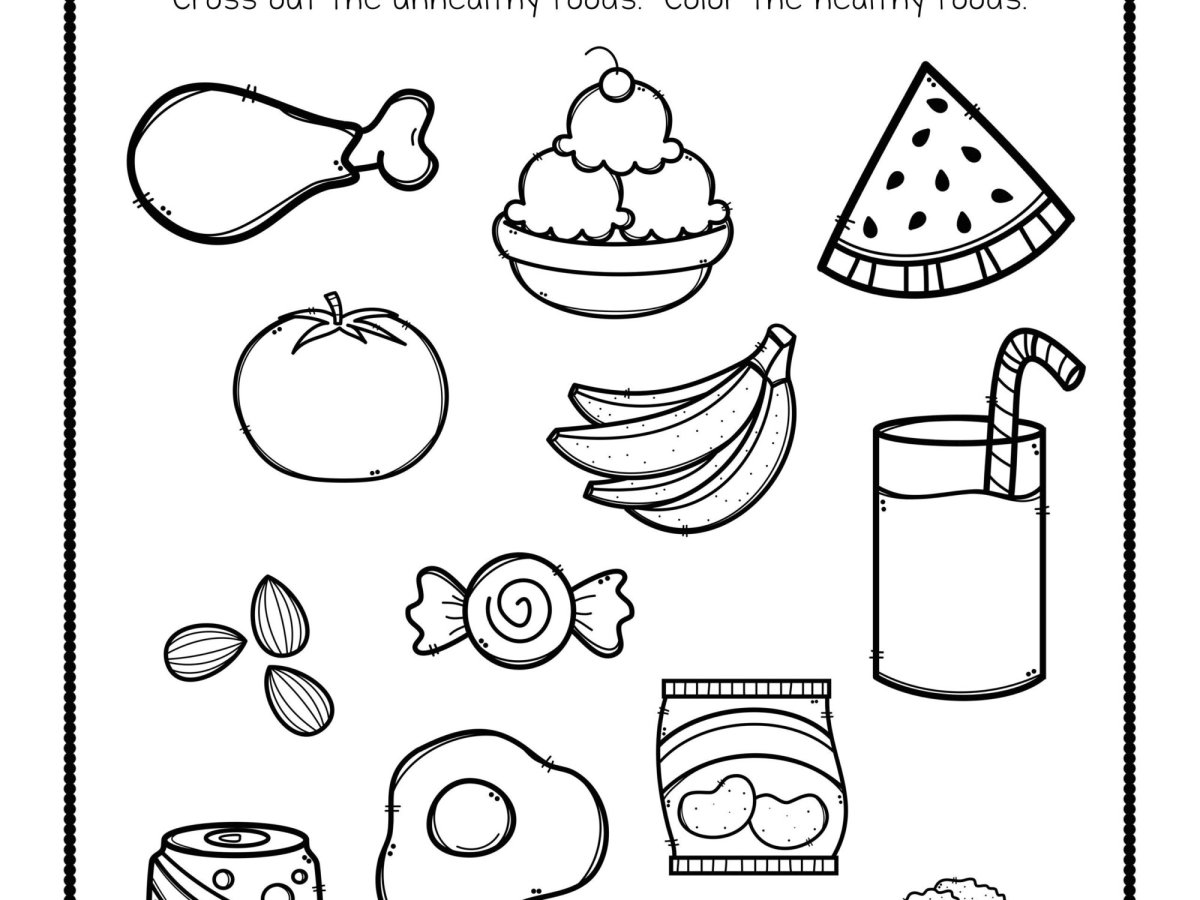 Здоровое питание и вредная еда раскраски