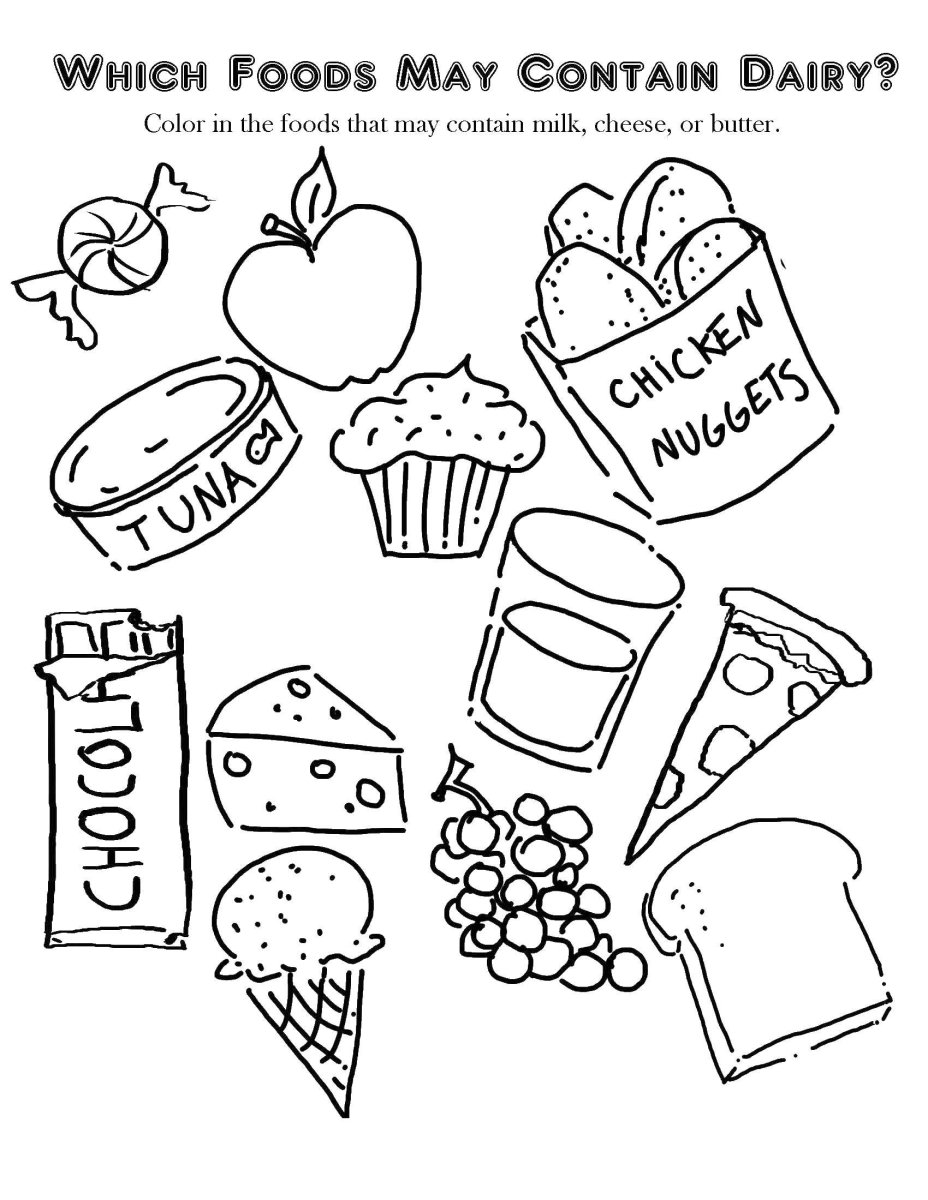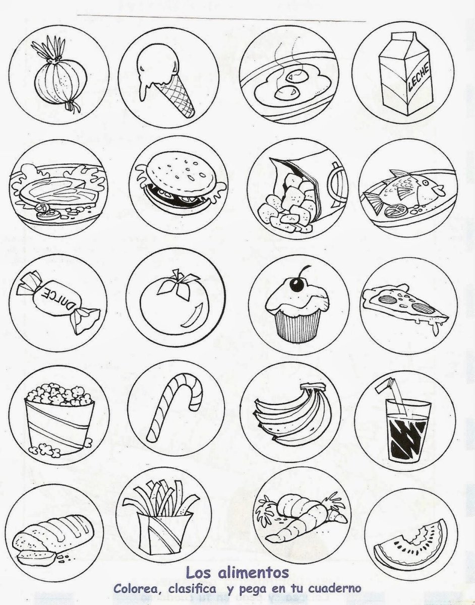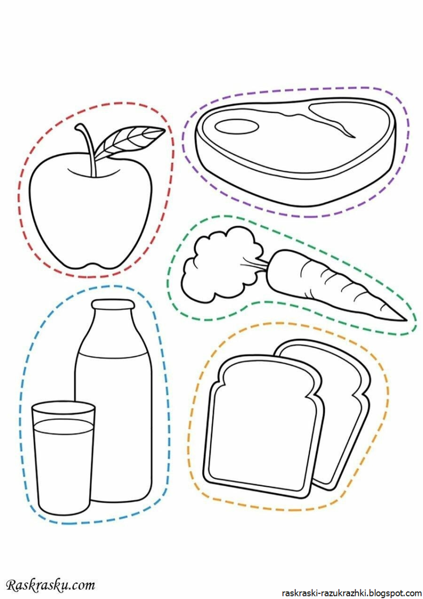 Раскраски полезных и вредных продуктов для детей