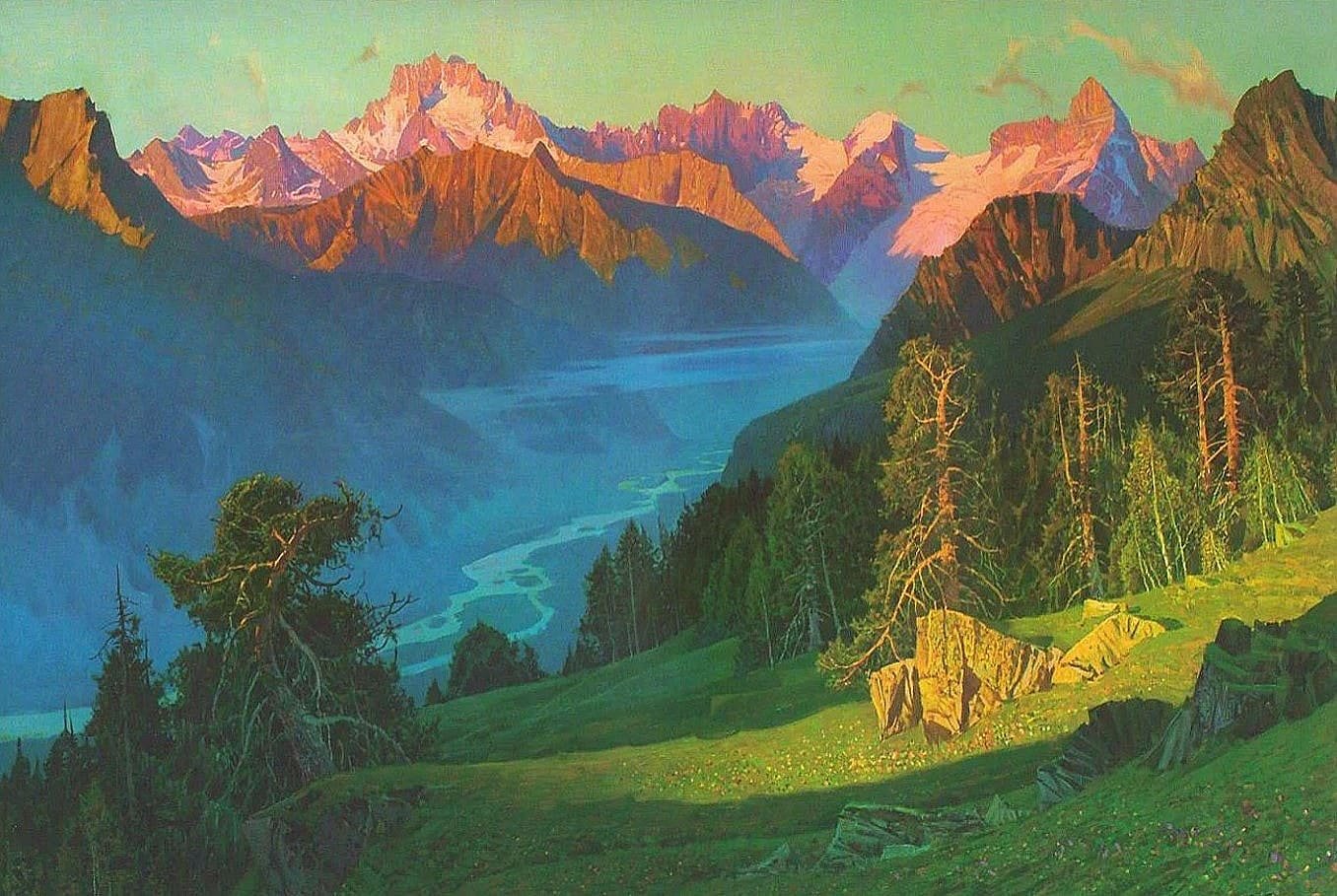 Фотореализм горный пейзаж маслом