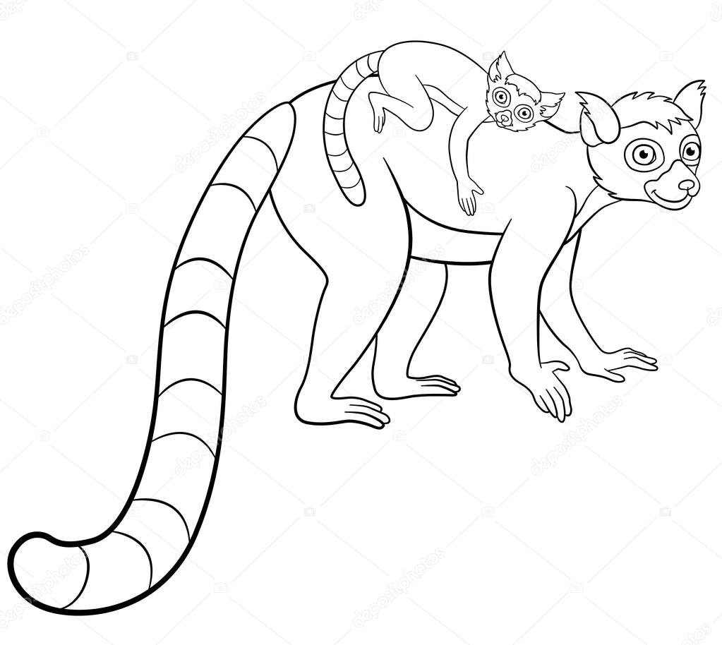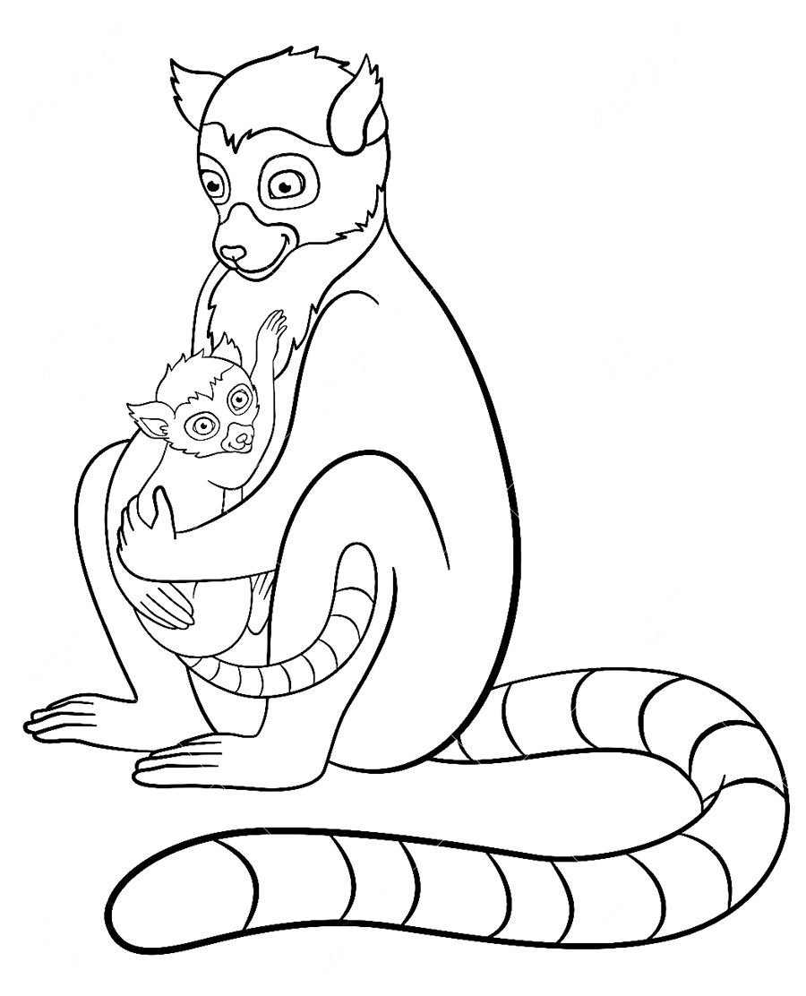 Лемур мама и детеныш раскраски