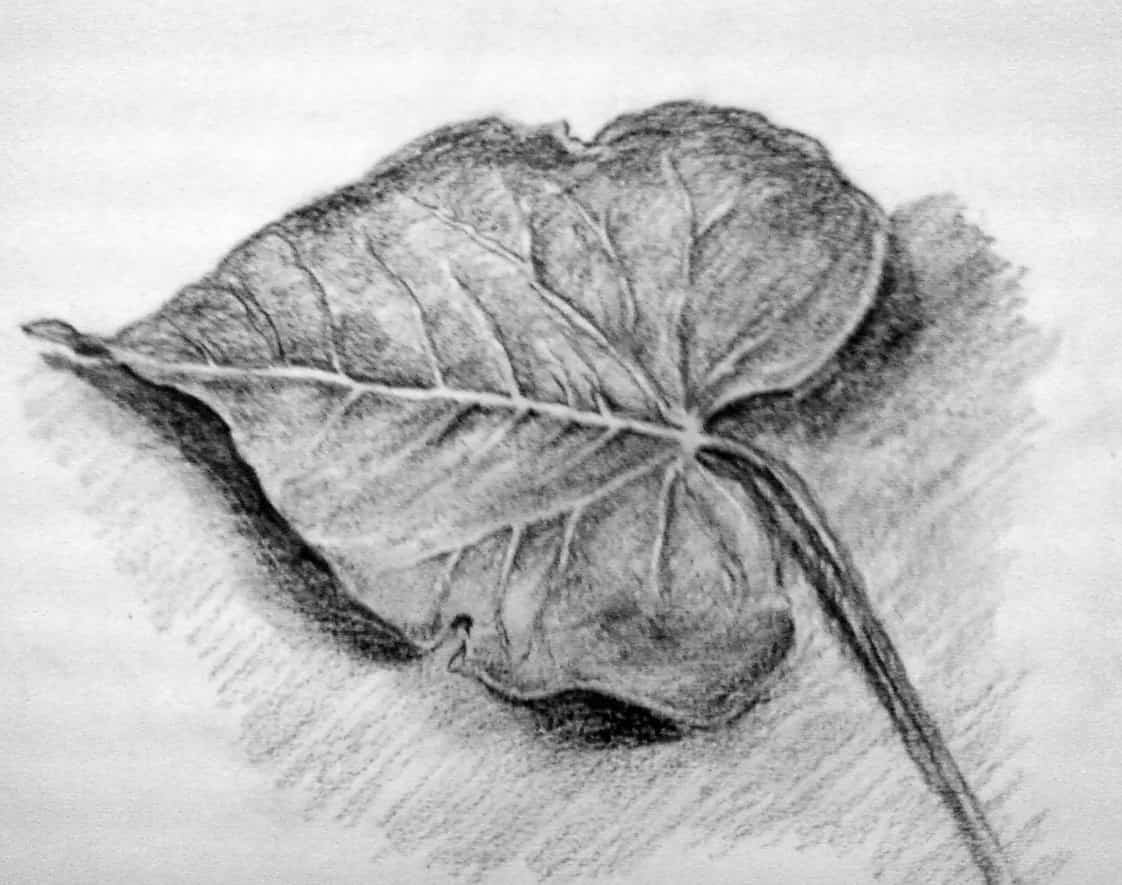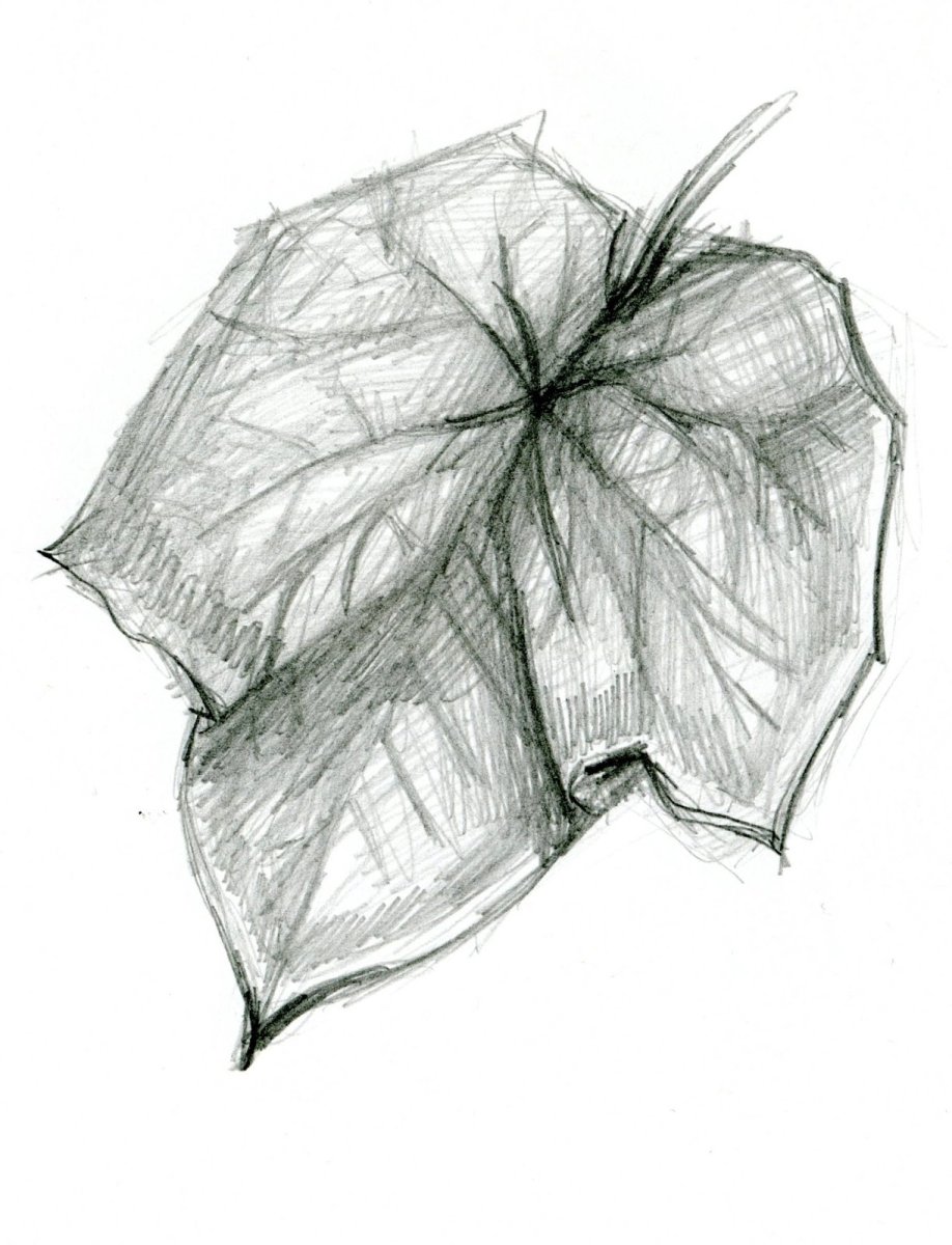 Набросок листа карандашом