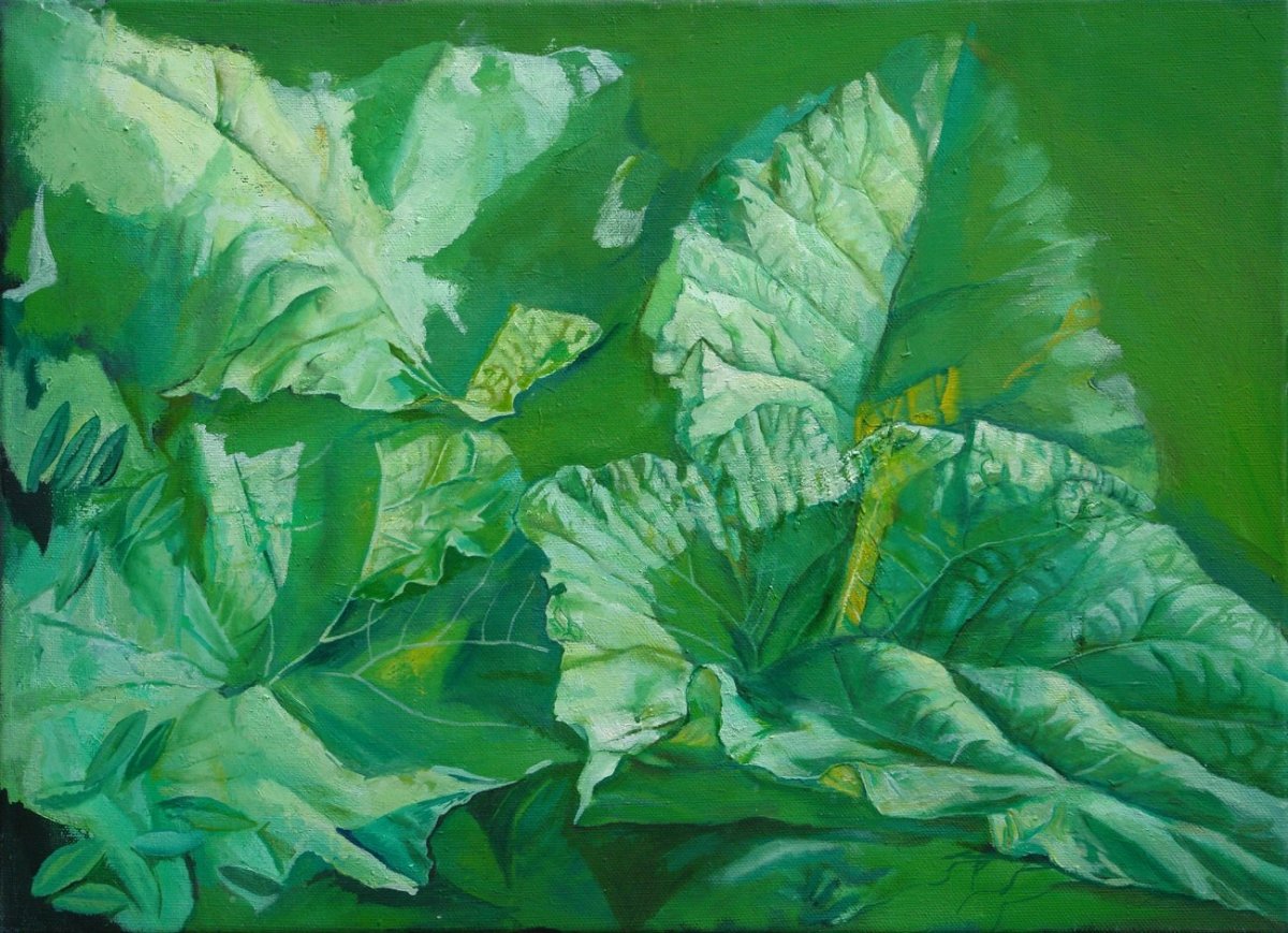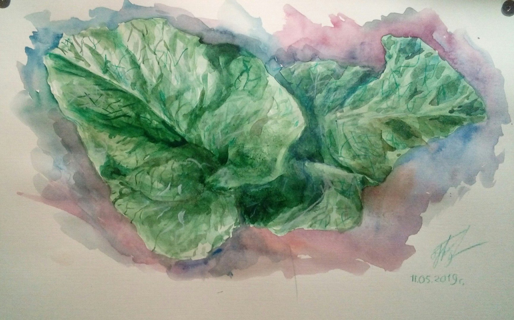 Лист лопуха акварелью