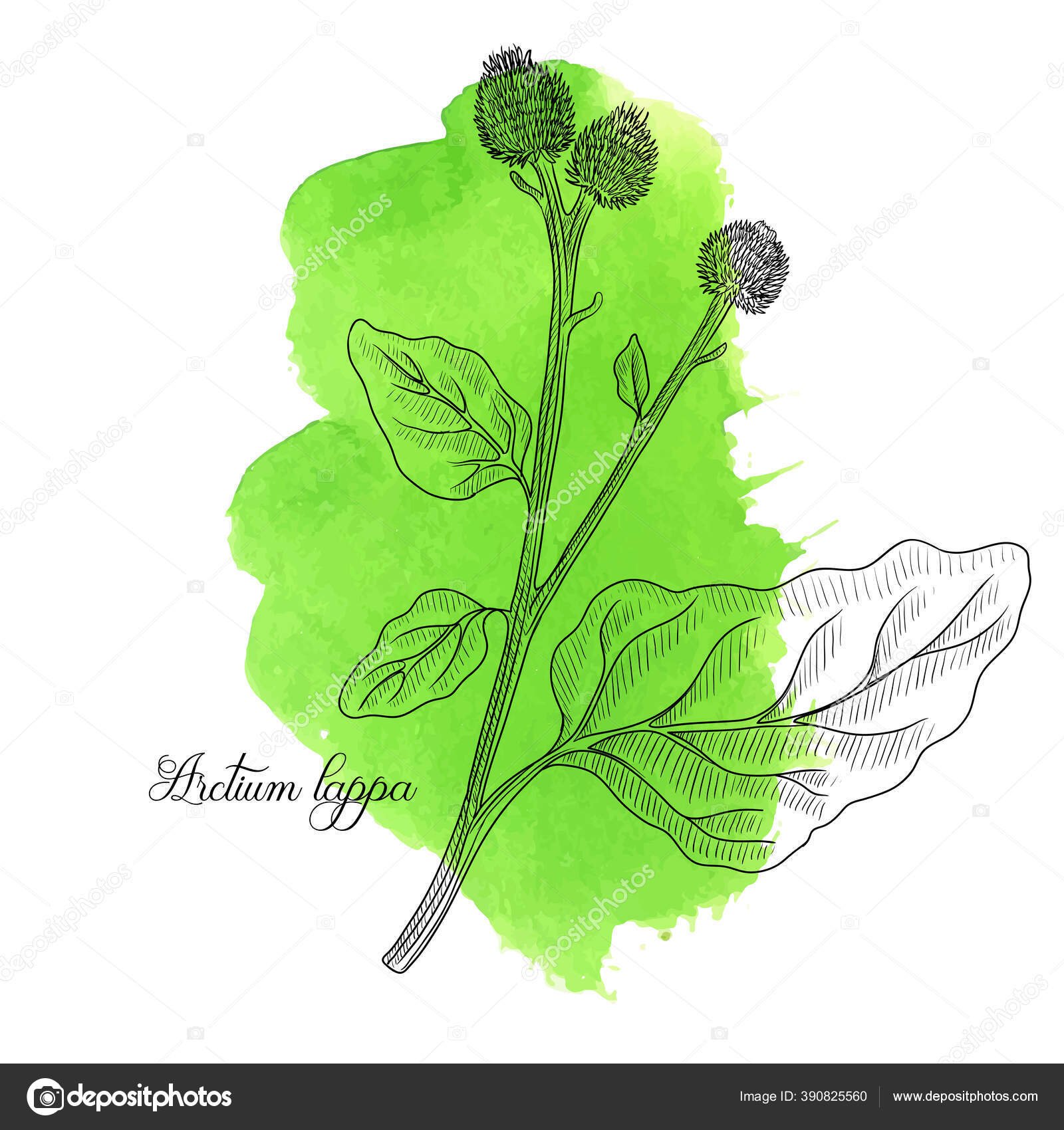 Лопух акварелью