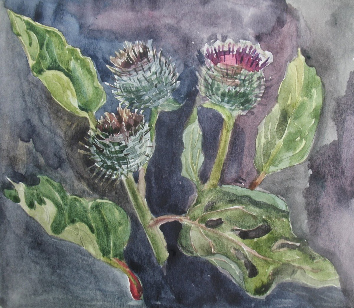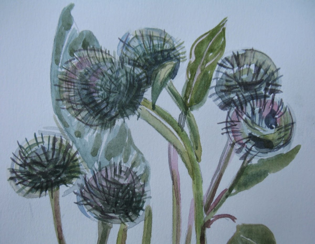 Репейник акварелью
