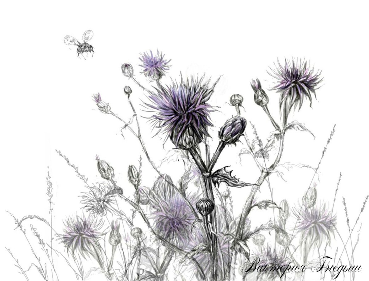 Чертополох акварель