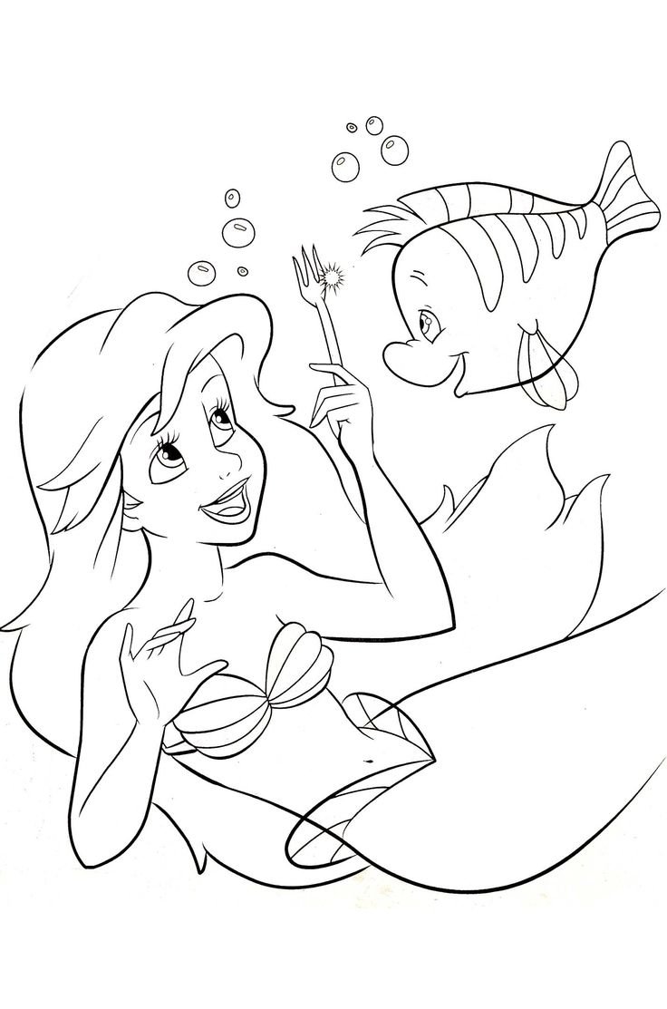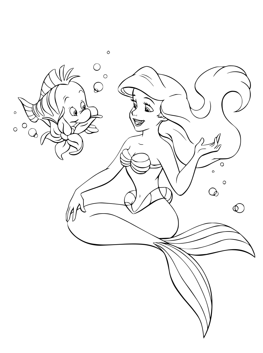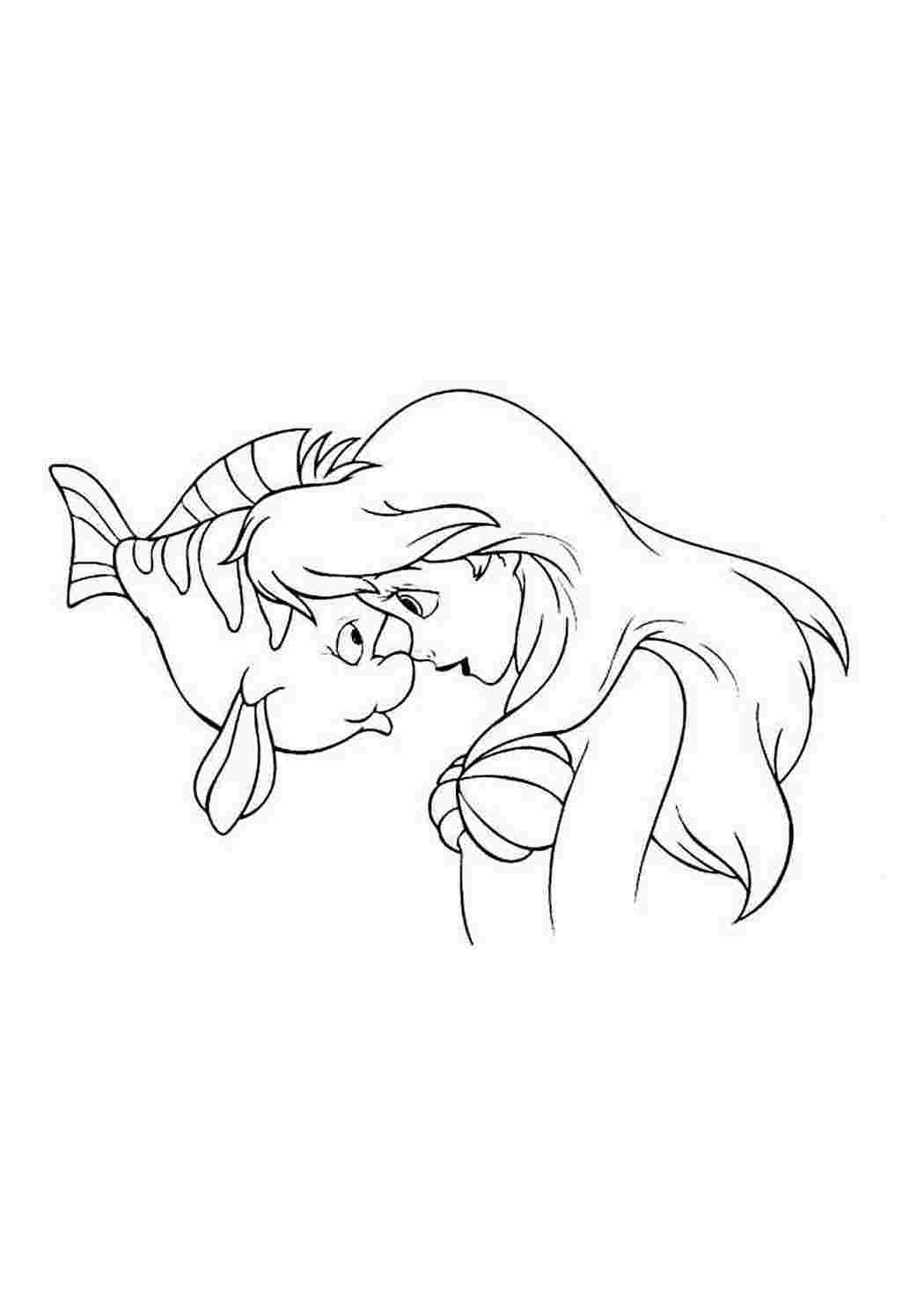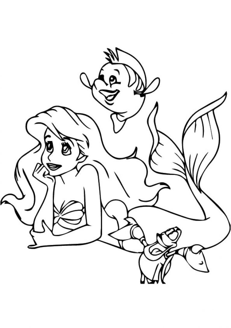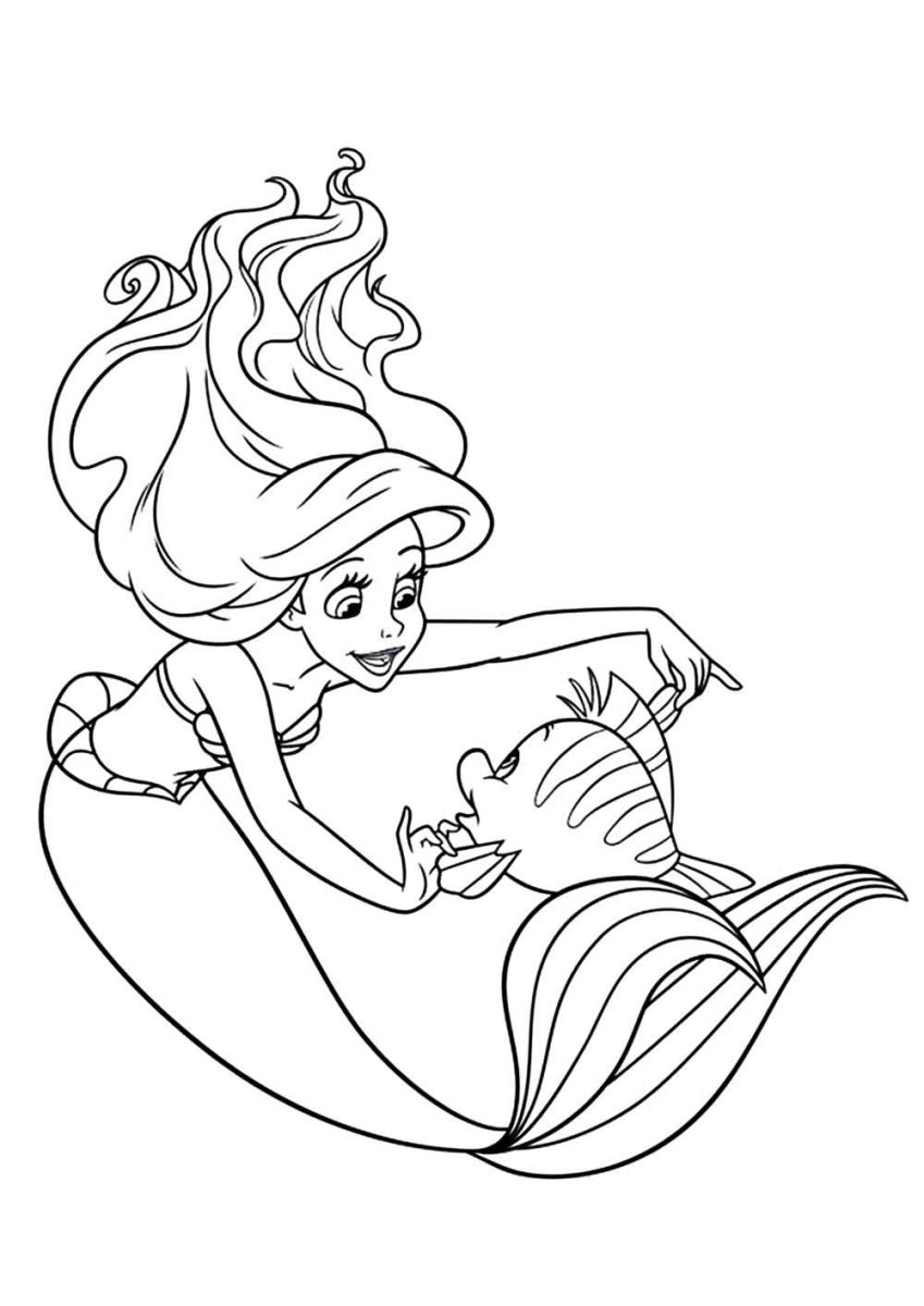 Раскраски принцессы Диснея Ариэль и Флаундер