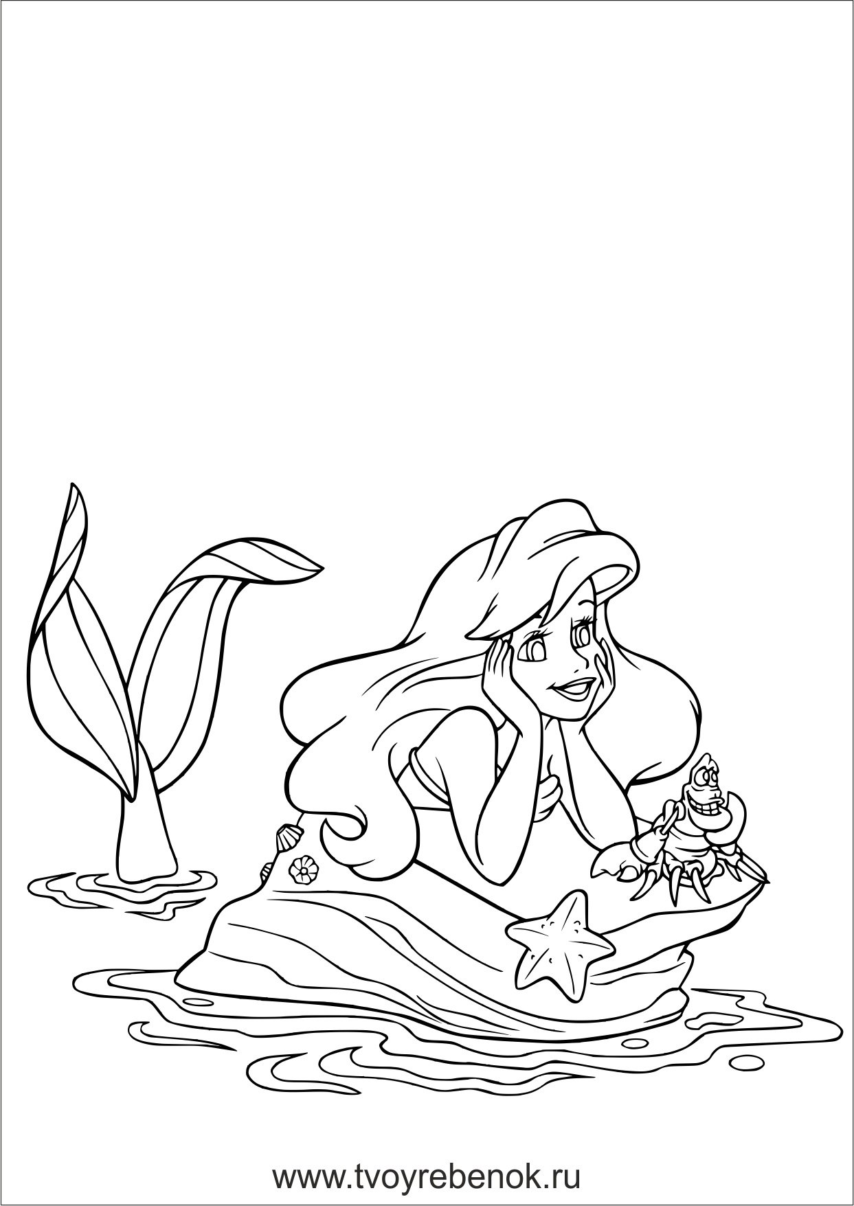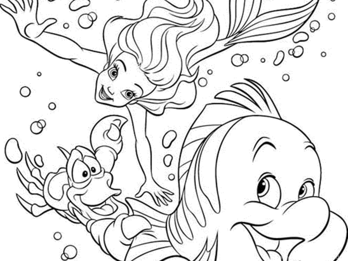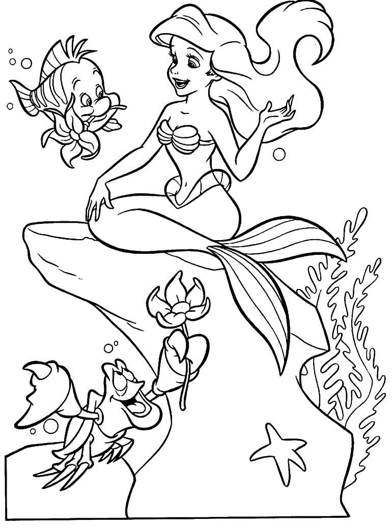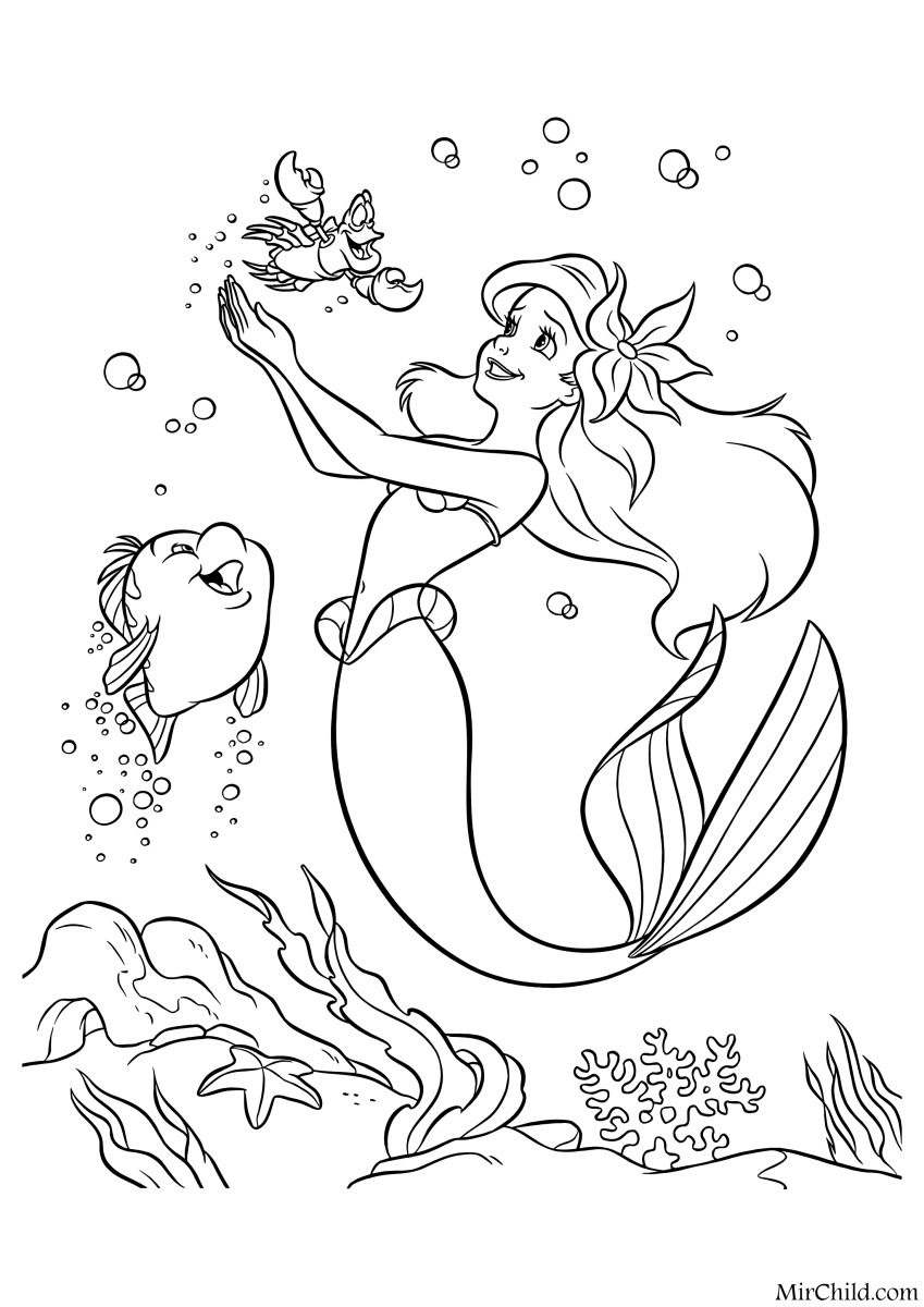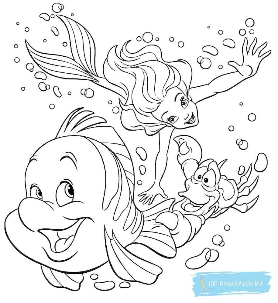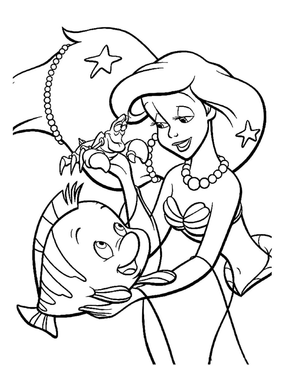 Раскраски принцессы Диснея Ариэль и Флаундер