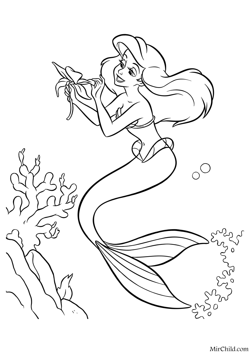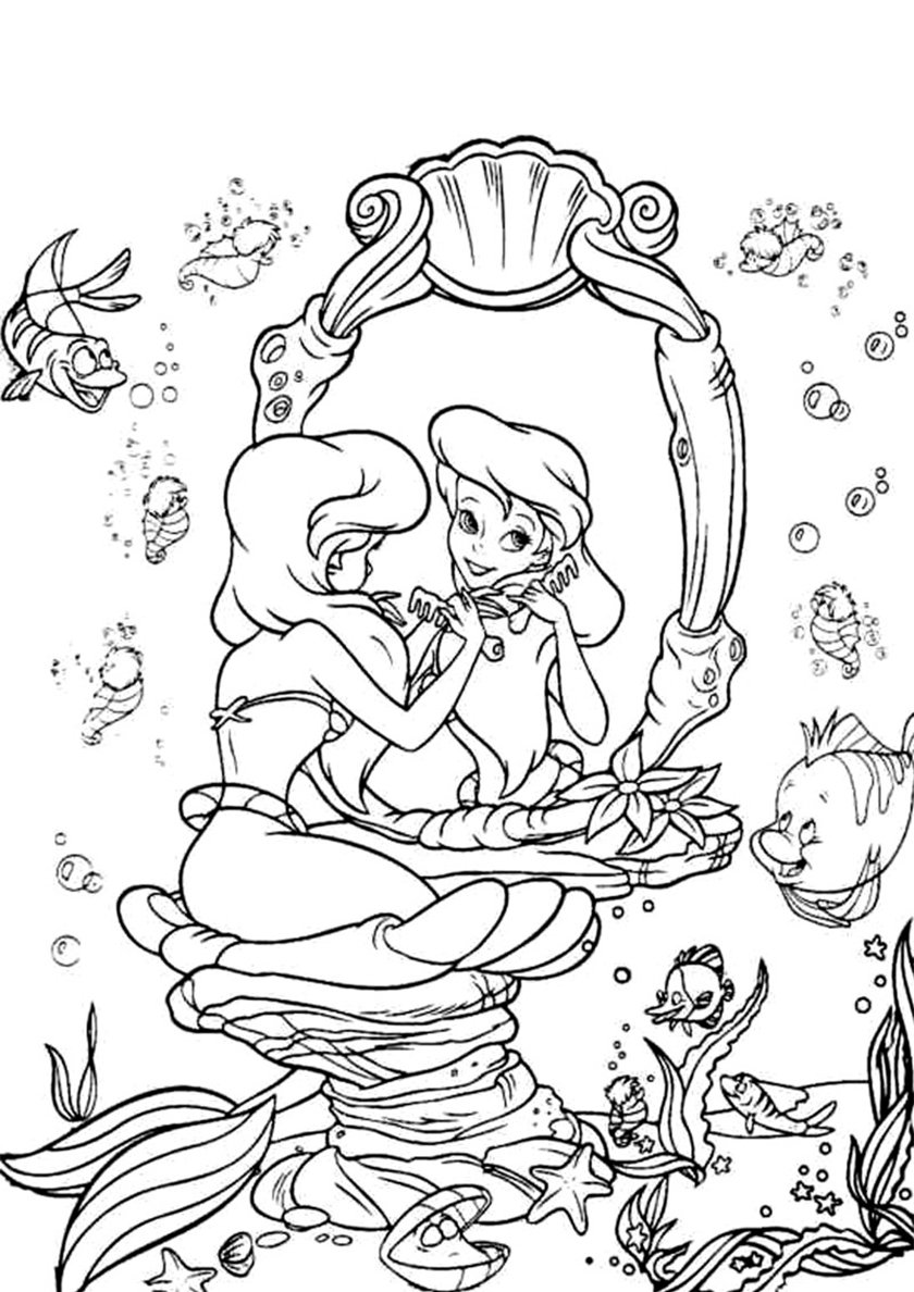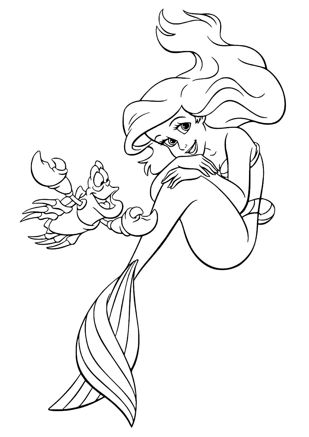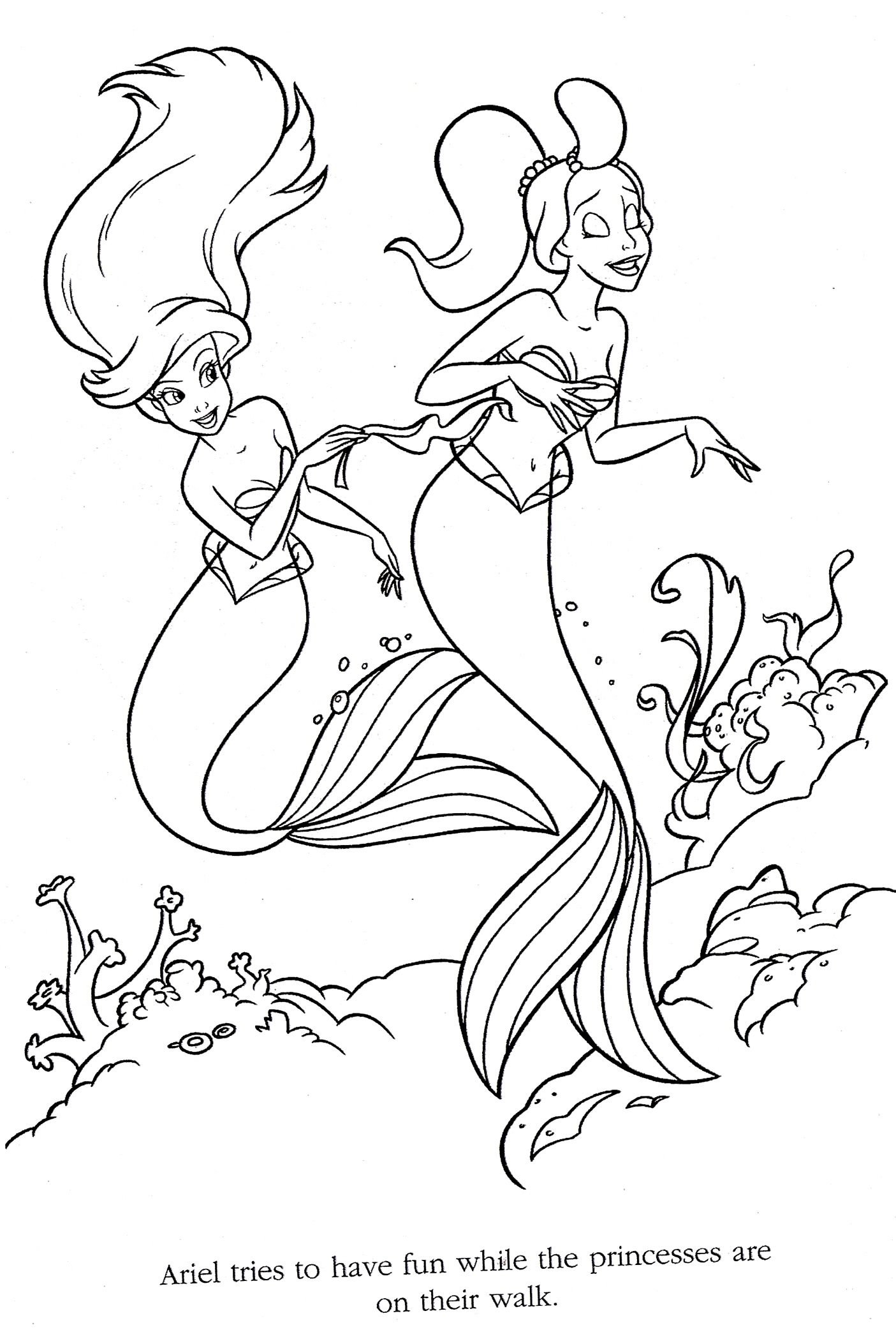 Раскраски принцессы Диснея Ариэль и Флаундер