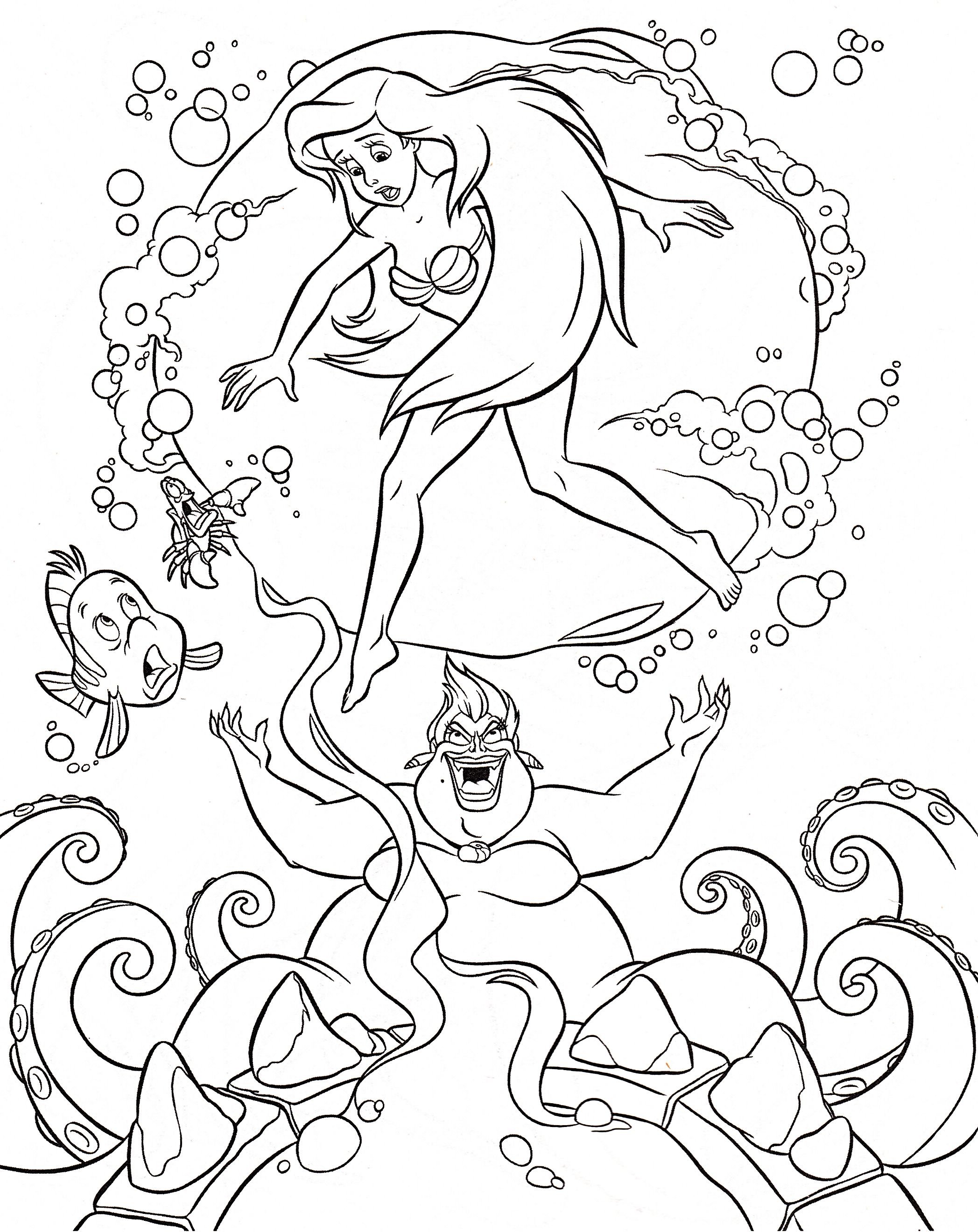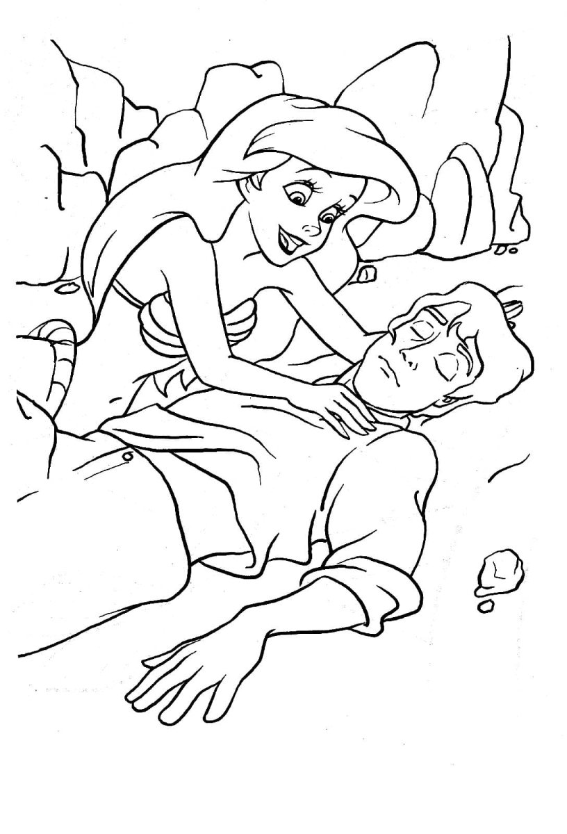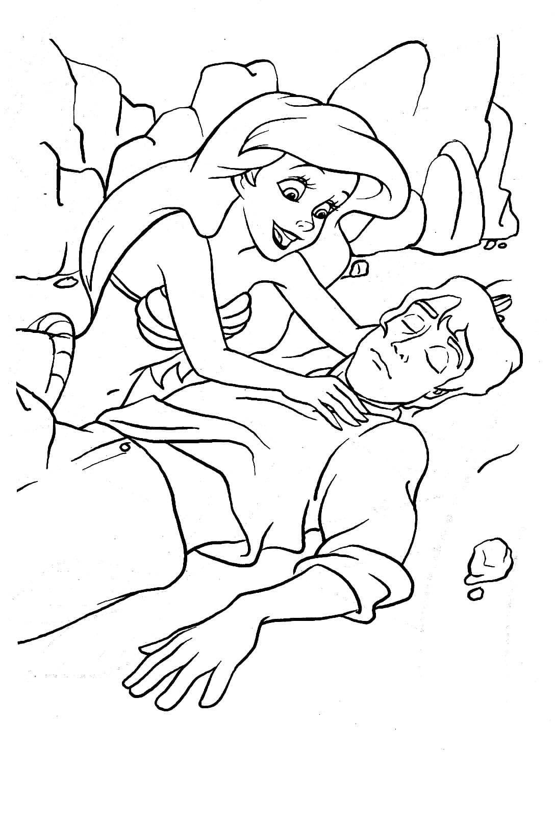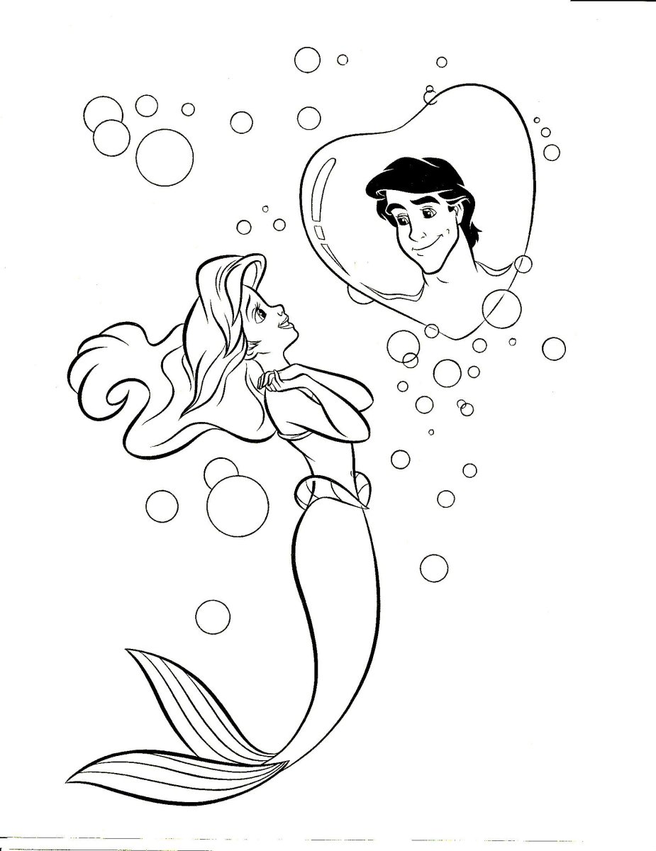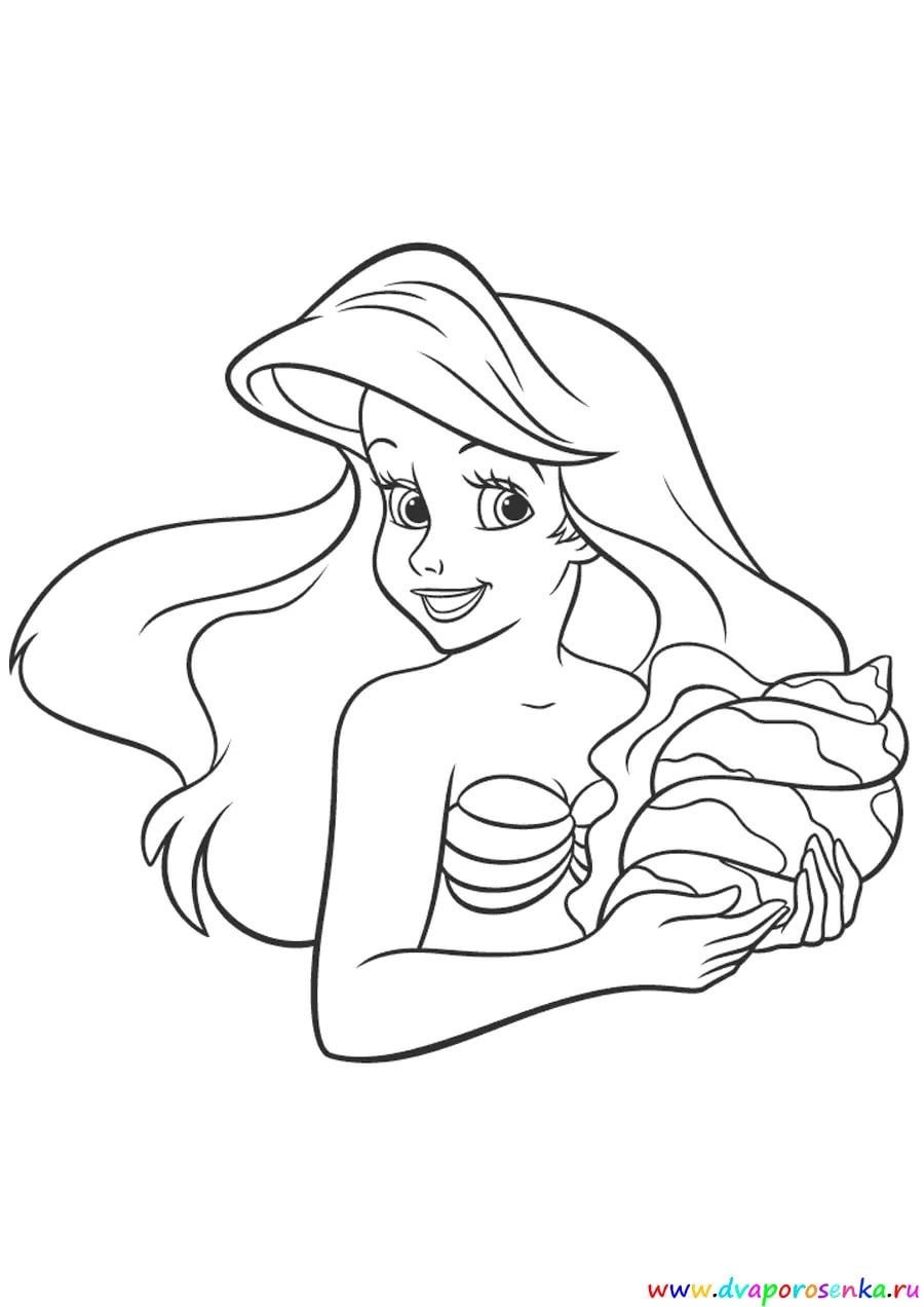 Раскраски принцессы Диснея Ариэль и Флаундер