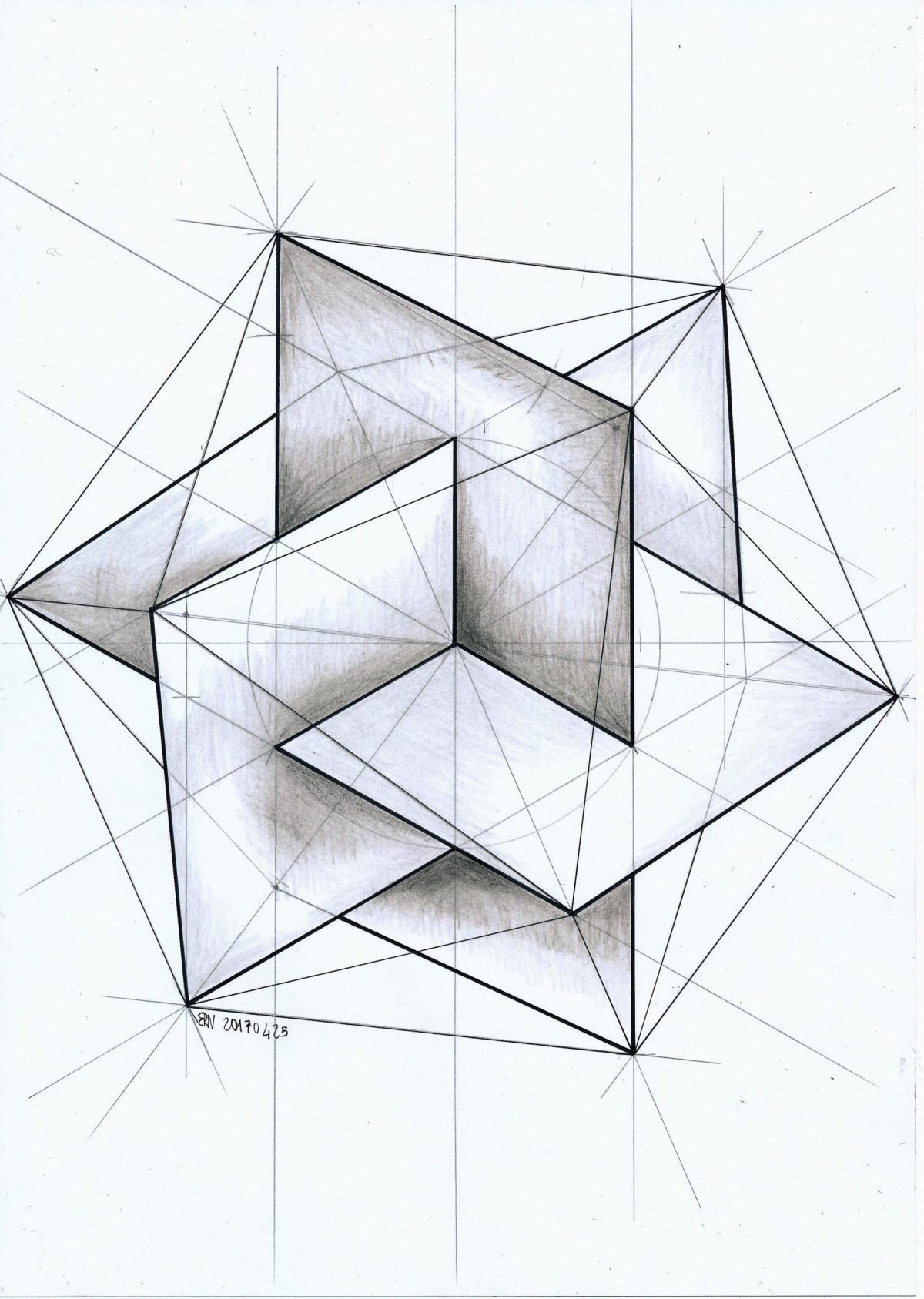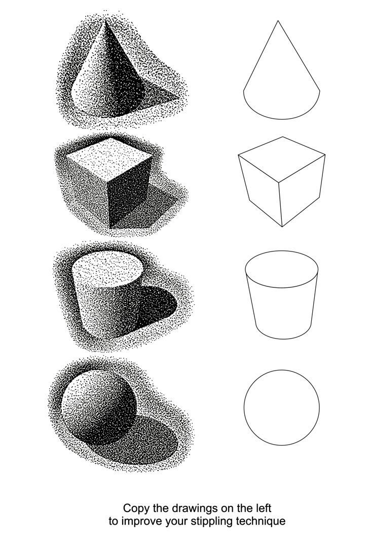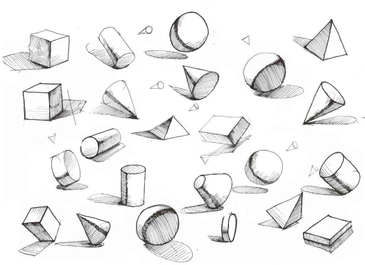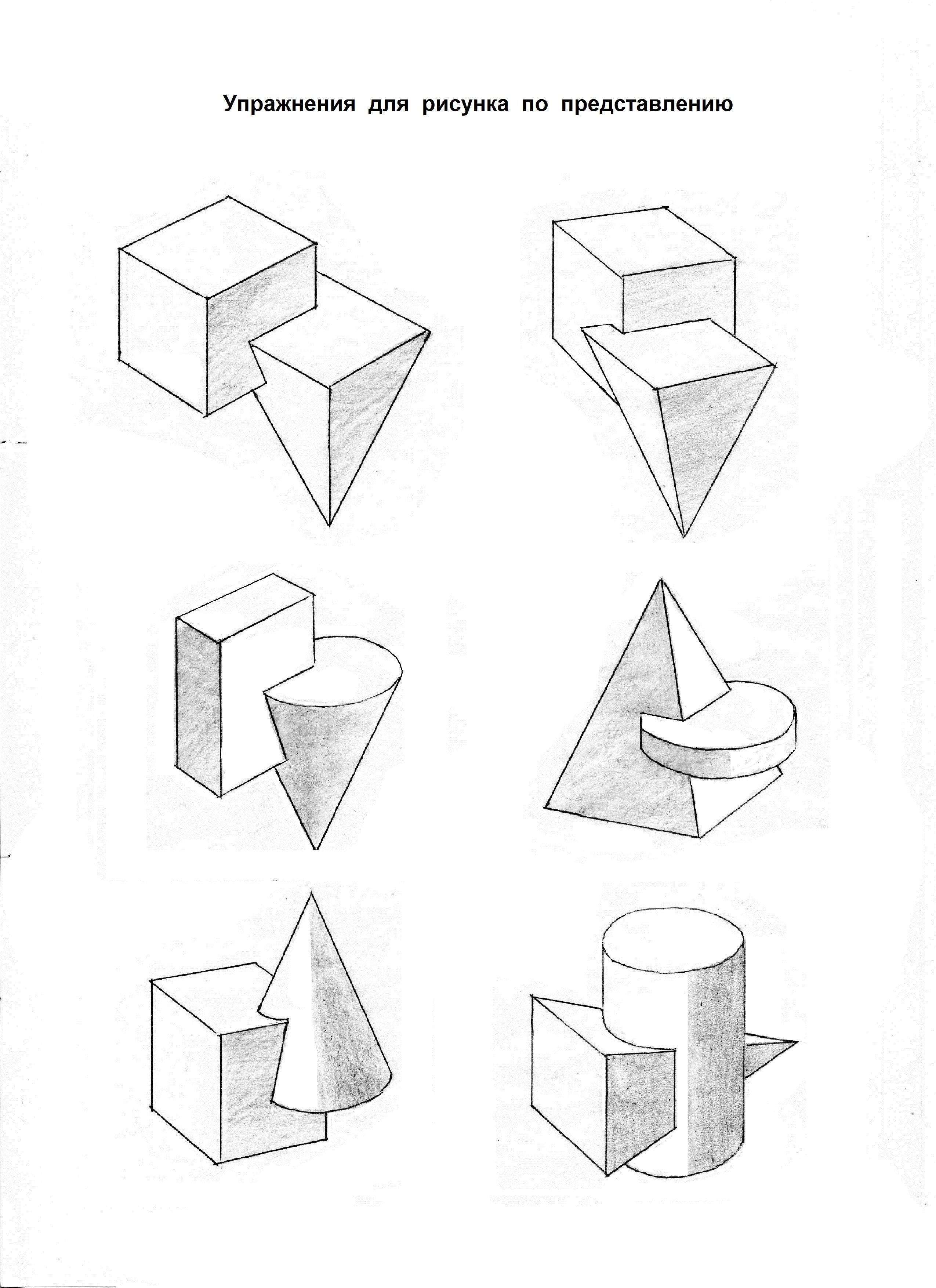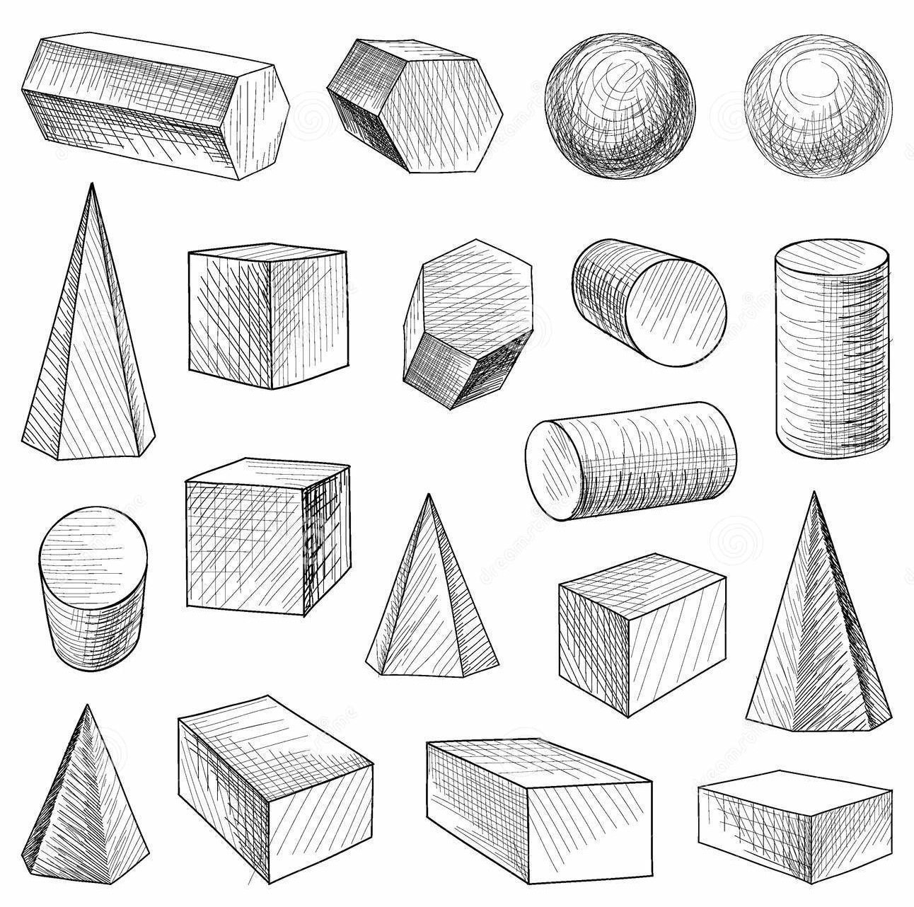 Натюрморт из геометрических форм (куб, конус, шар), Графика.