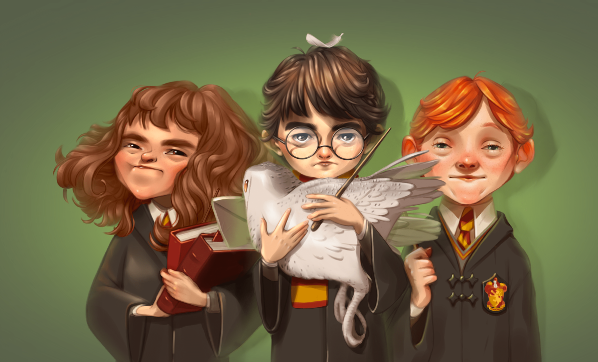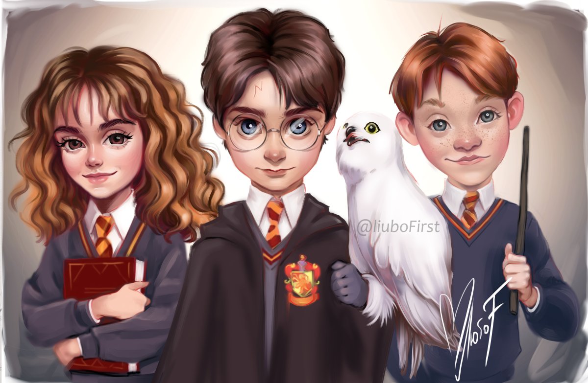 Мультяшный Гарри Поттер Рон и Гермиона