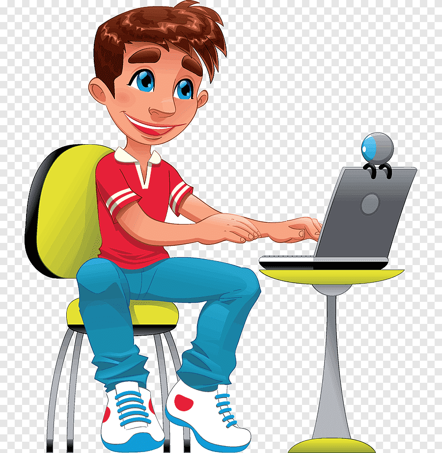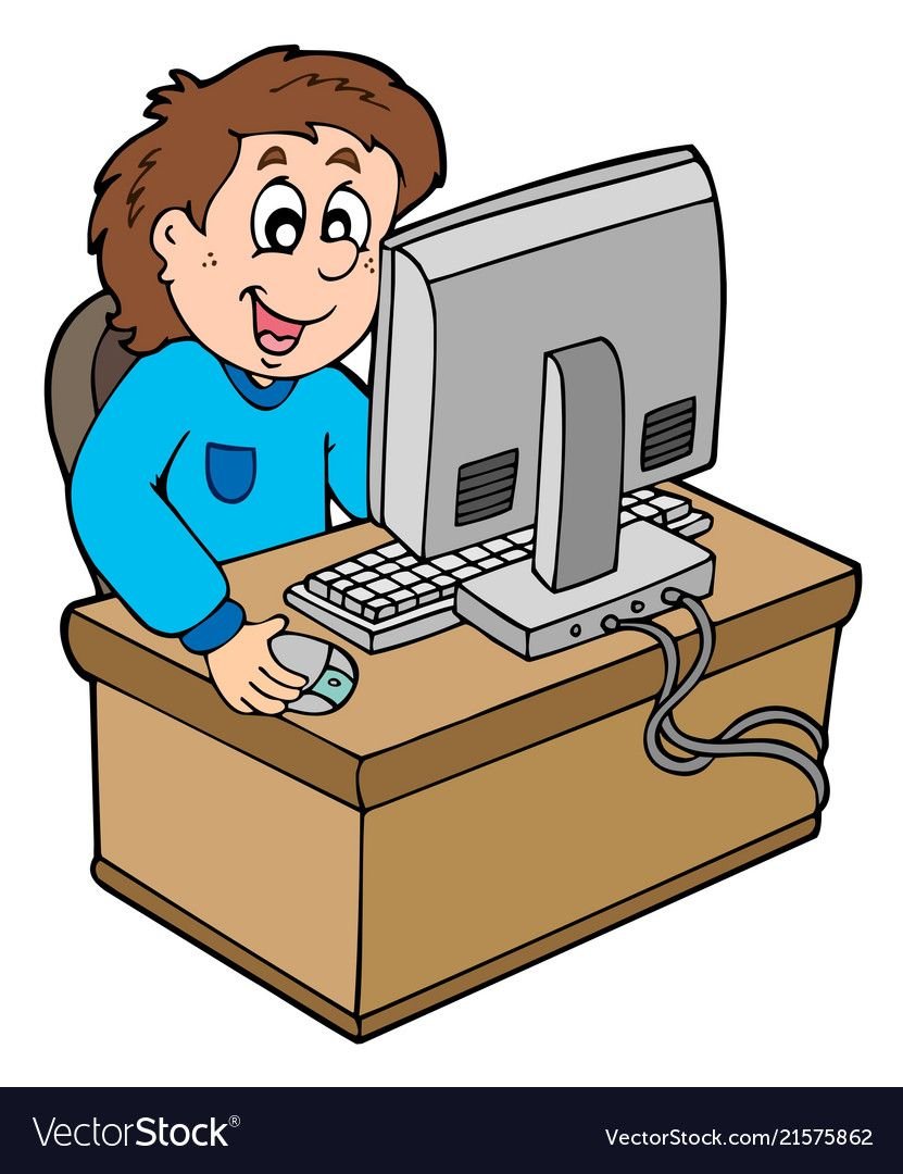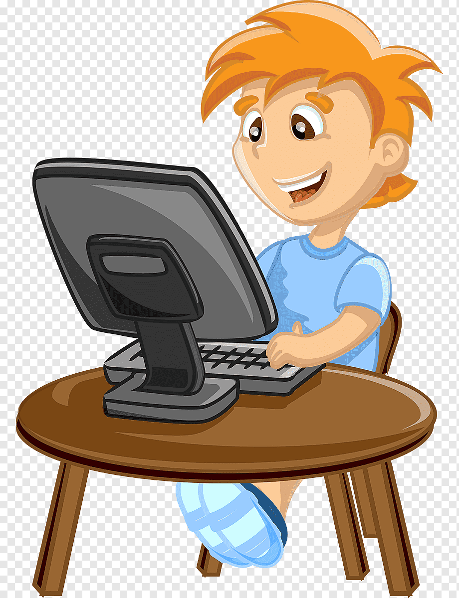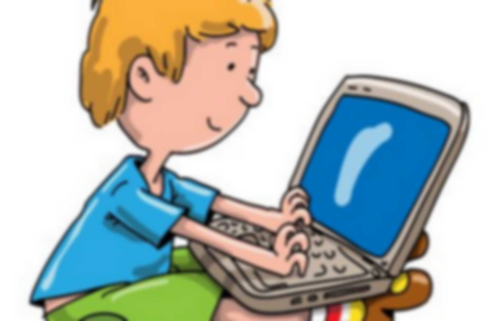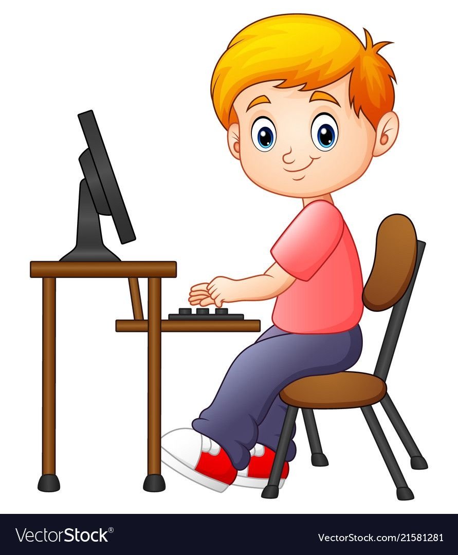 Мальчик за компьютером мультяшный