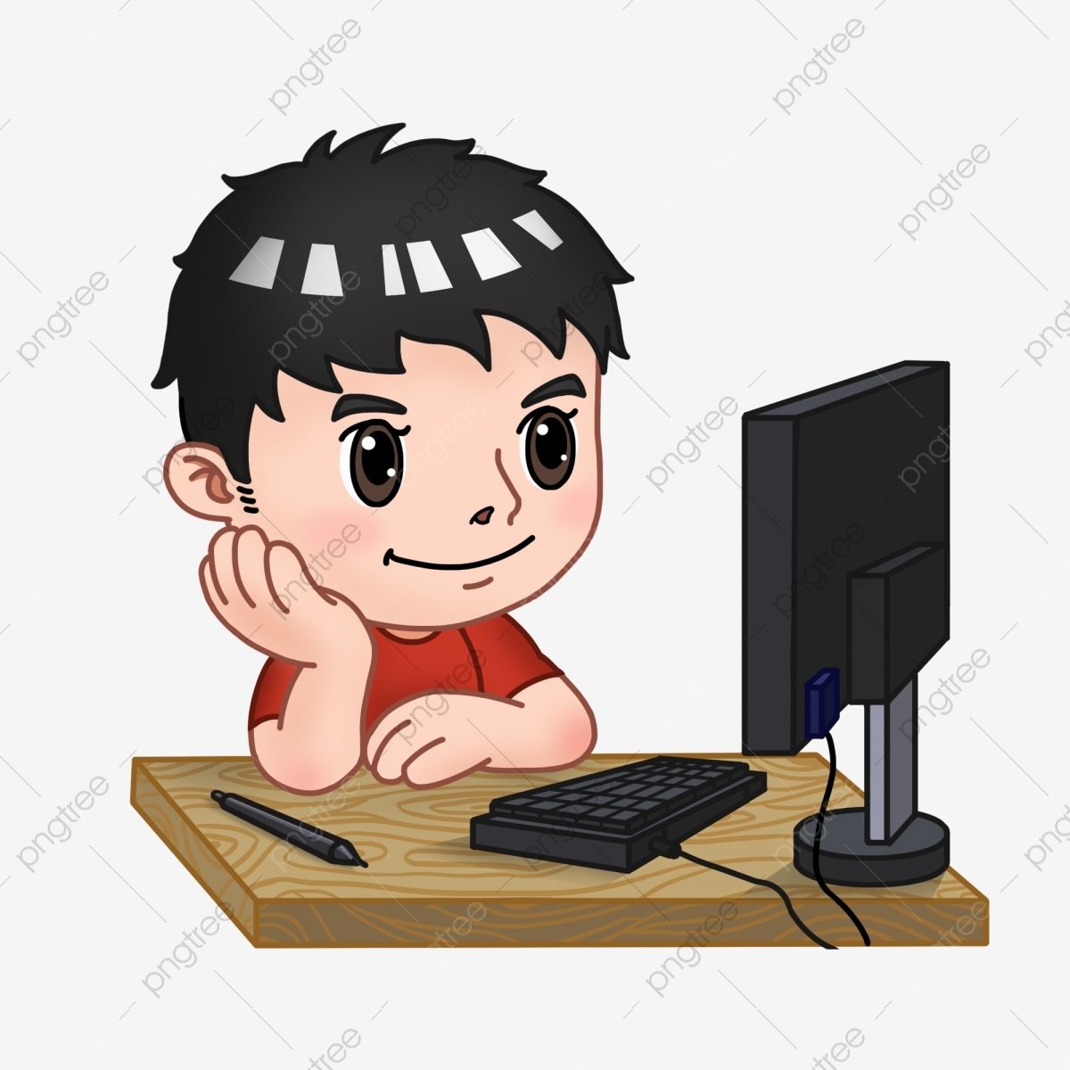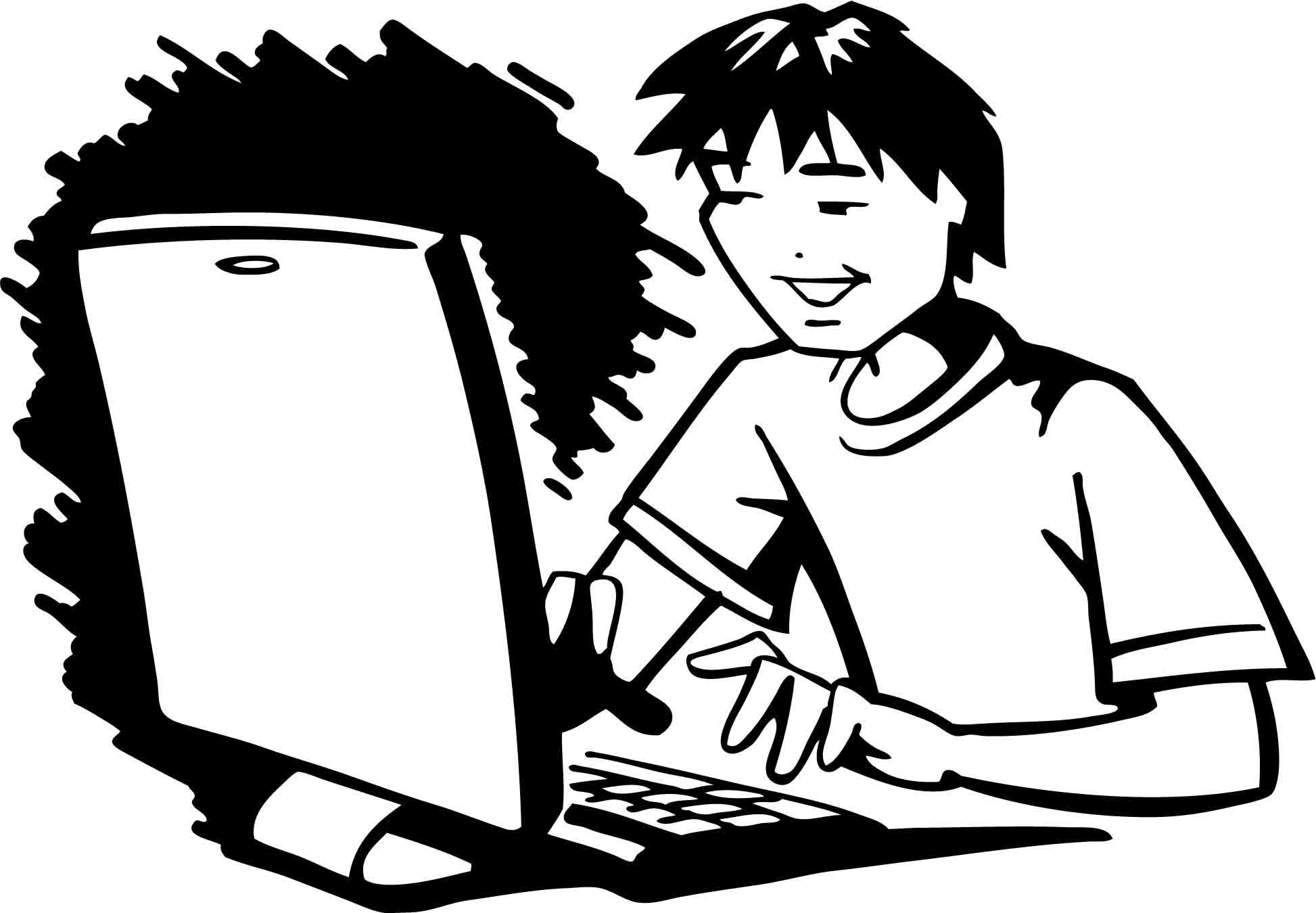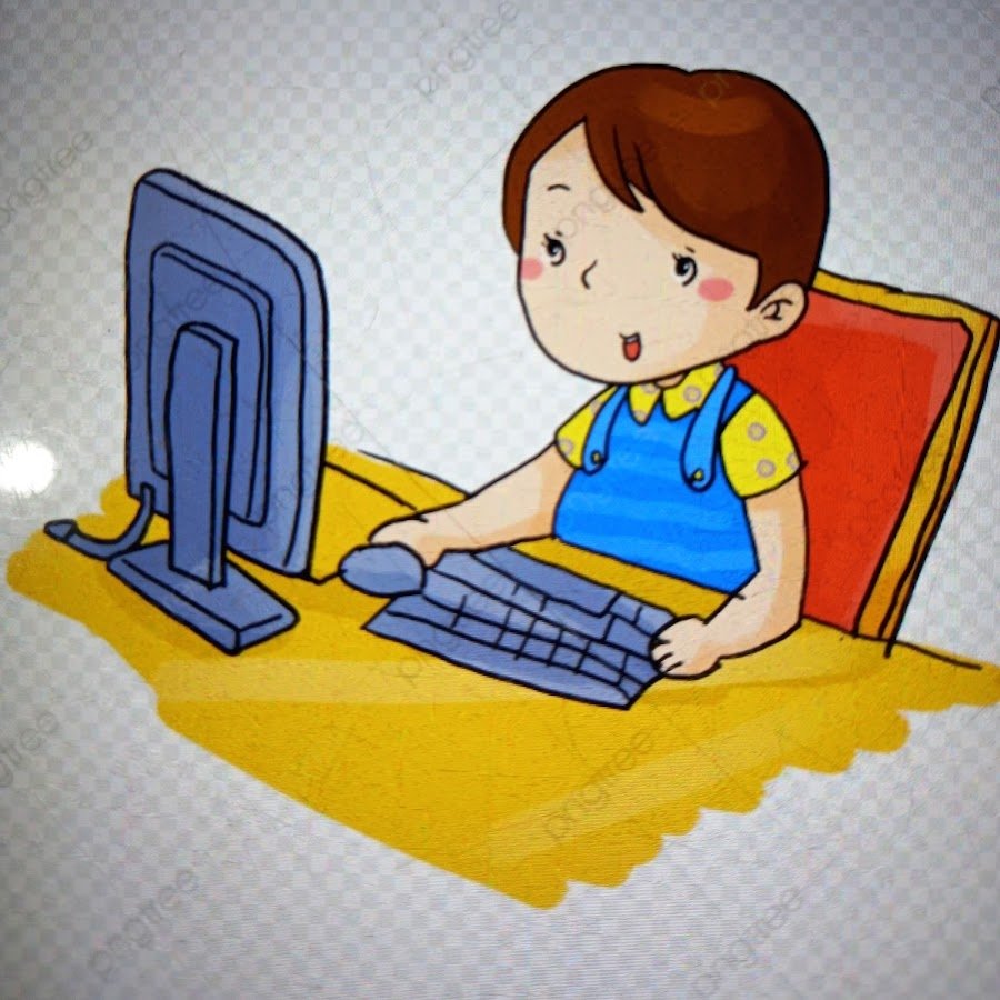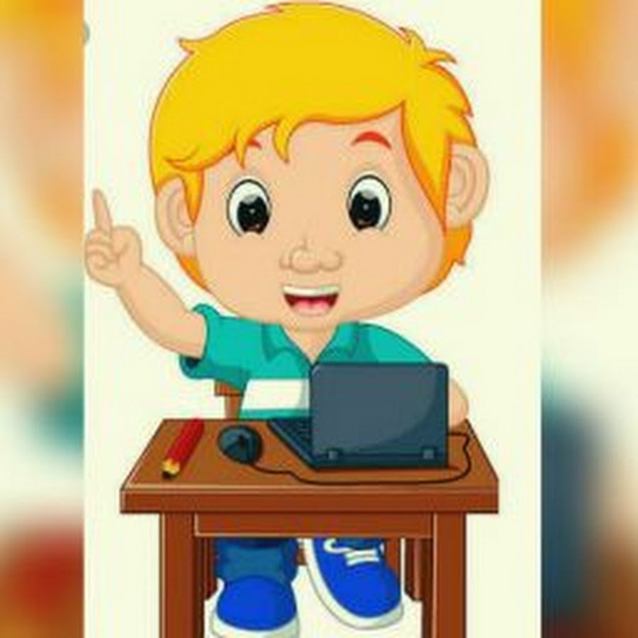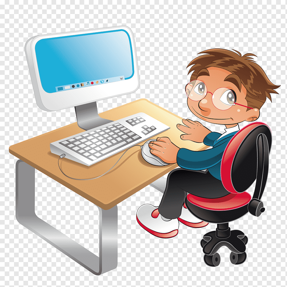 Мальчик за компьютером мультяшный