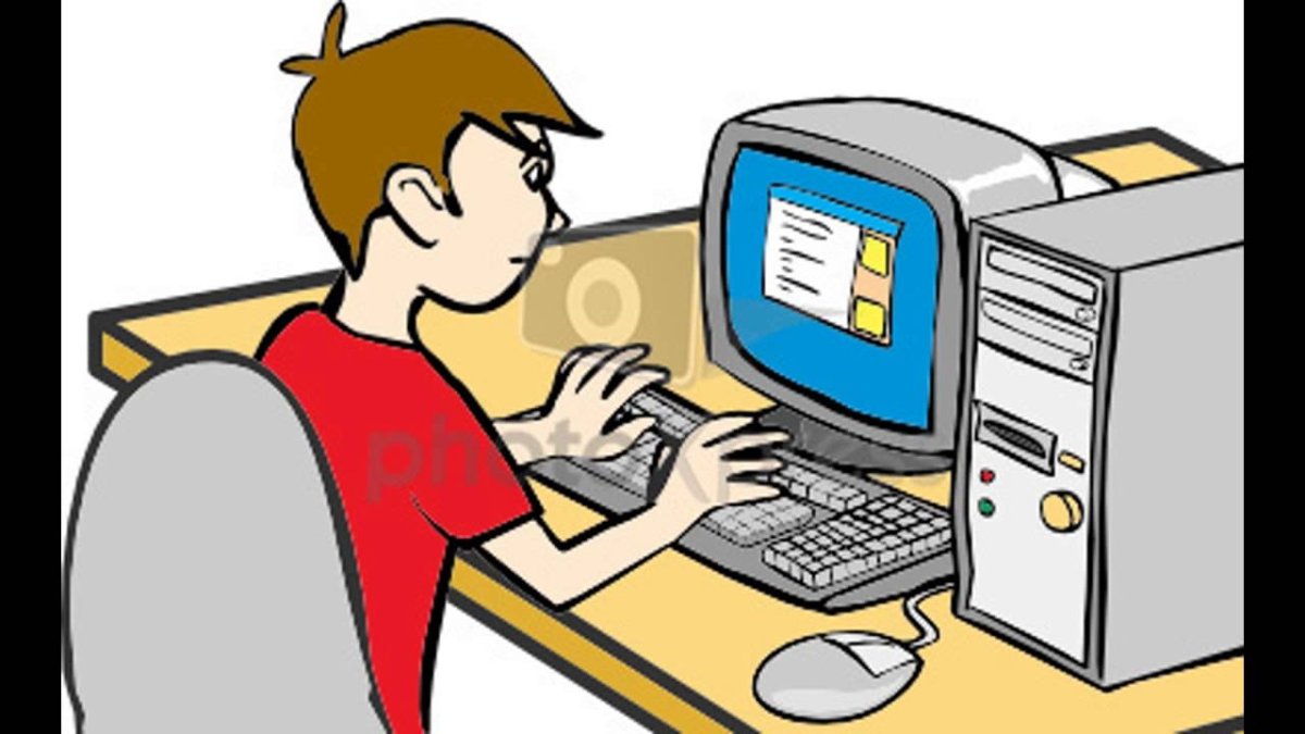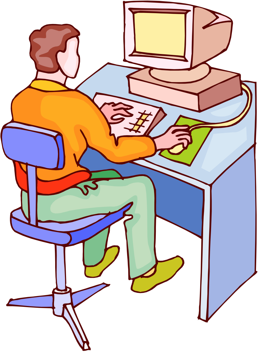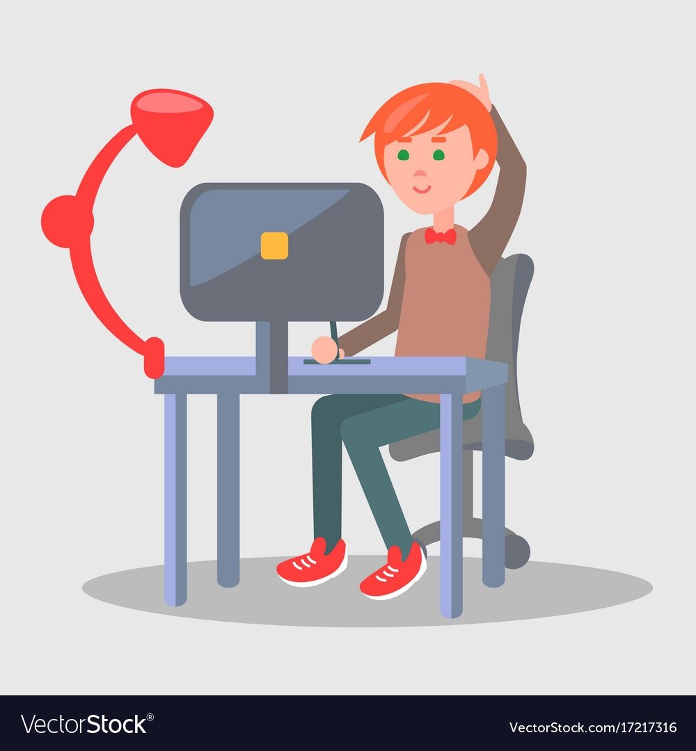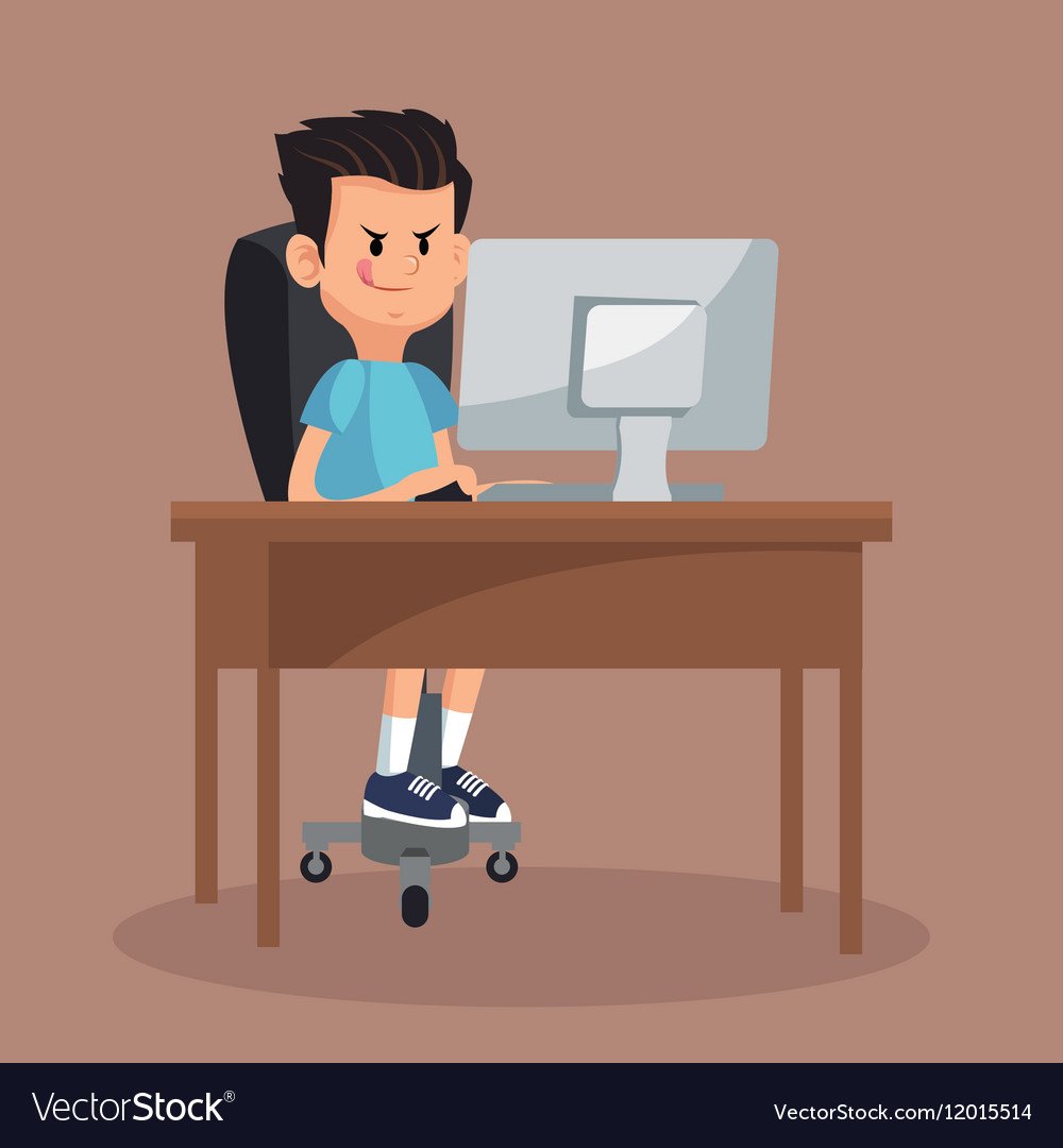 Человек сидящий за компьютером мультяшный