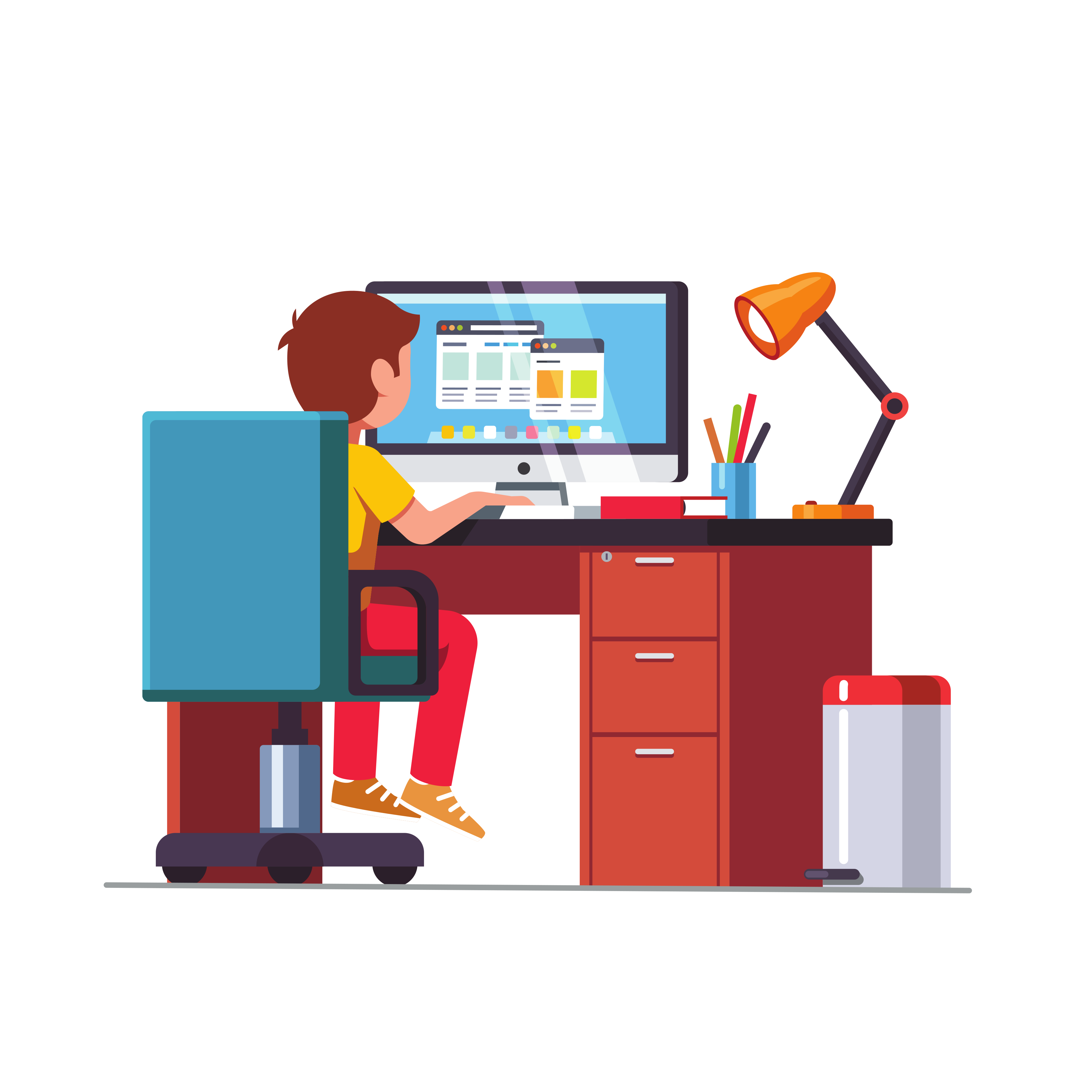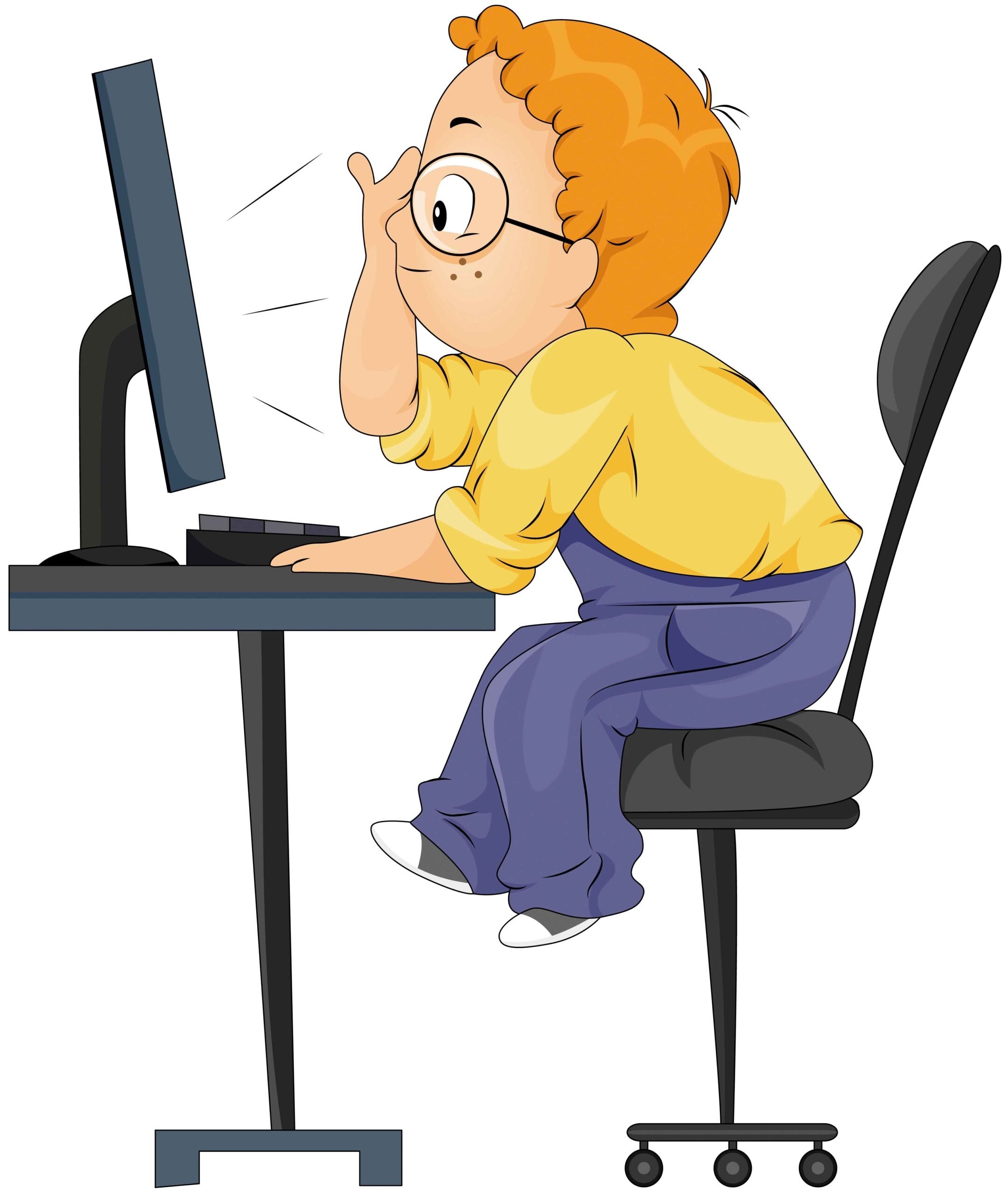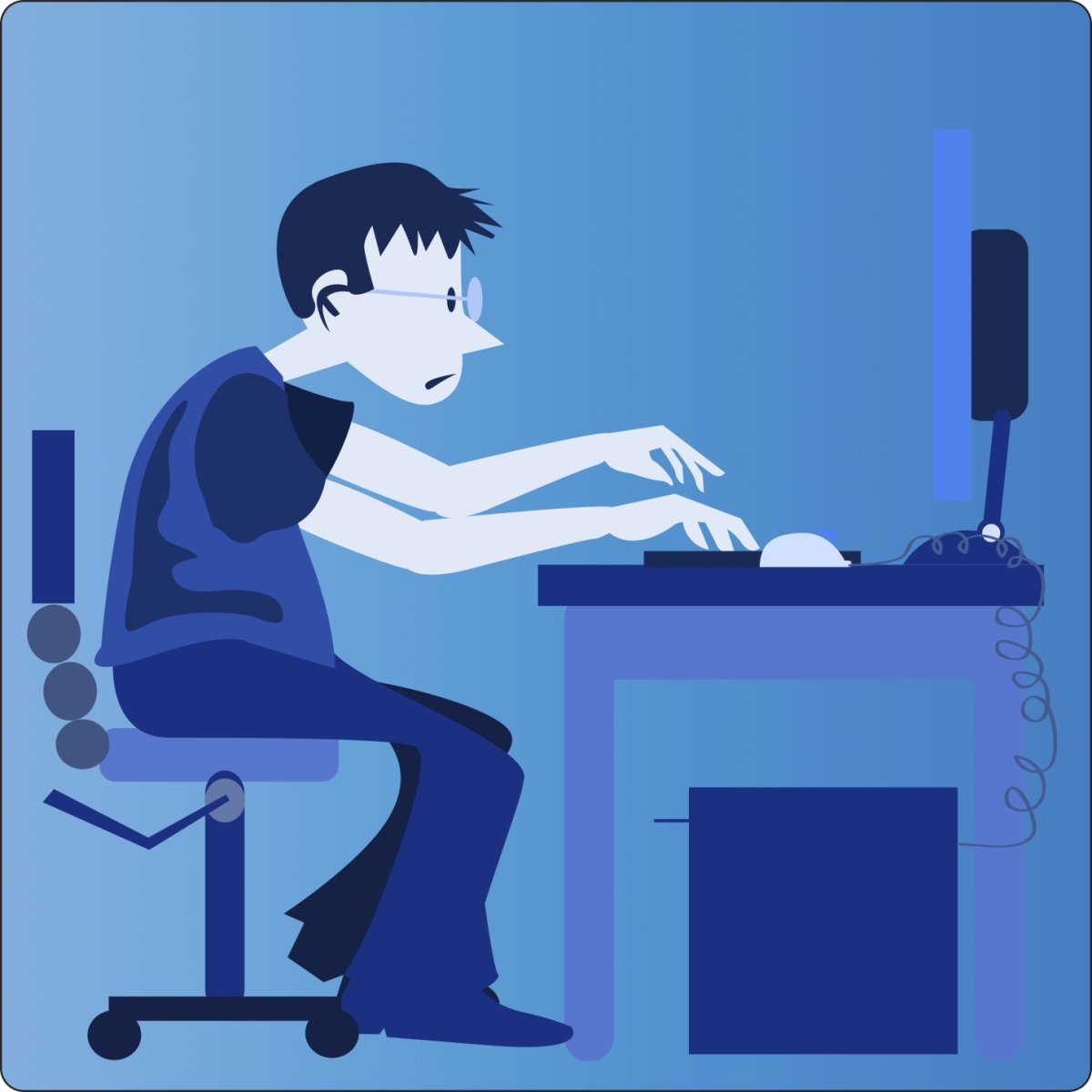 Человек сидящий за компьютером мультяшный