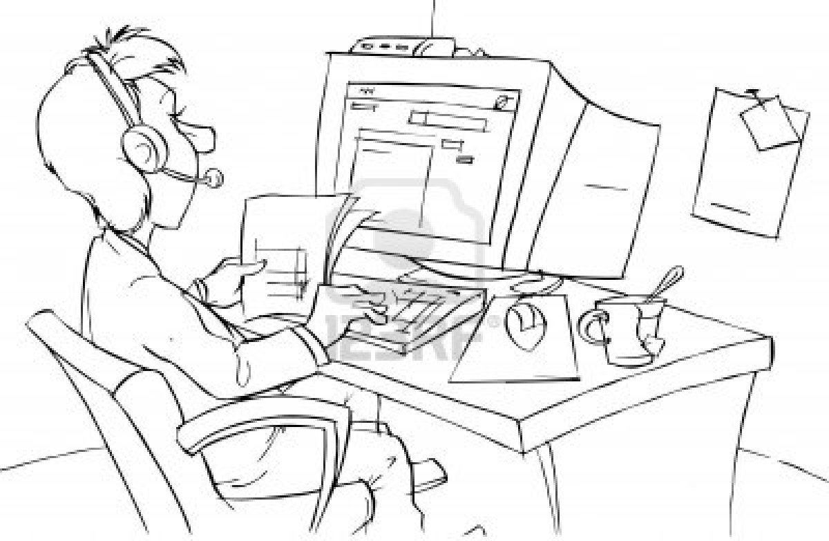 Мужчина сидит за компьютером рисунок