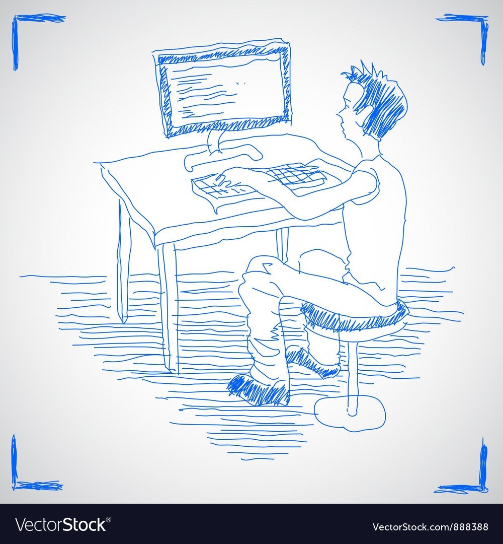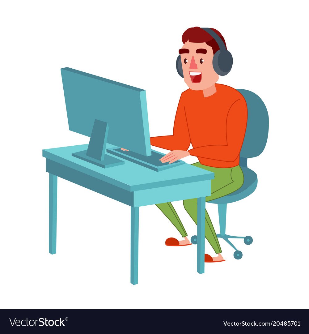 Рисунок парня играющего в компьютер