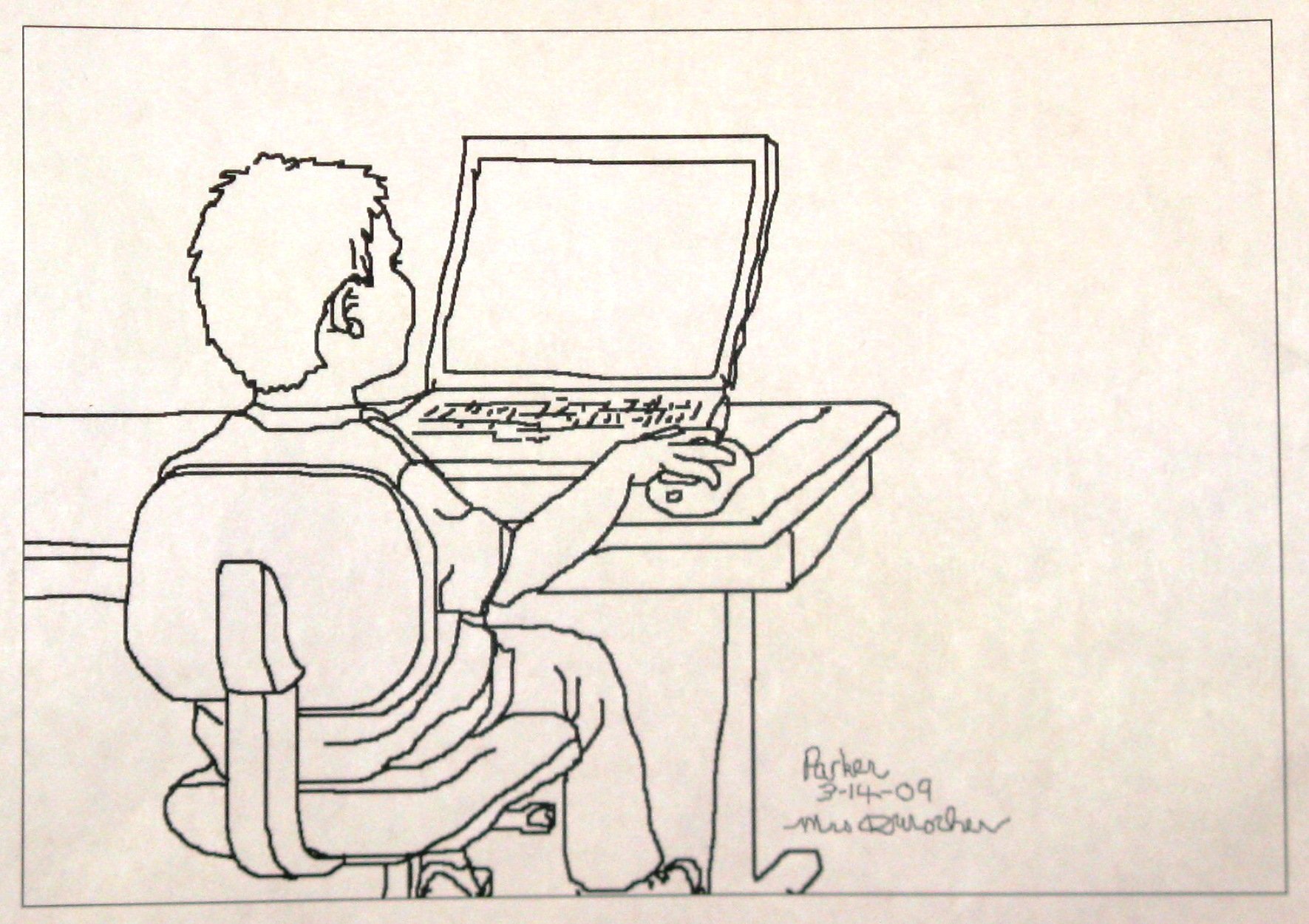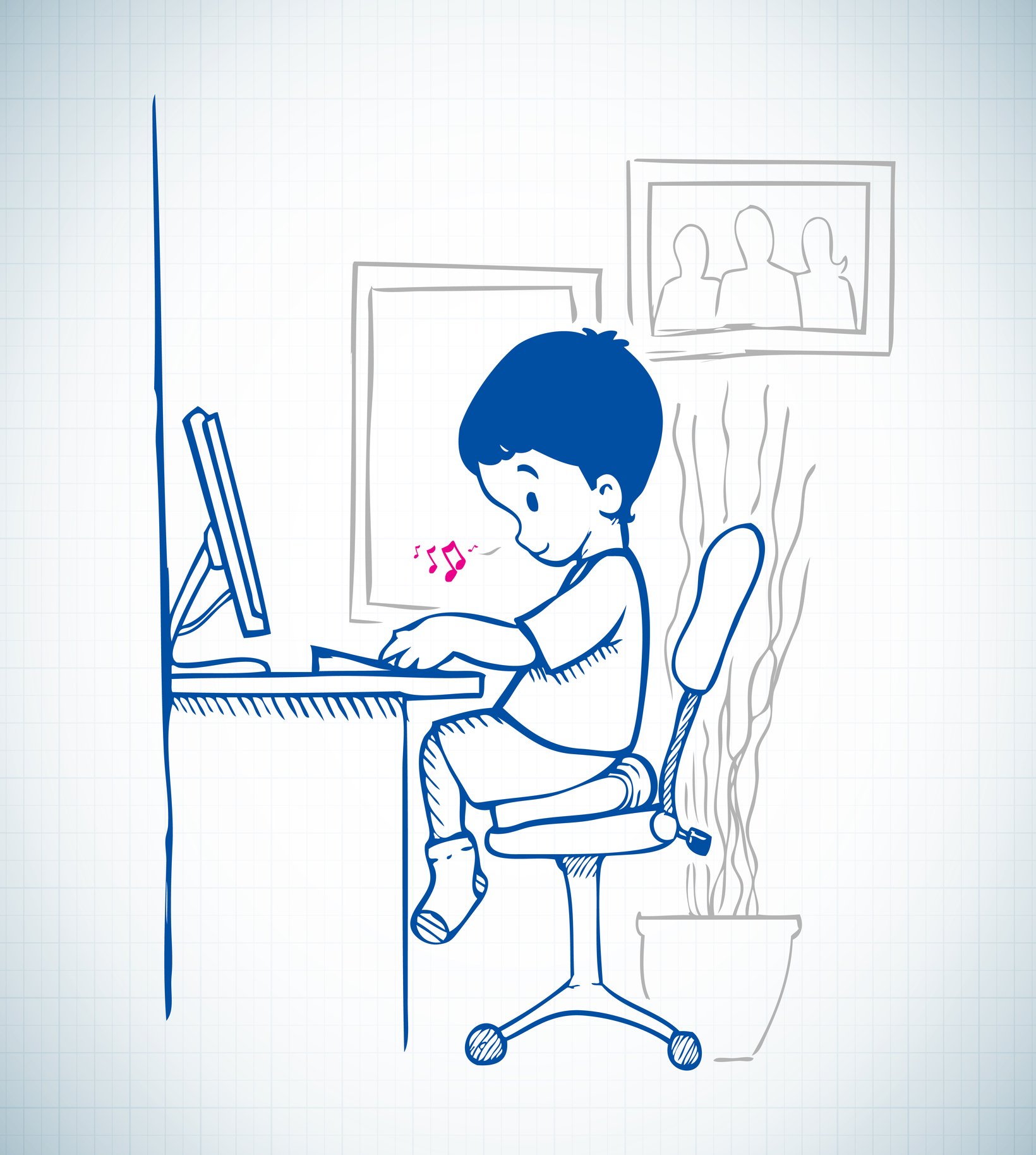 Мальчик сидит за компьютером рисунок