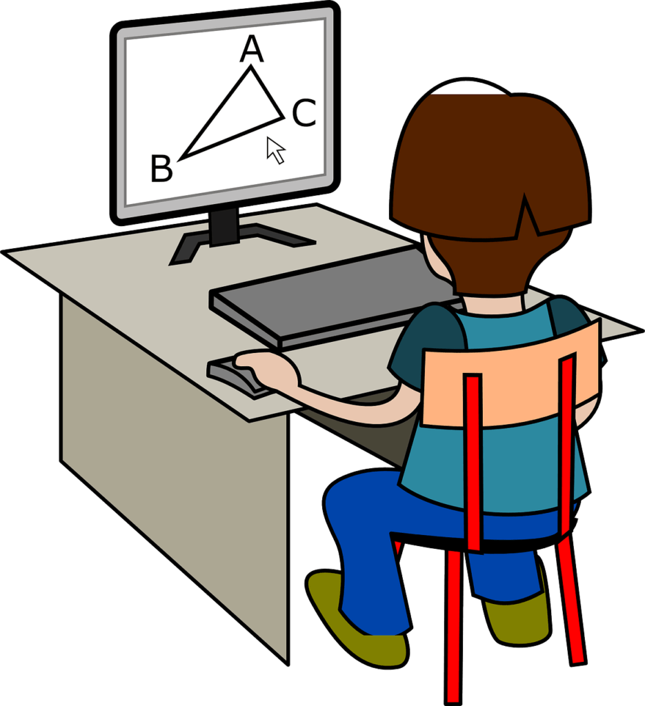 Мультяшный ученик за компьютером