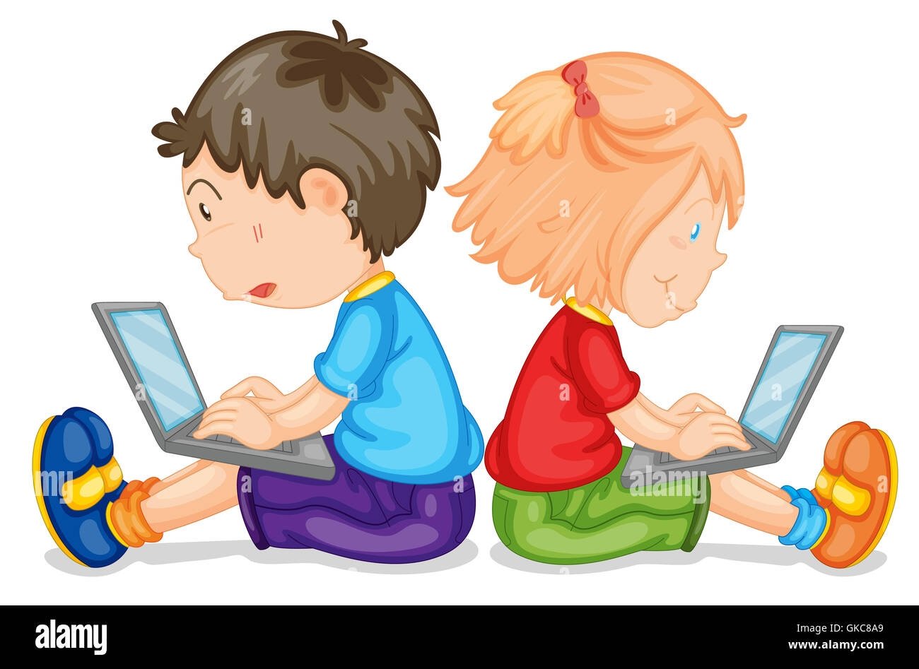 Векторные дети с компьютерами