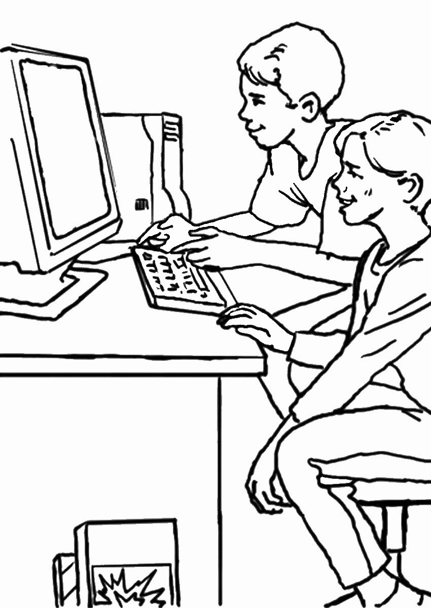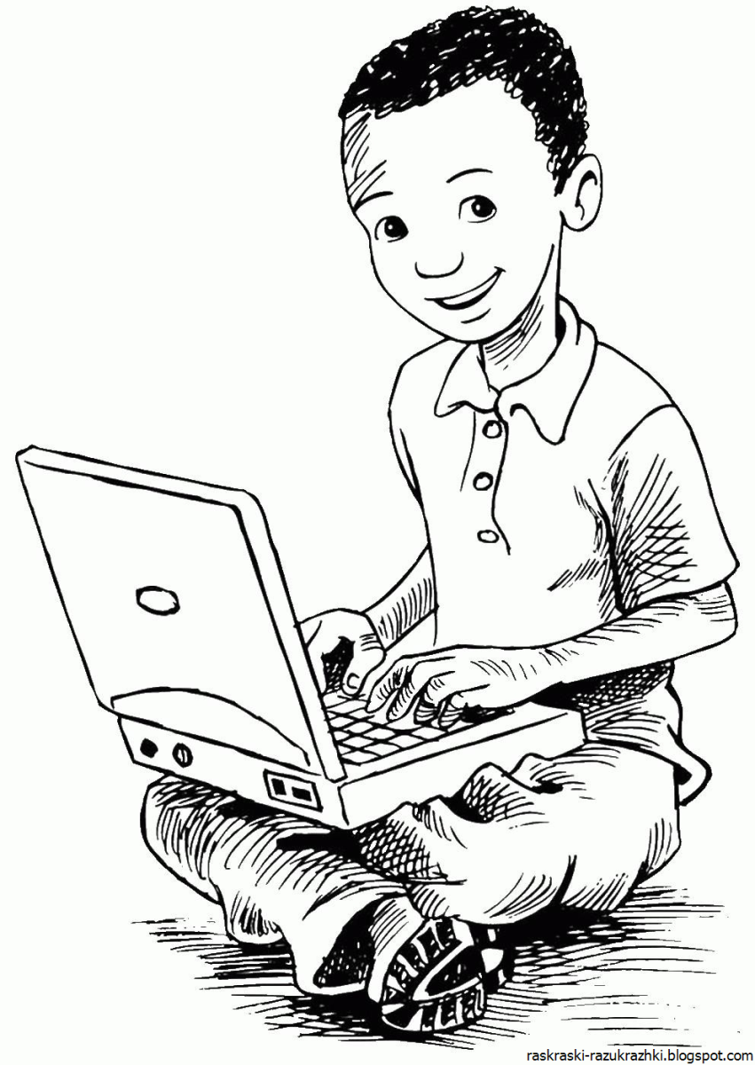 Ребенок за компьютером раскраска