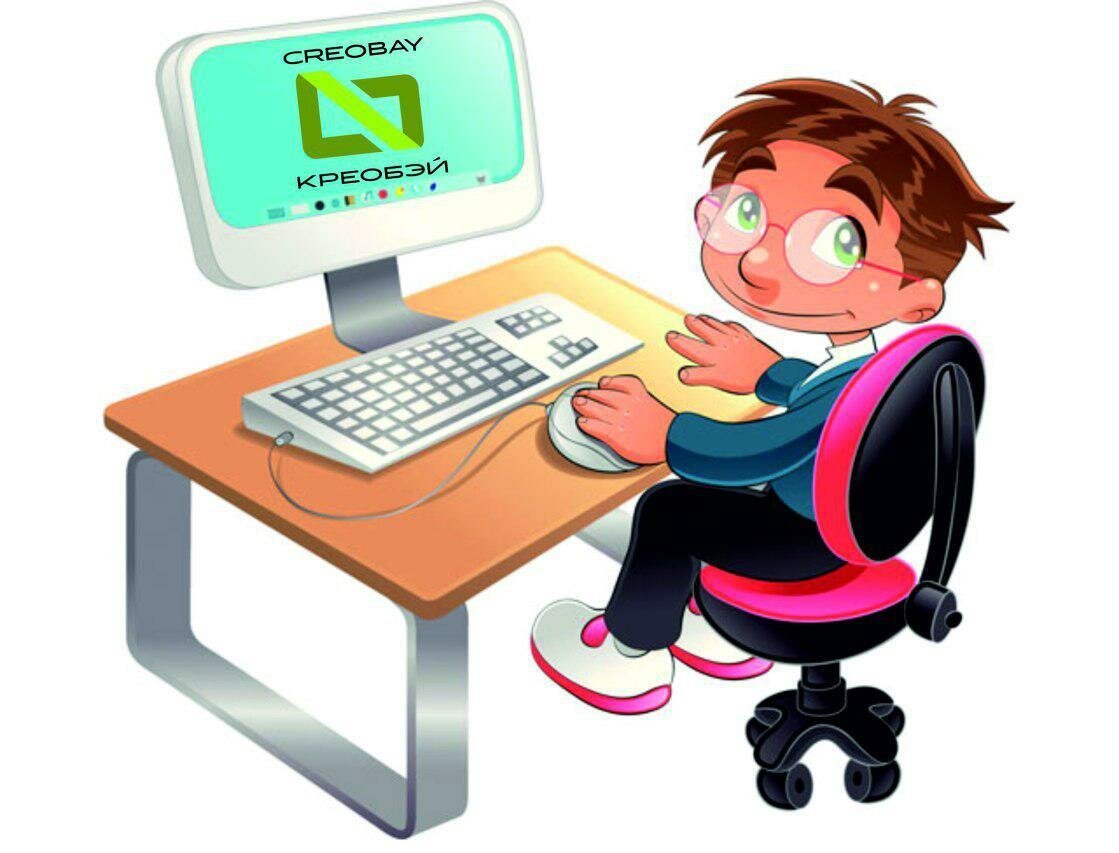 Ученик за компьютером для детей