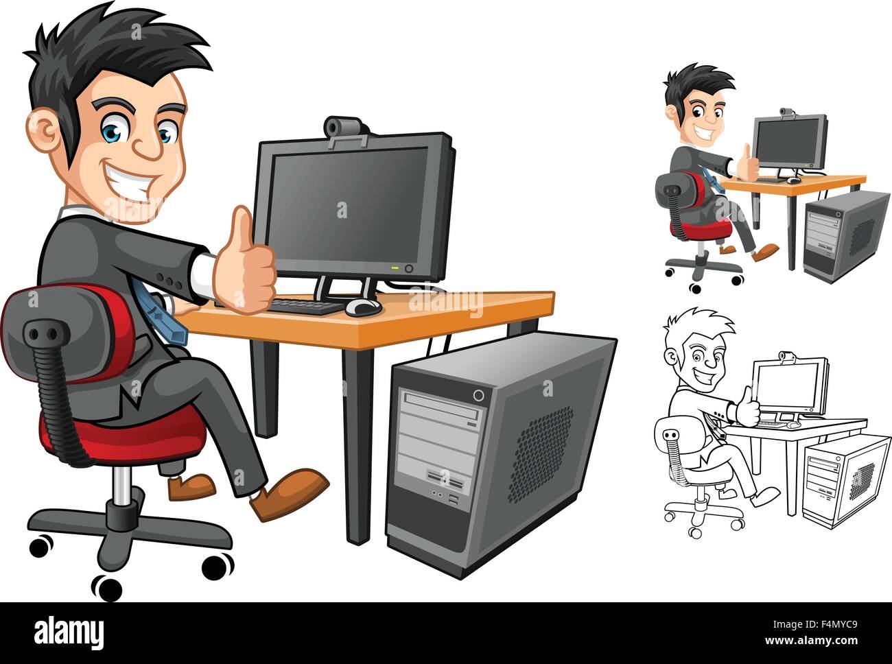 Человек с компьютером мультяшный