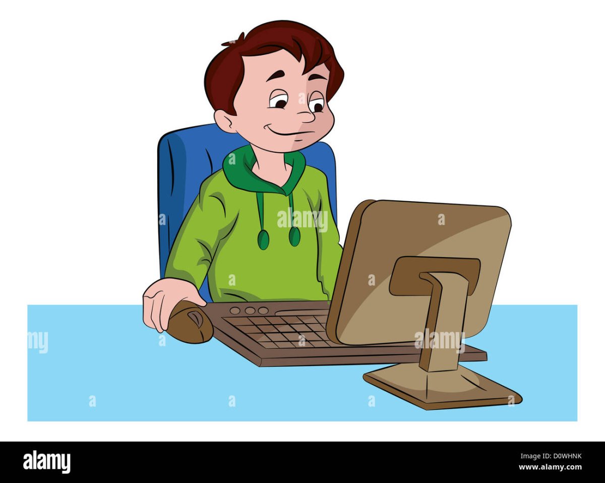 Подросток за компьютером мультяшный