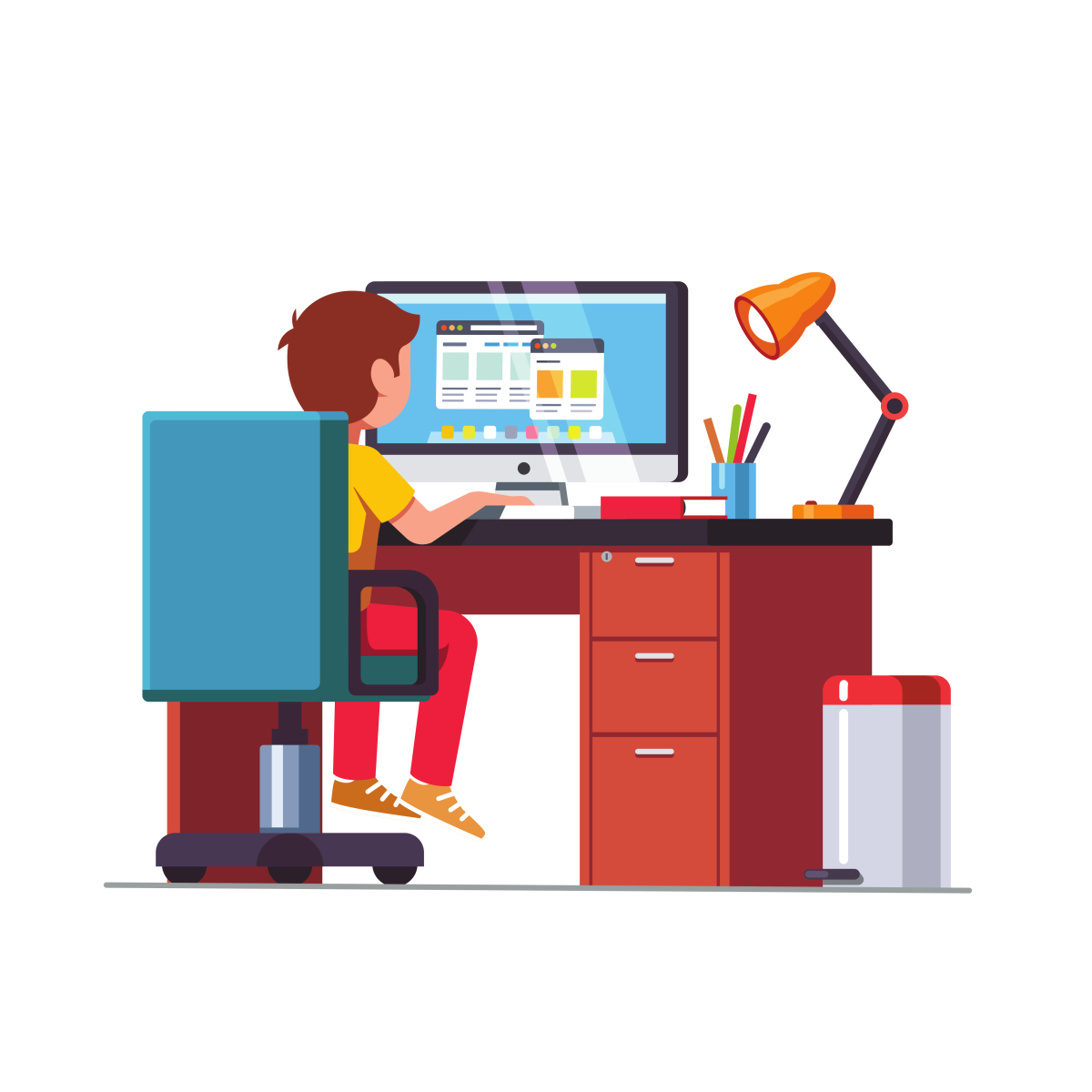 Подросток за компьютером вектор