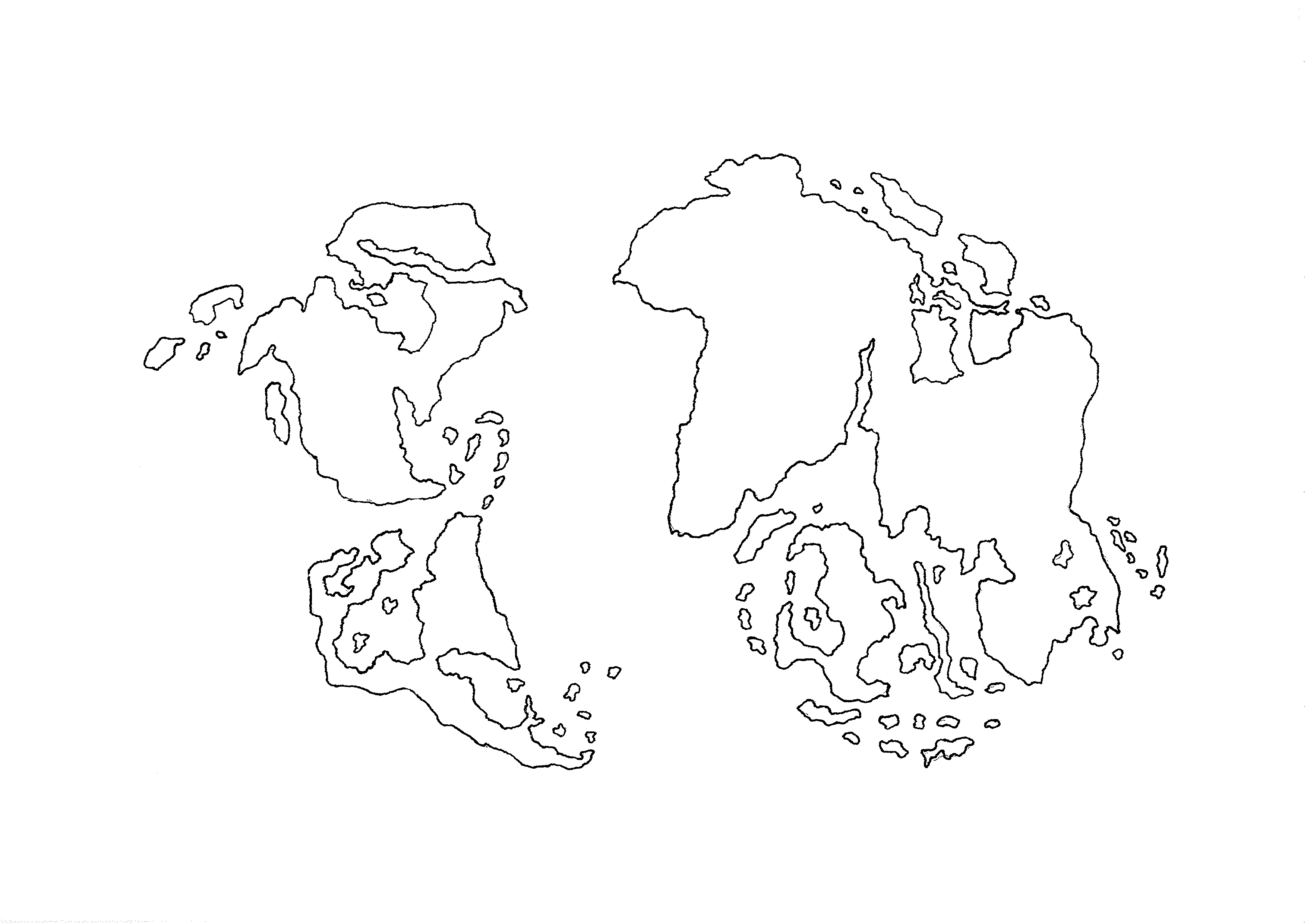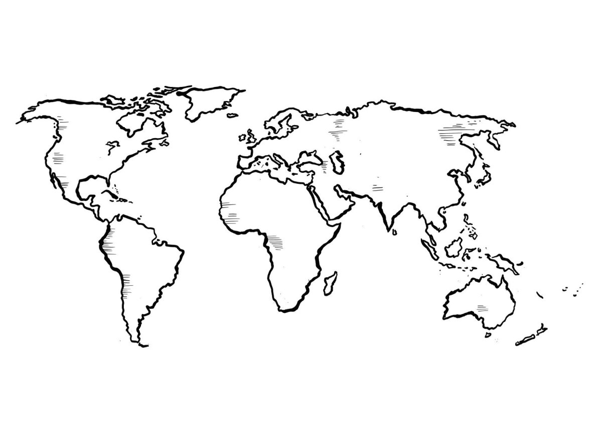 Чертеж контуров континентов