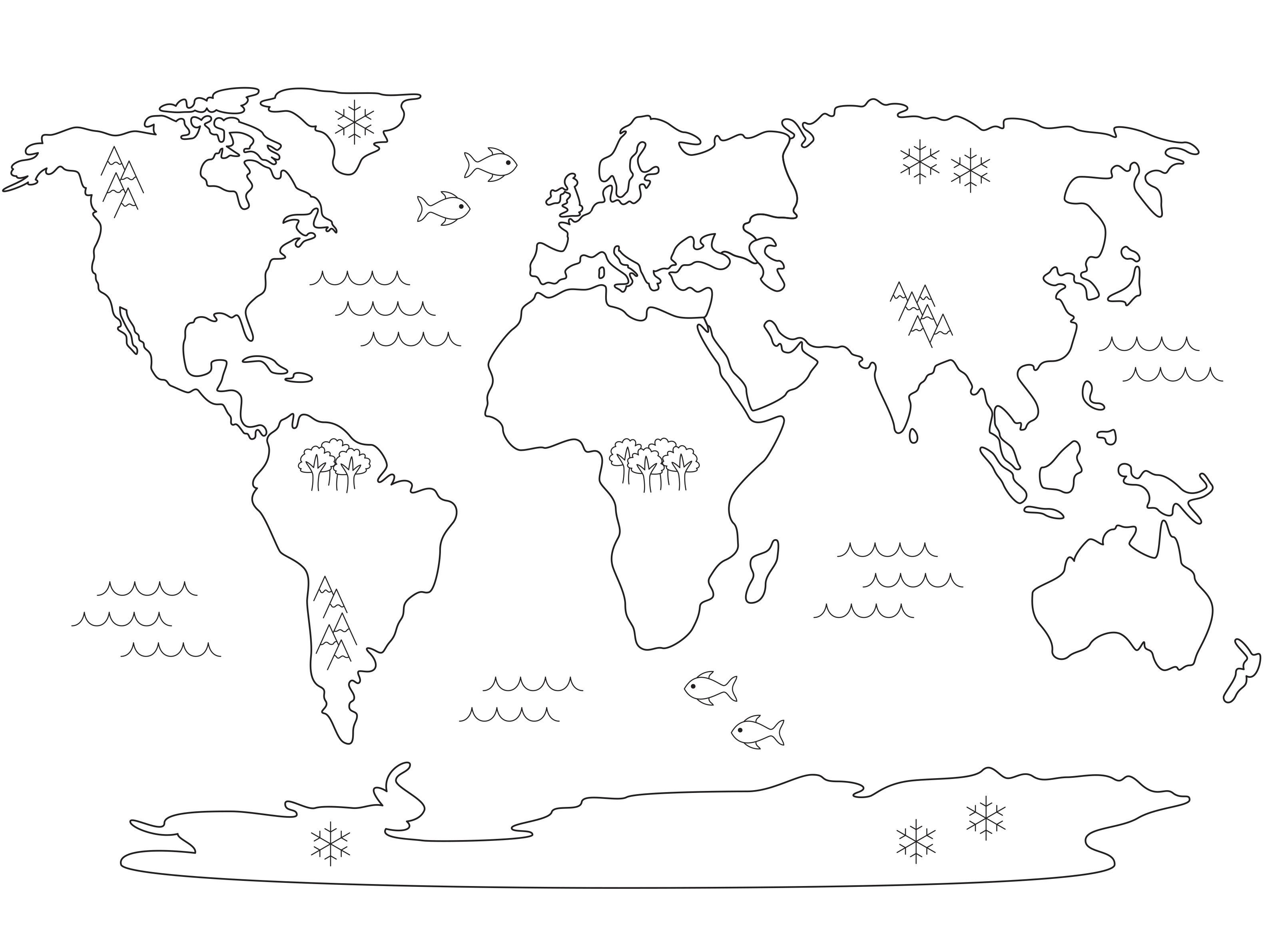 Карта мира для раскрашивания для детей