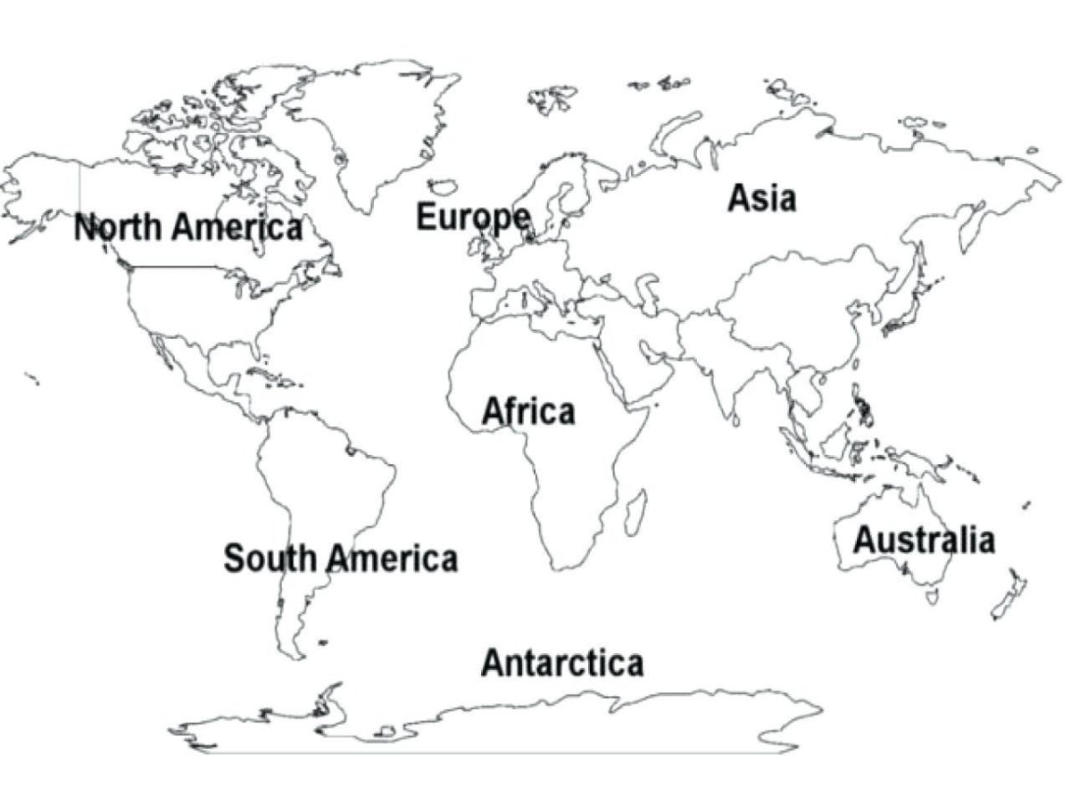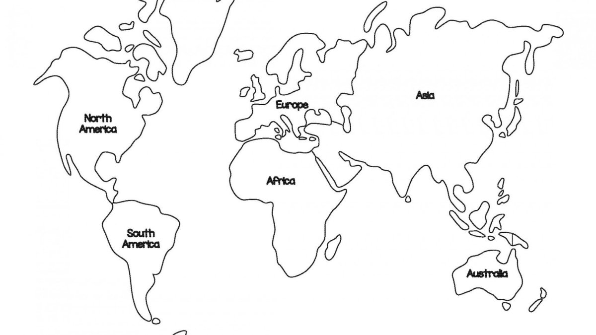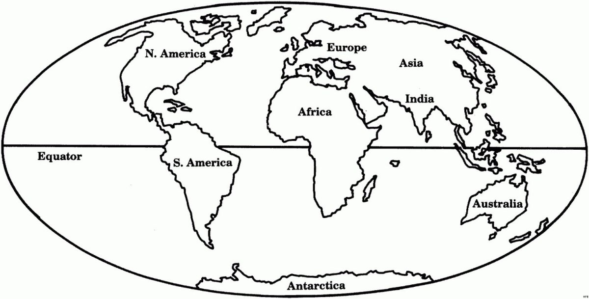 Карта материков контурная для печати