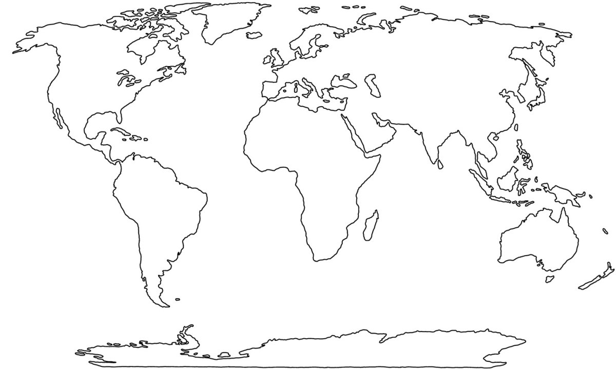Контурная карта мира для печати