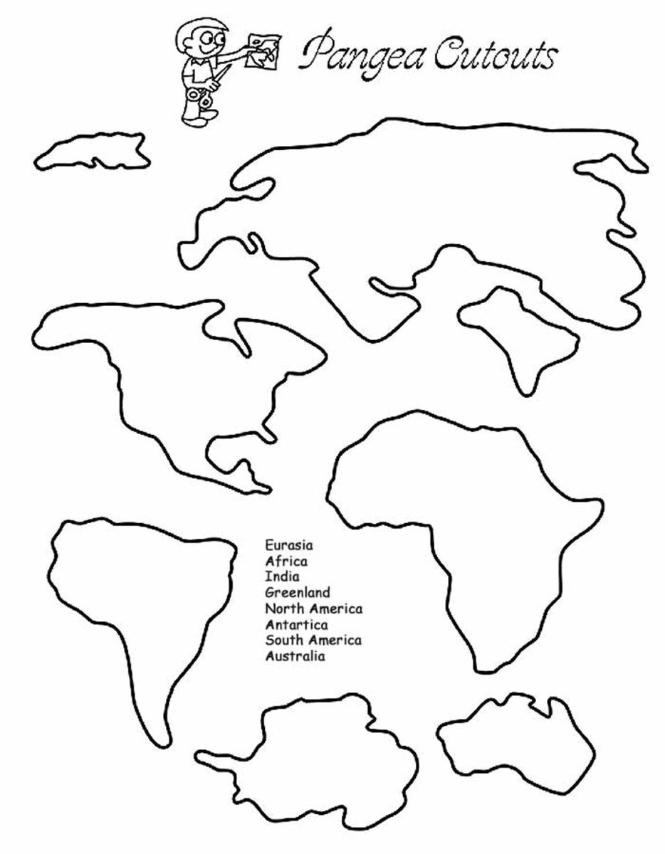 Контуры материков для детей