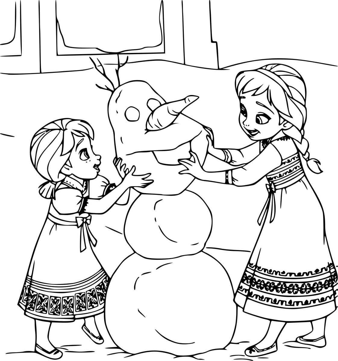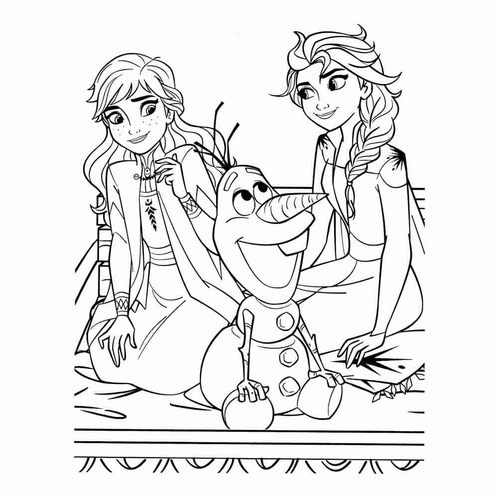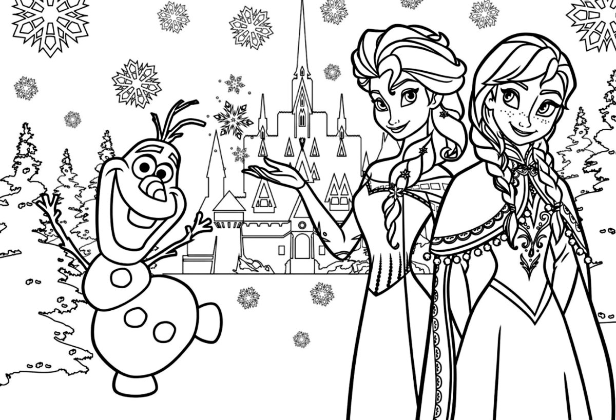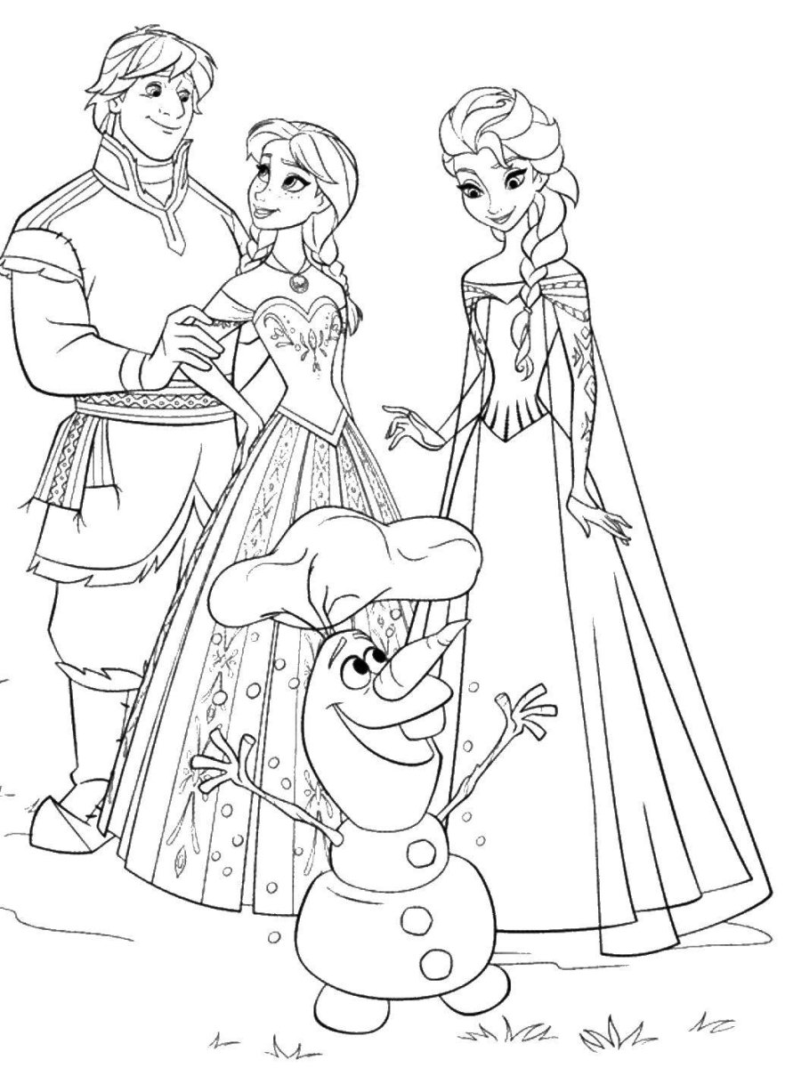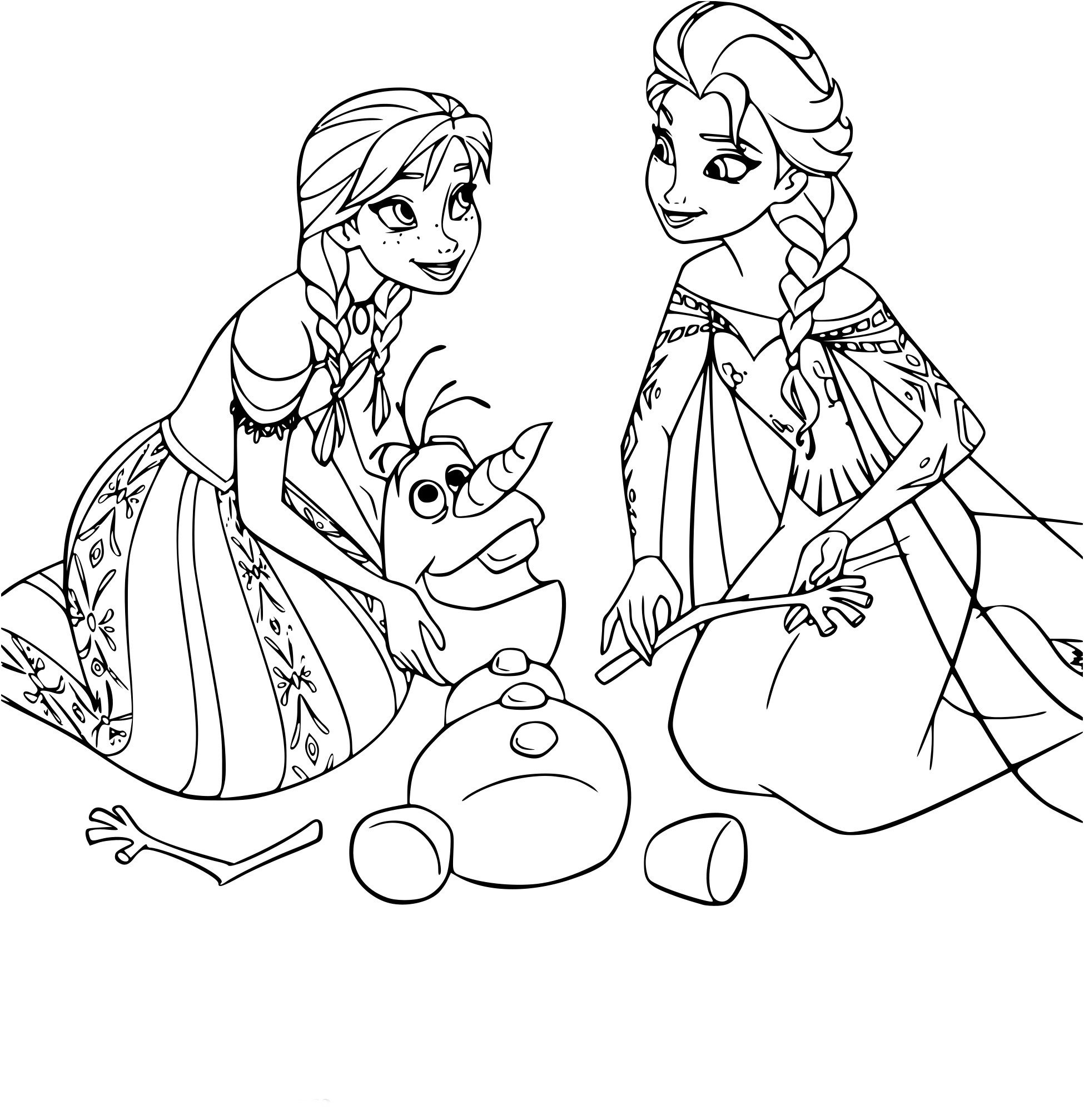 Раскраски для девочек Эльза и Анна и Олаф и вся их семья
