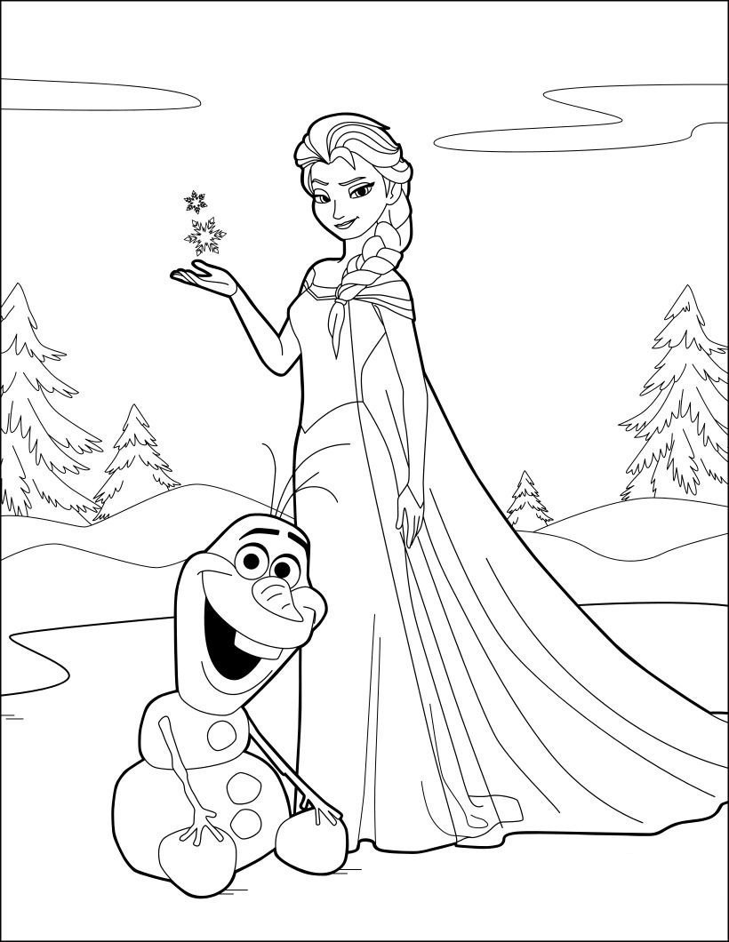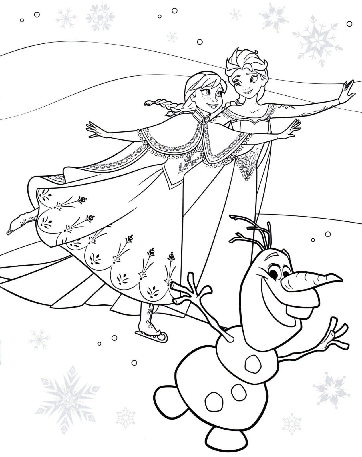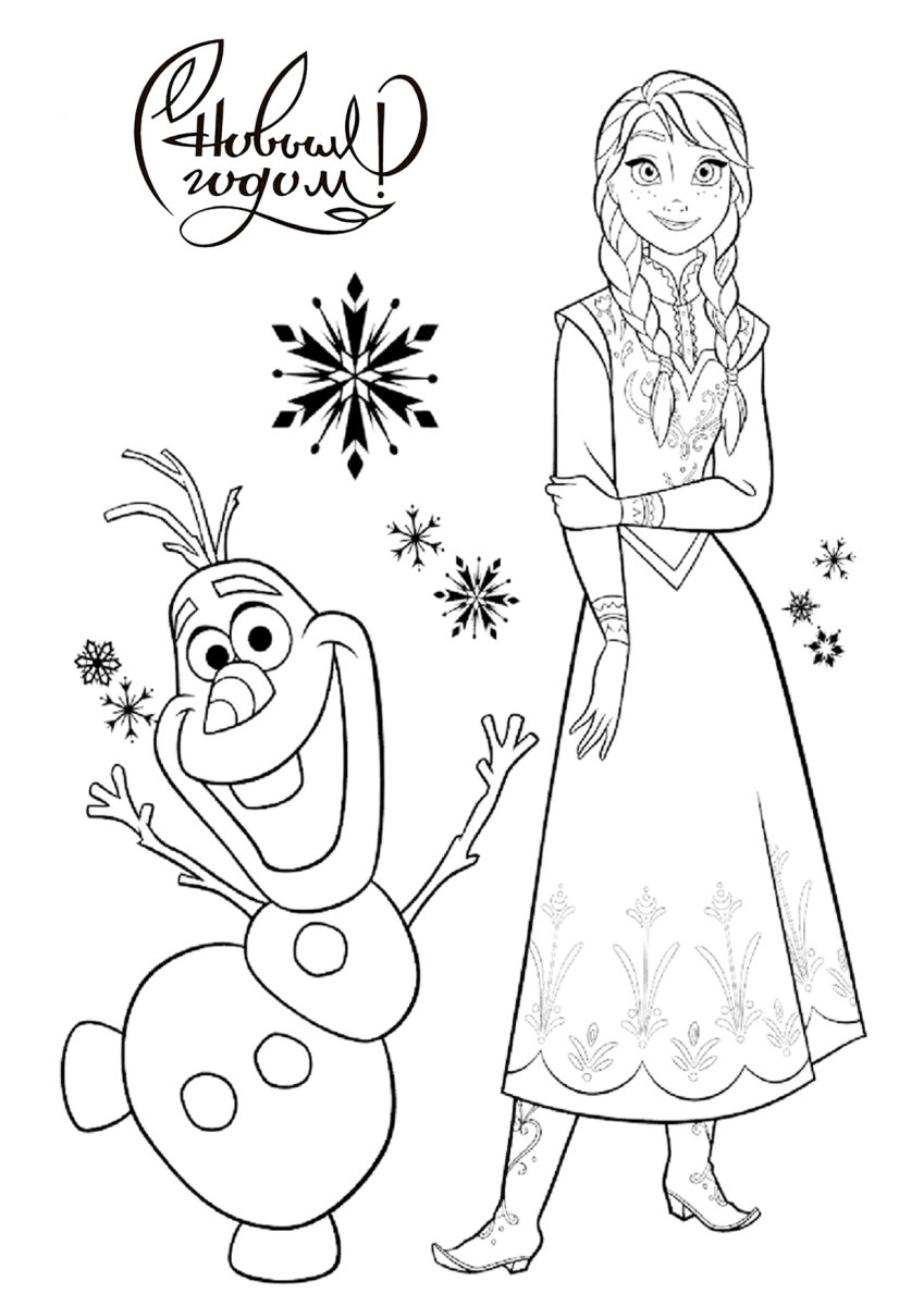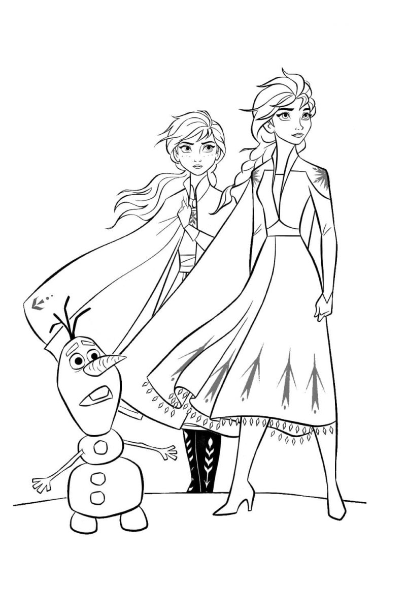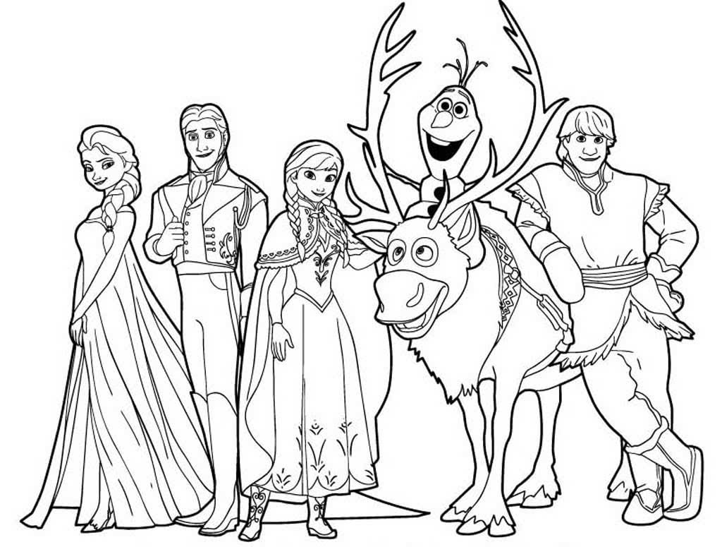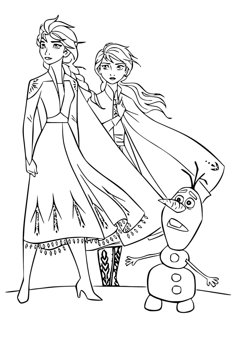 Раскраски для девочек Эльза и Анна и Олаф и вся их семья