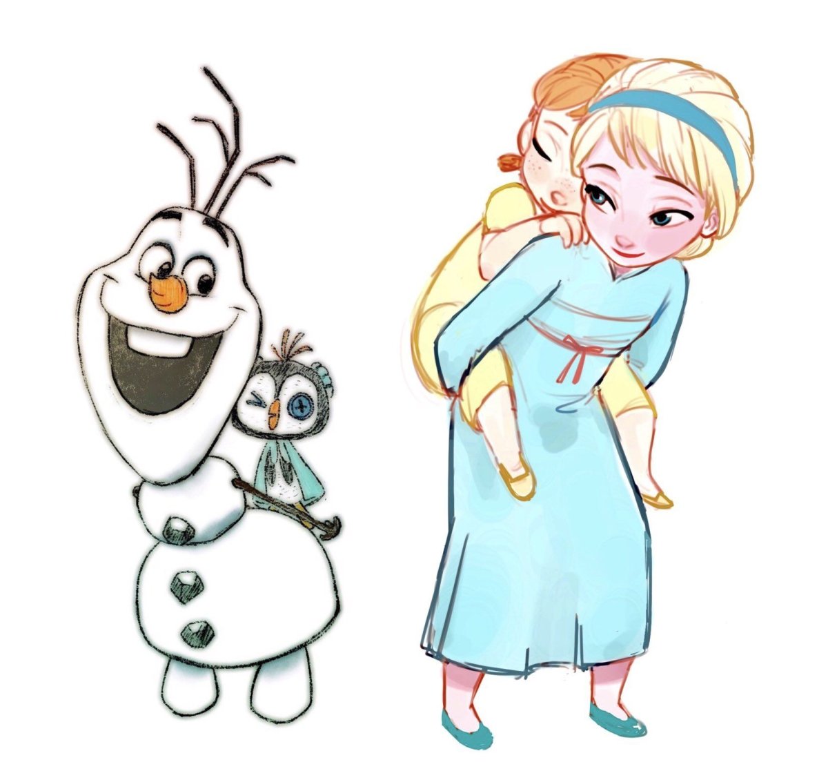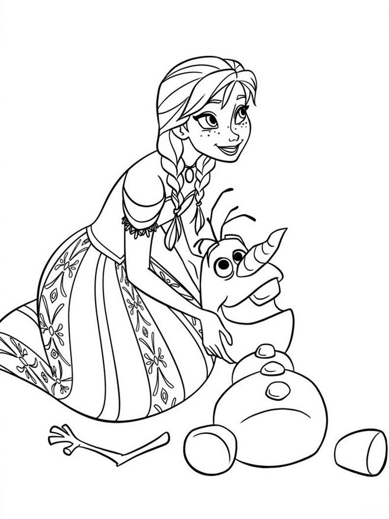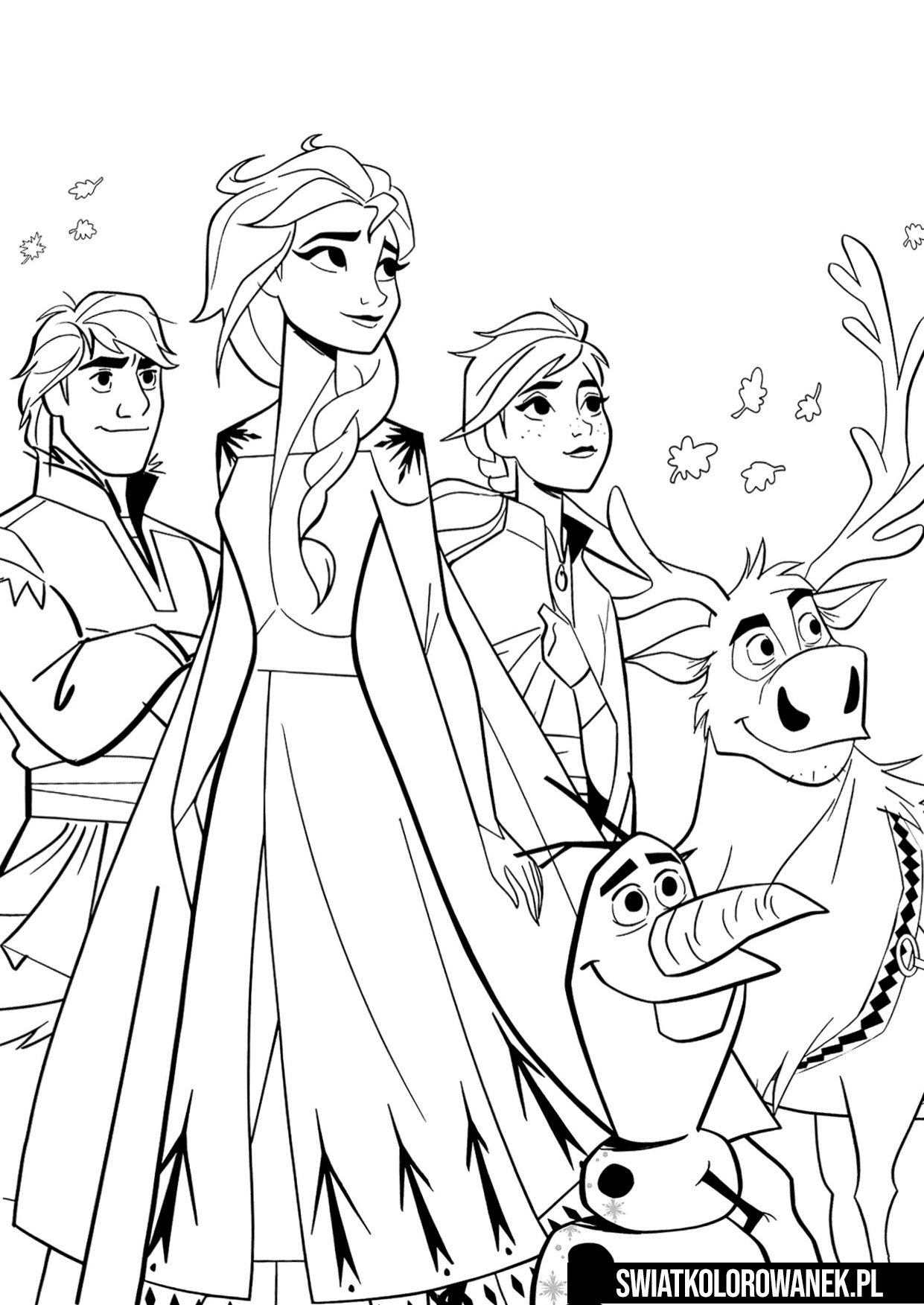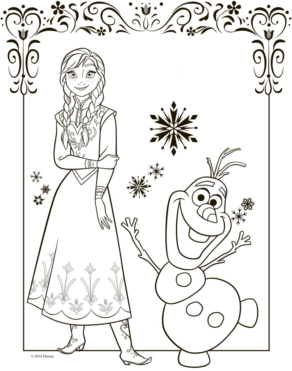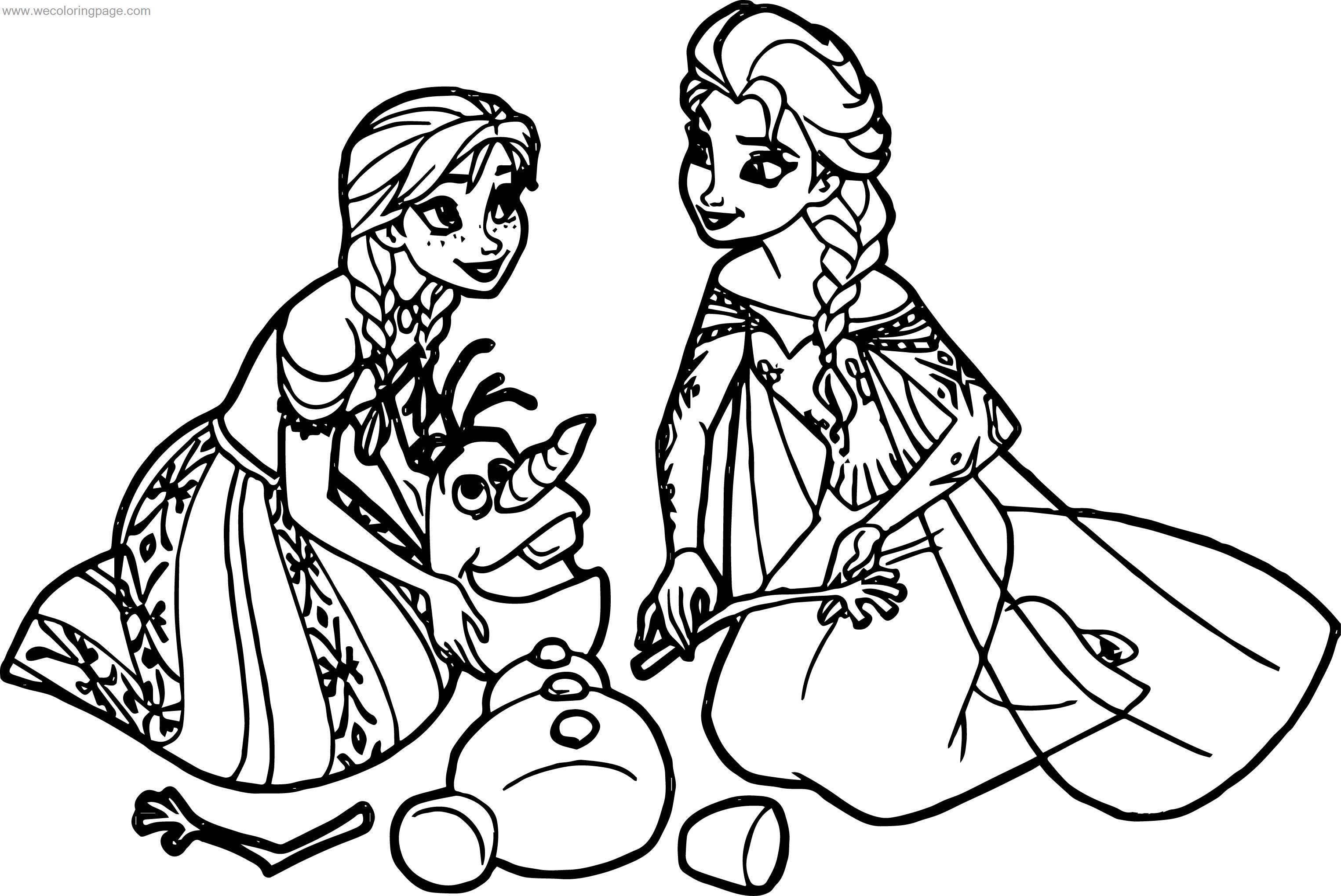 Раскраски для девочек Эльза и Анна и Олаф и вся их семья